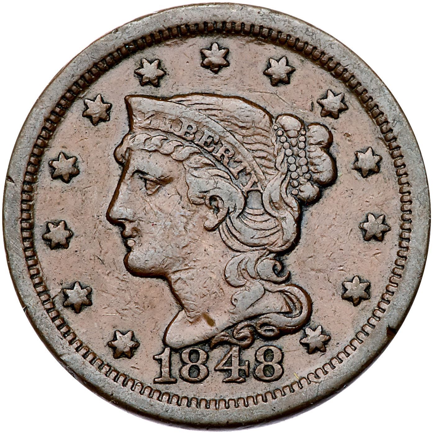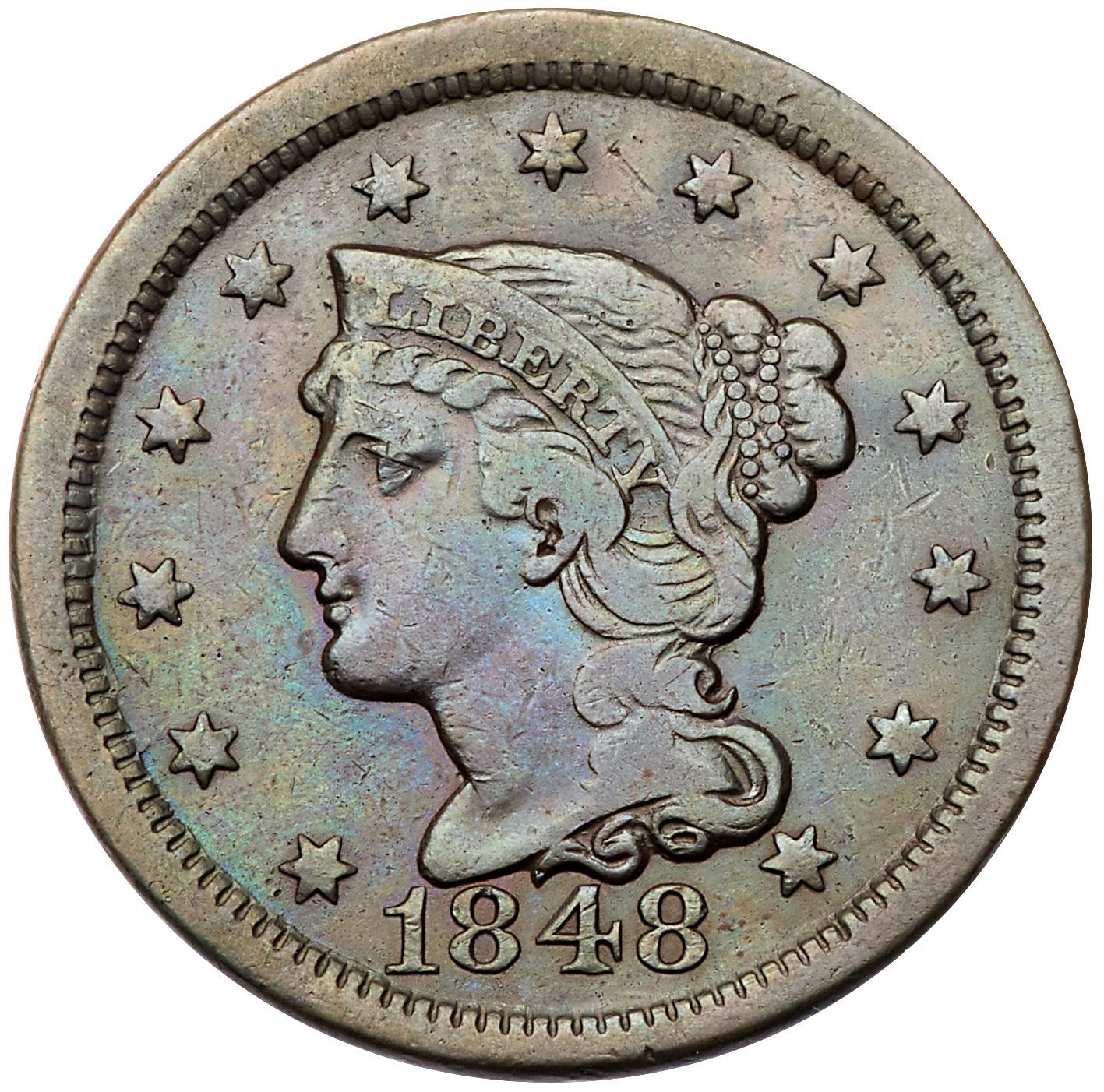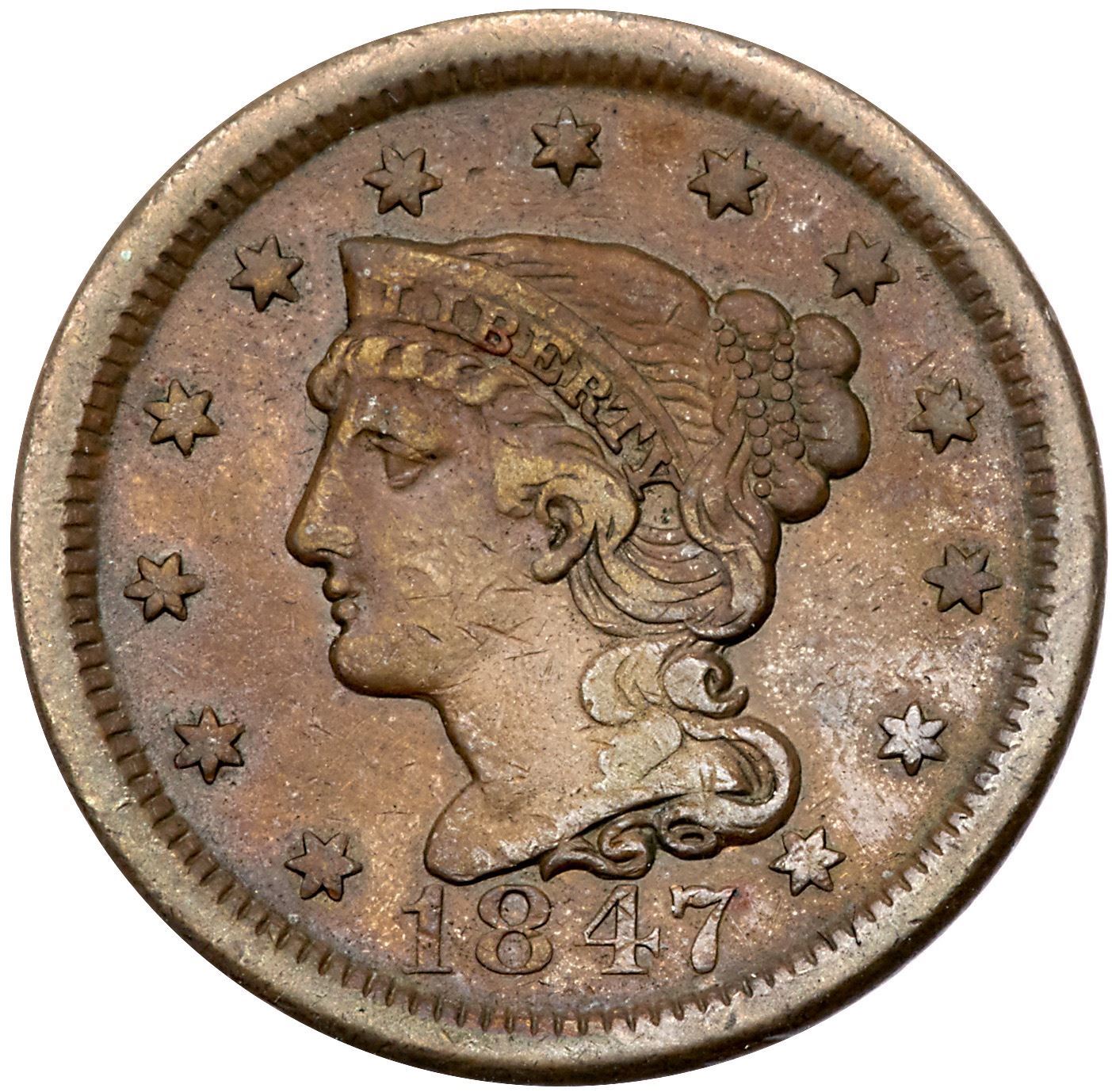 Group of Five 1847 & 1848 Cents grading F15Includes 1847 N-38 R1, 1848 N-3 R2 Repunched Date, 1848 N-14 R4-, 1848 N-16 R2 Repunched 4, and N-17 R1 Repunched 4. Some are sharper with marks but all are glossy brown and chocolate with a strong date. Lot of 5 coins.Pedigree: From the Fred H. Borcherdt Collection
