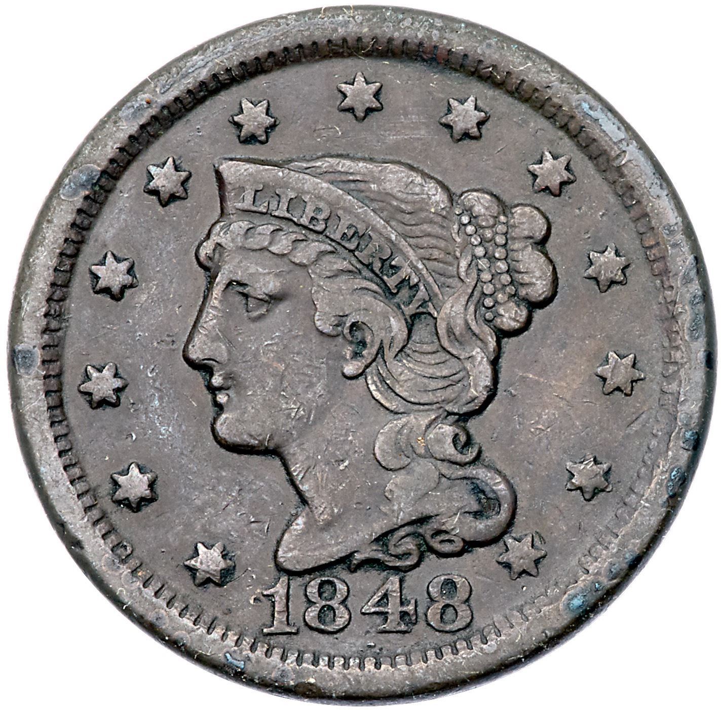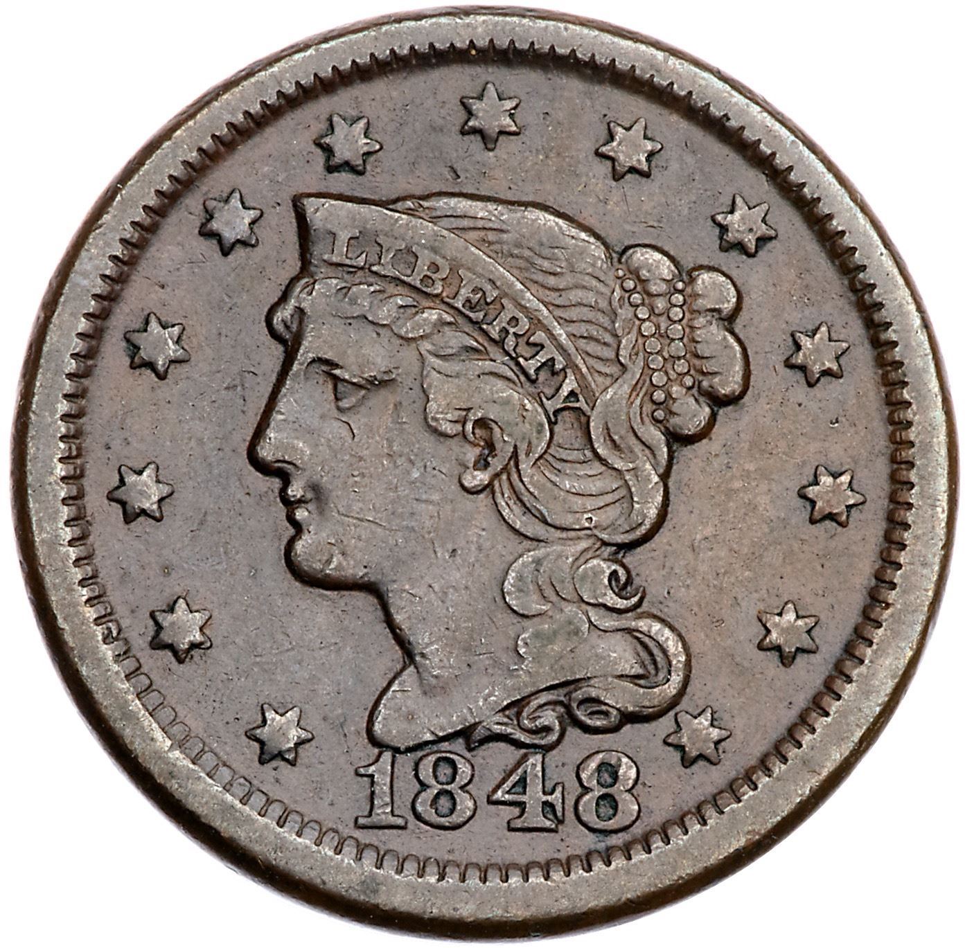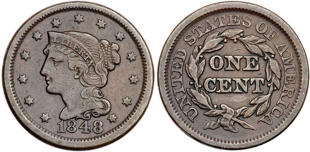Group of Five 1848 Cents grading F15Includes N-16 R2 Repunched 4, N-20 R3 Repunched 48, N-24 R4+, N-28 R1, and N-35 R2. Some are sharper with marks but all are glossy brown and chocolate with a strong date. Lot of 5 coins.Pedigree: From the Fred H. Borcherdt Collection