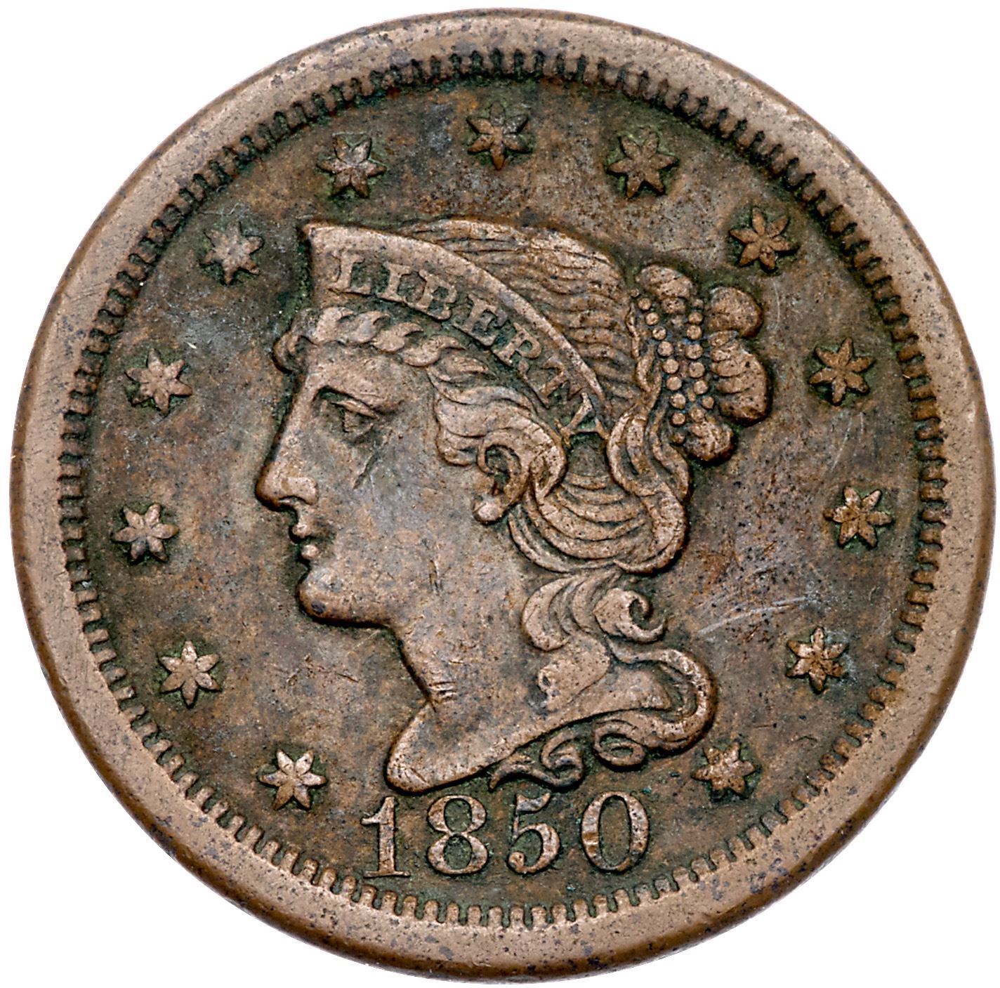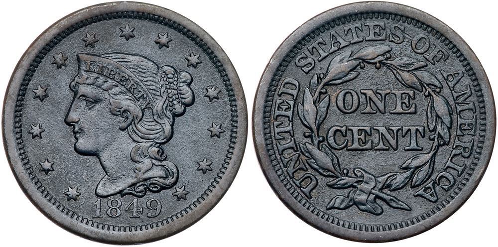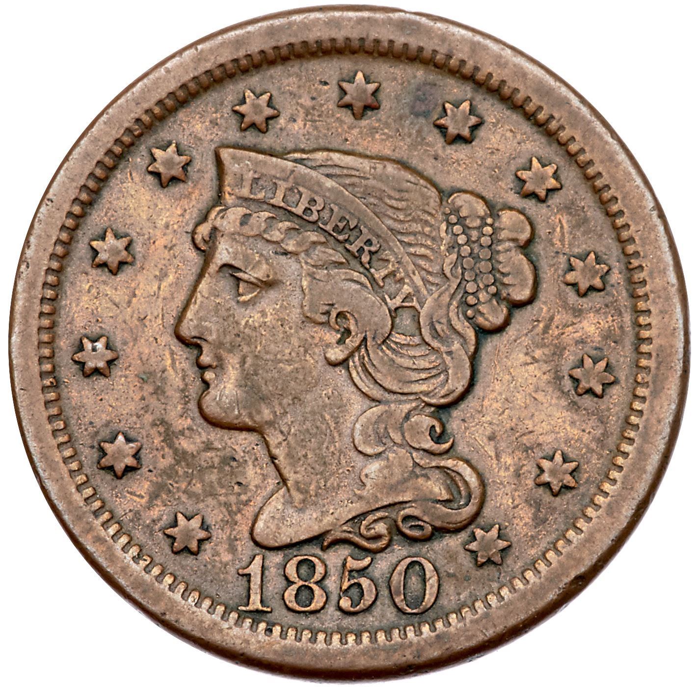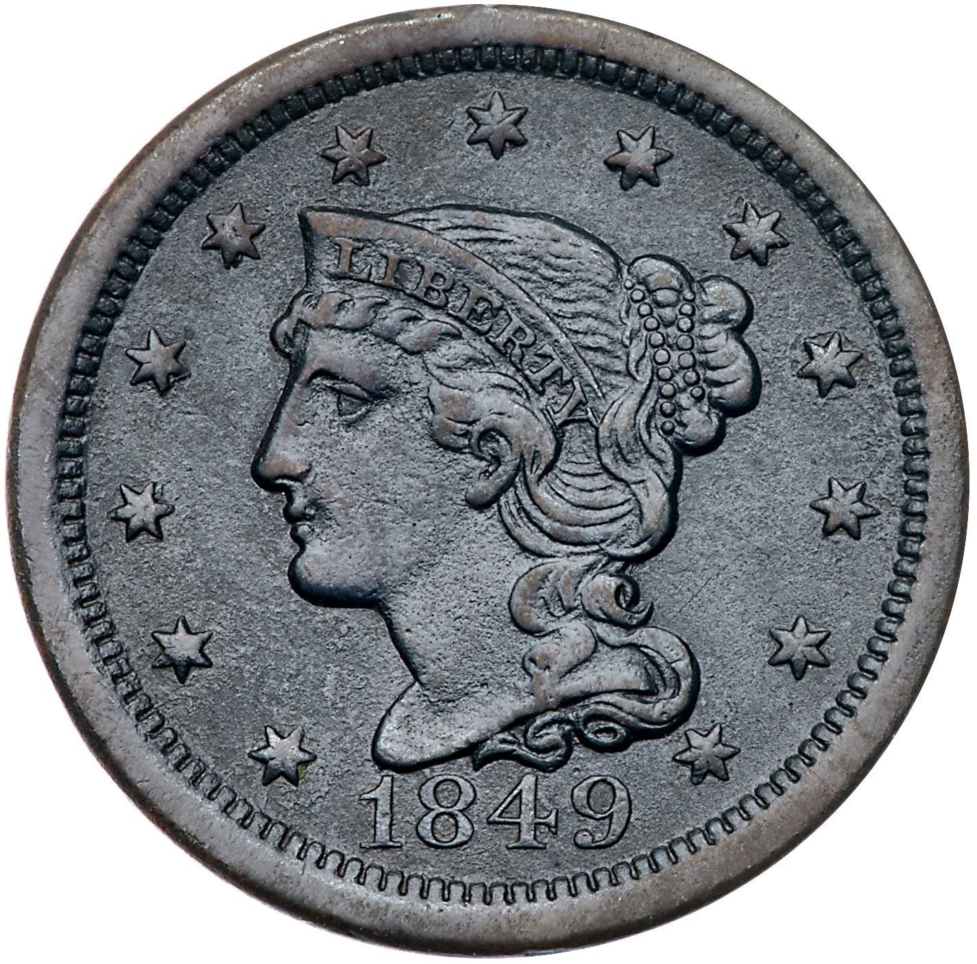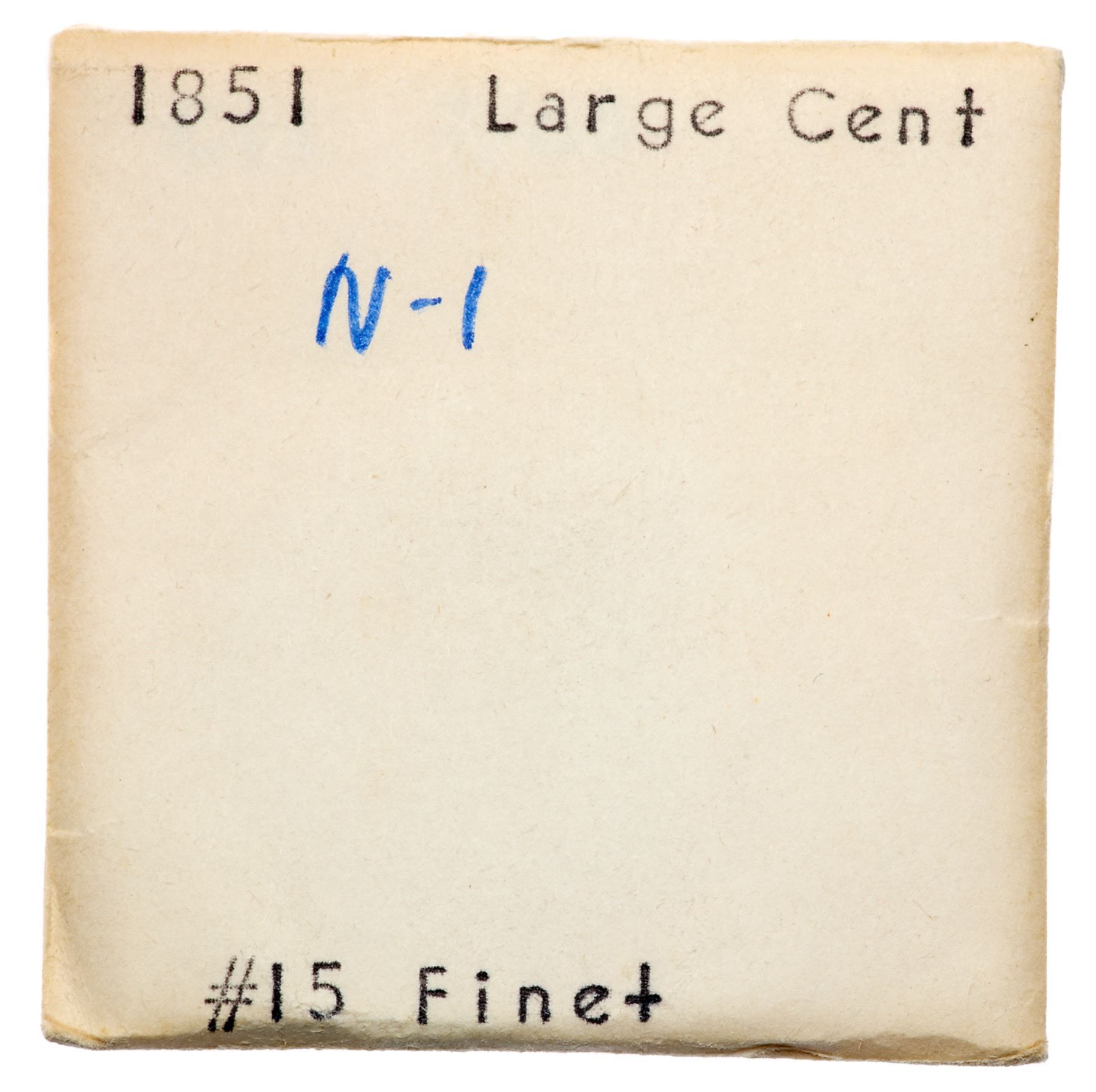 Group of Five 1849 to 1851 Cents grading F15Includes 1849 N-27 R4, 1850 N-1 R2+, 1850 N-12 R1, 1850 N-21 R2 EDS, and 1851 N-1 R3 EDS. Some are sharper with marks, and all except the 1849 are glossy brown and chocolate. Lot of 5 coins.Pedigree: From the Fred H. Borcherdt Collection