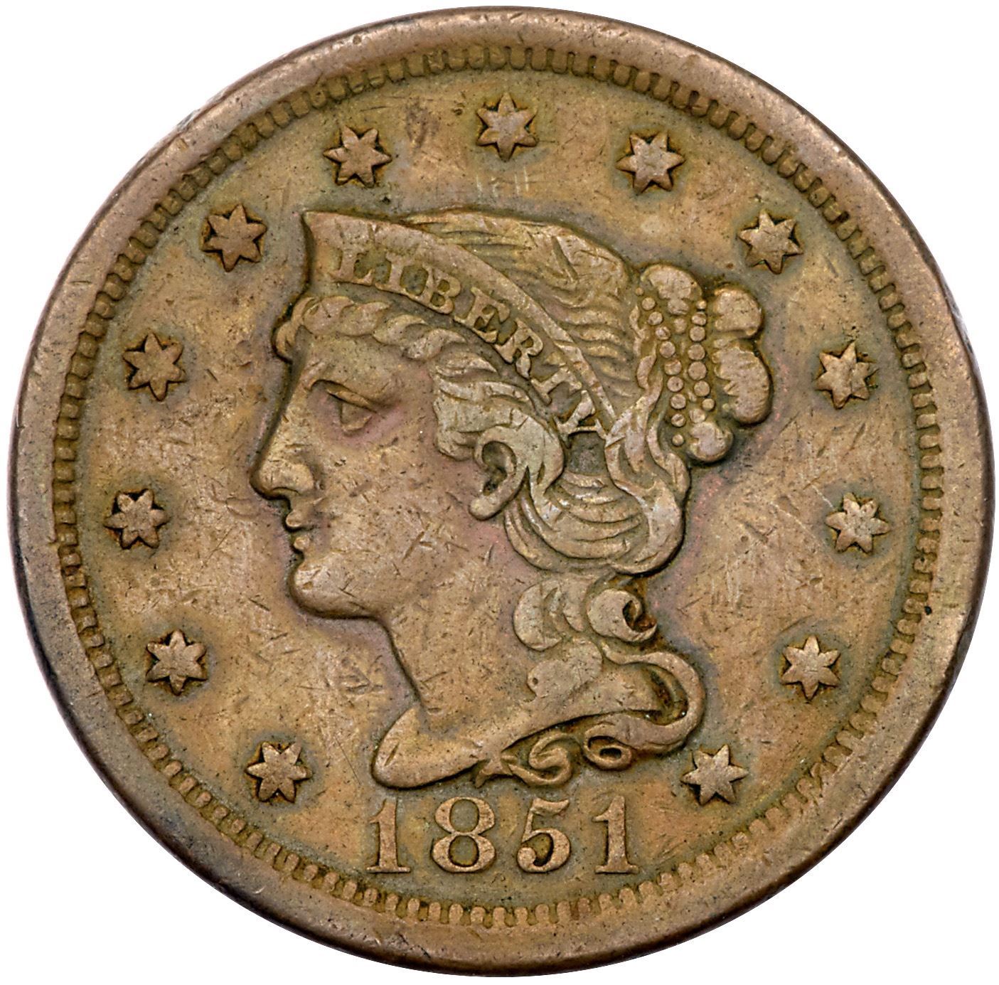 Group of Five 1850 & 1851 Cents grading F15Includes 1850 N-21 R2 EDS, 1851 N-2 R1, 1851/81 N-3 Overdate 51 over Inverted 18, 1851 N-6 R1 Repunched 1 & 51, and 1851 N-10 R1. Some are sharper with marks but all are glossy brown and chocolate with a strong date. Lot of 5 coins.Pedigree: From the Fred H. Borcherdt Collection