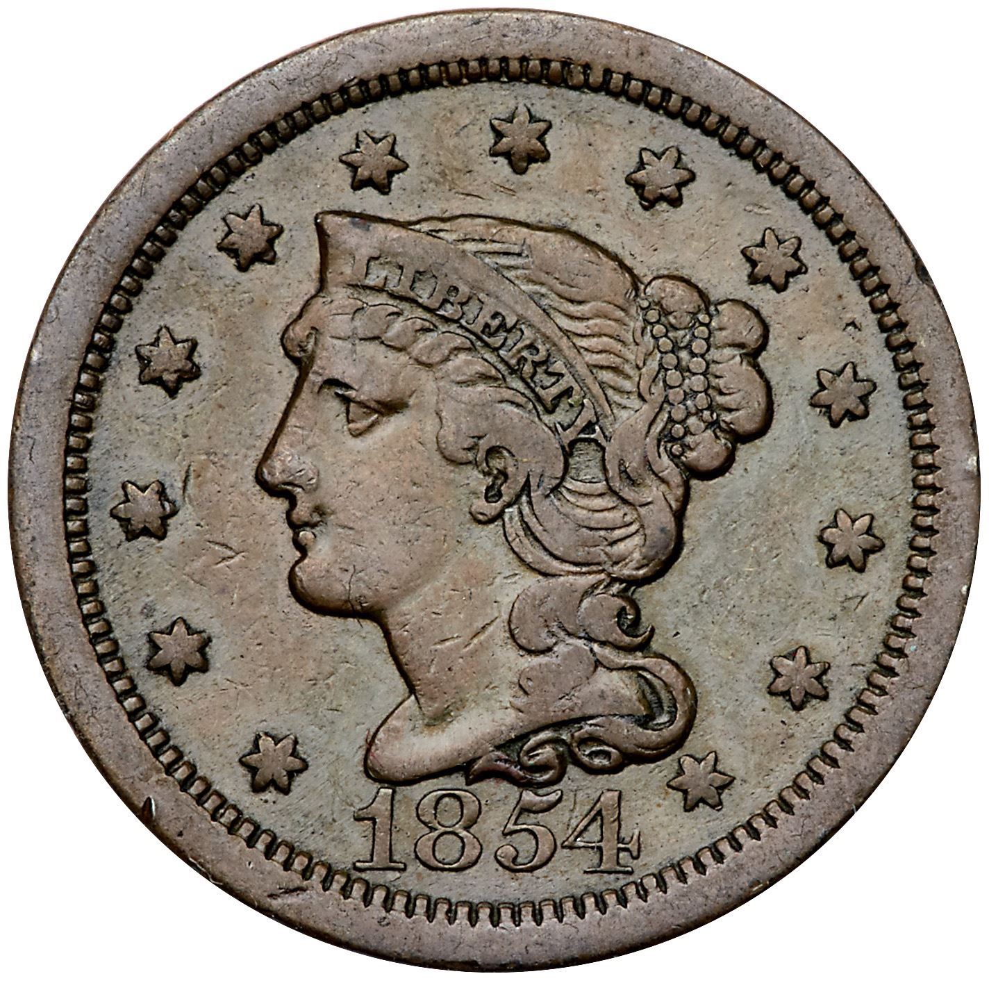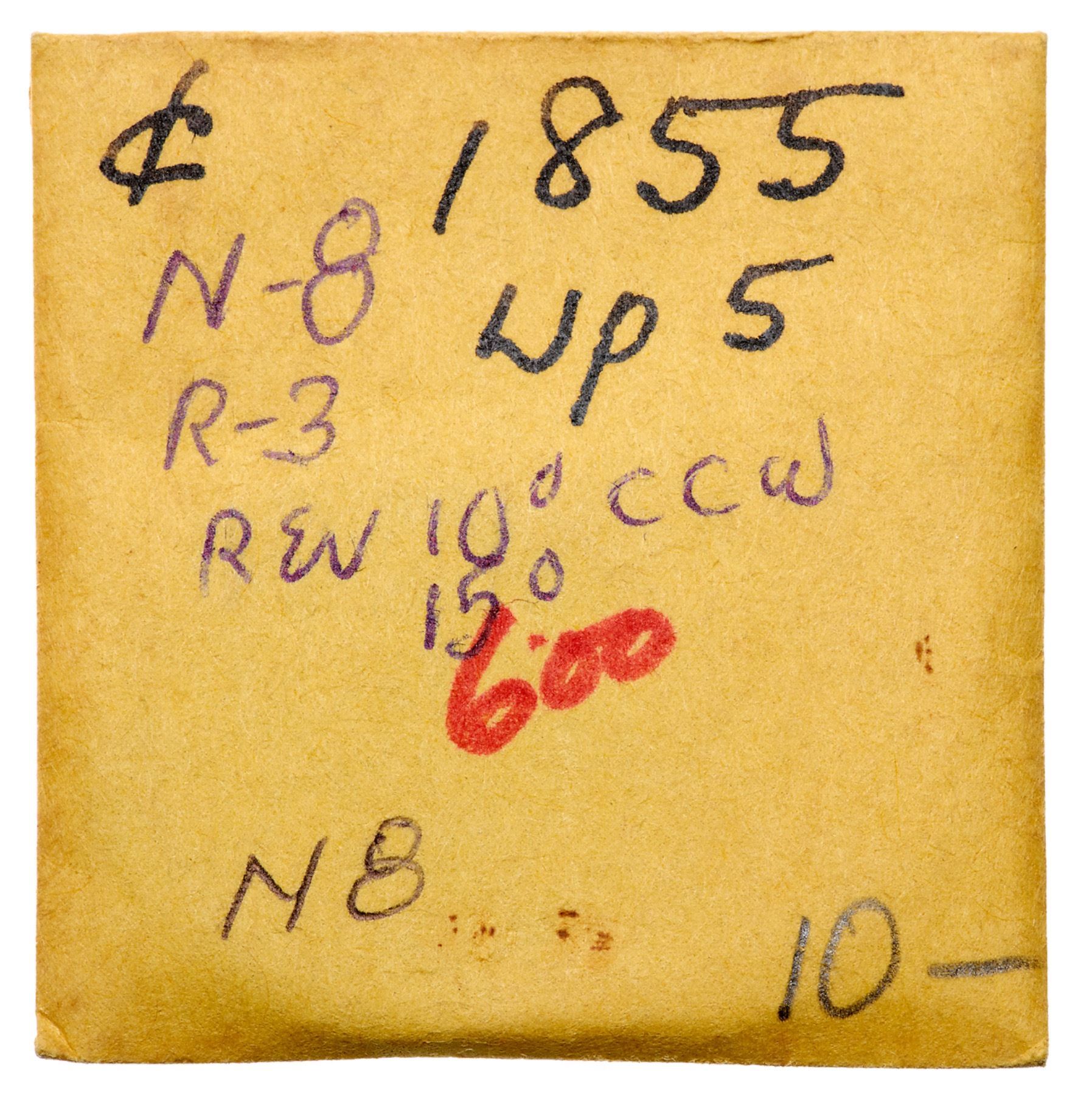 Group of Six 1854 & 1855 Cents grading F15Includes 1854 N-24 R3, 1854 N-26 R2+, 1854 N-27 R3, 1854 N-29 R3, 1855 N-7 R1 Upright 55, and 1855 N-8 R2 Upright 55. Some are sharper with marks but all are glossy brown and chocolate with a strong date. Lot of 6 coins.Pedigree: From the Fred H. Borcherdt Collection