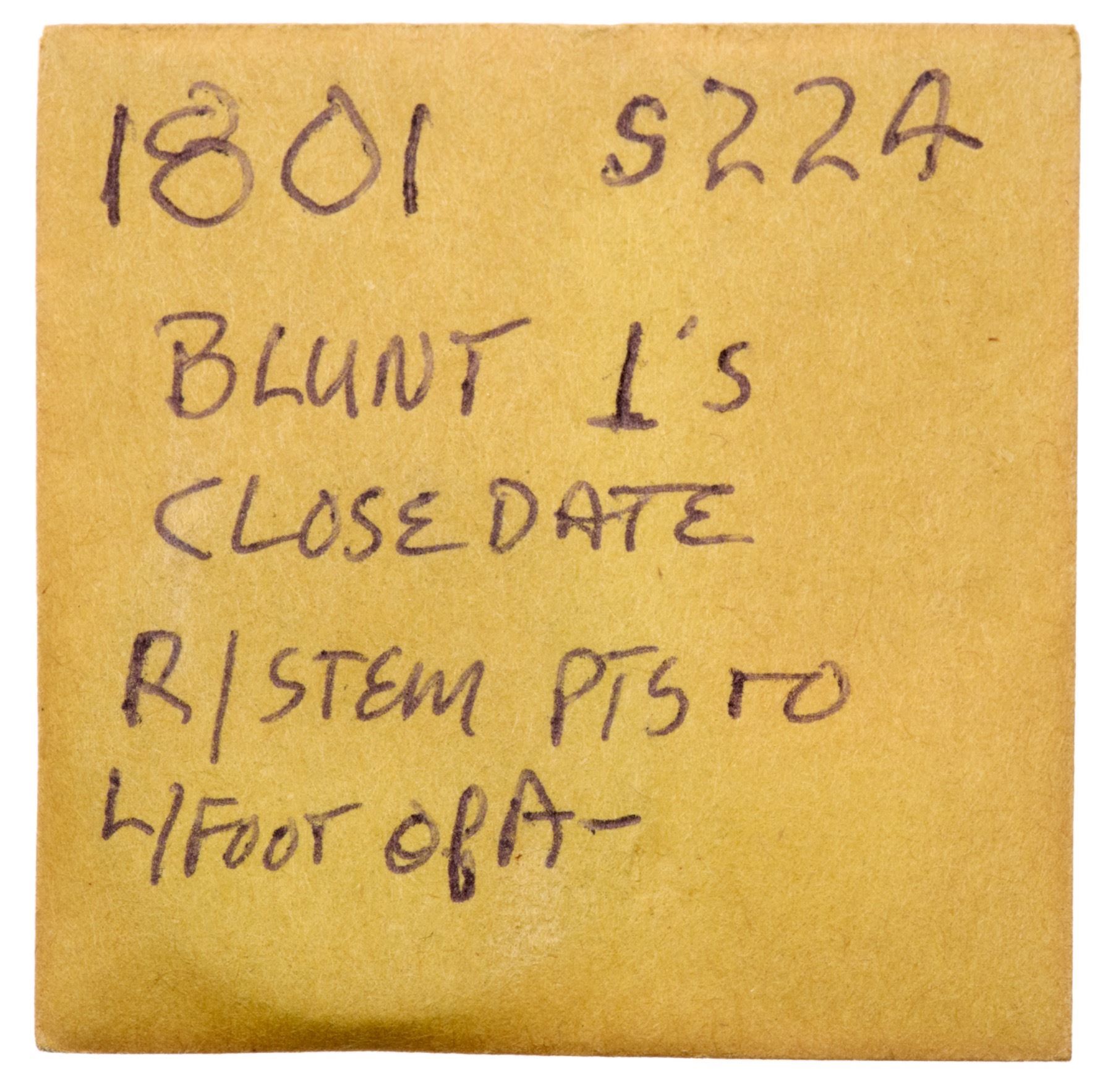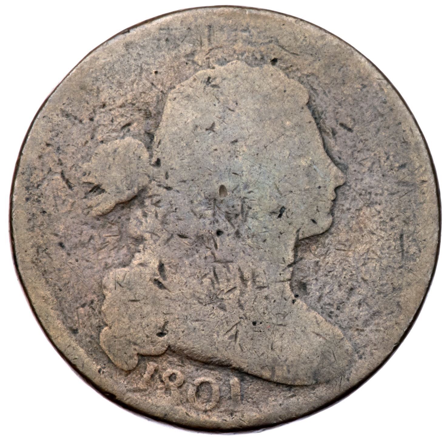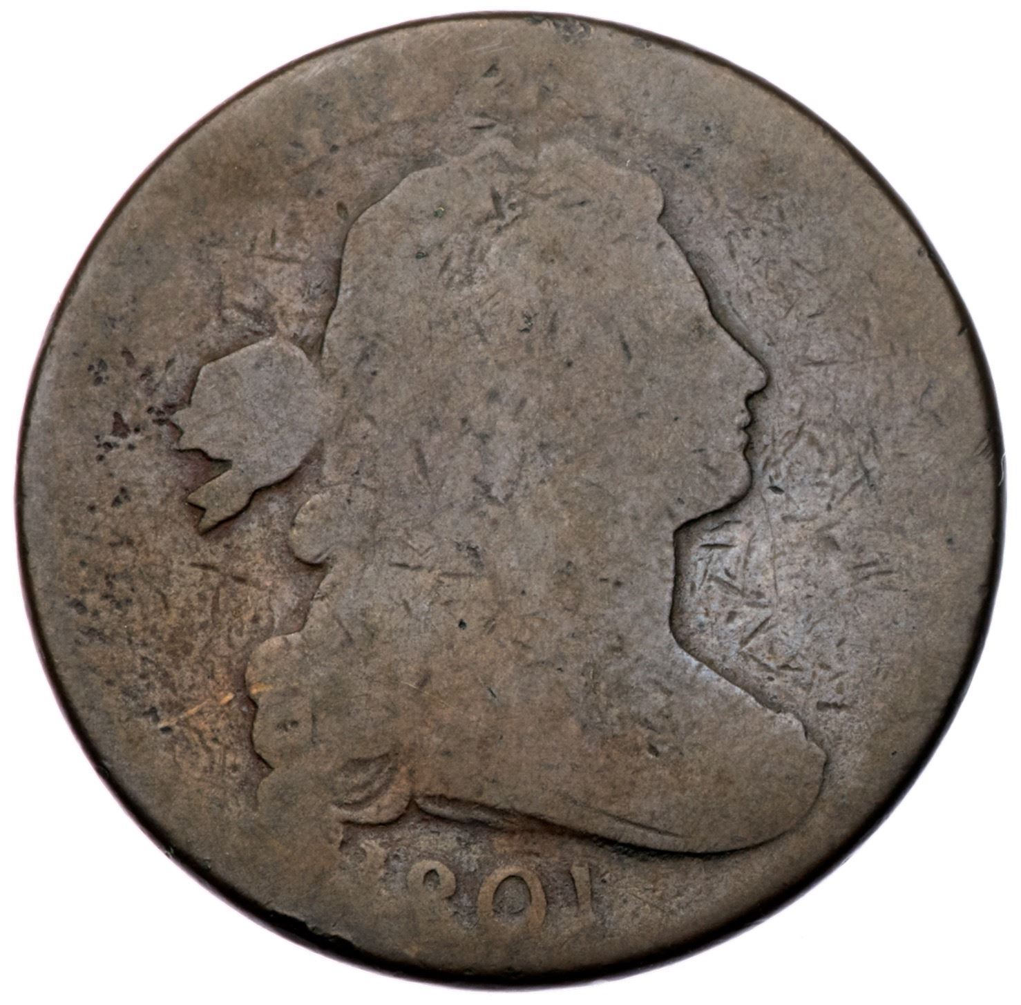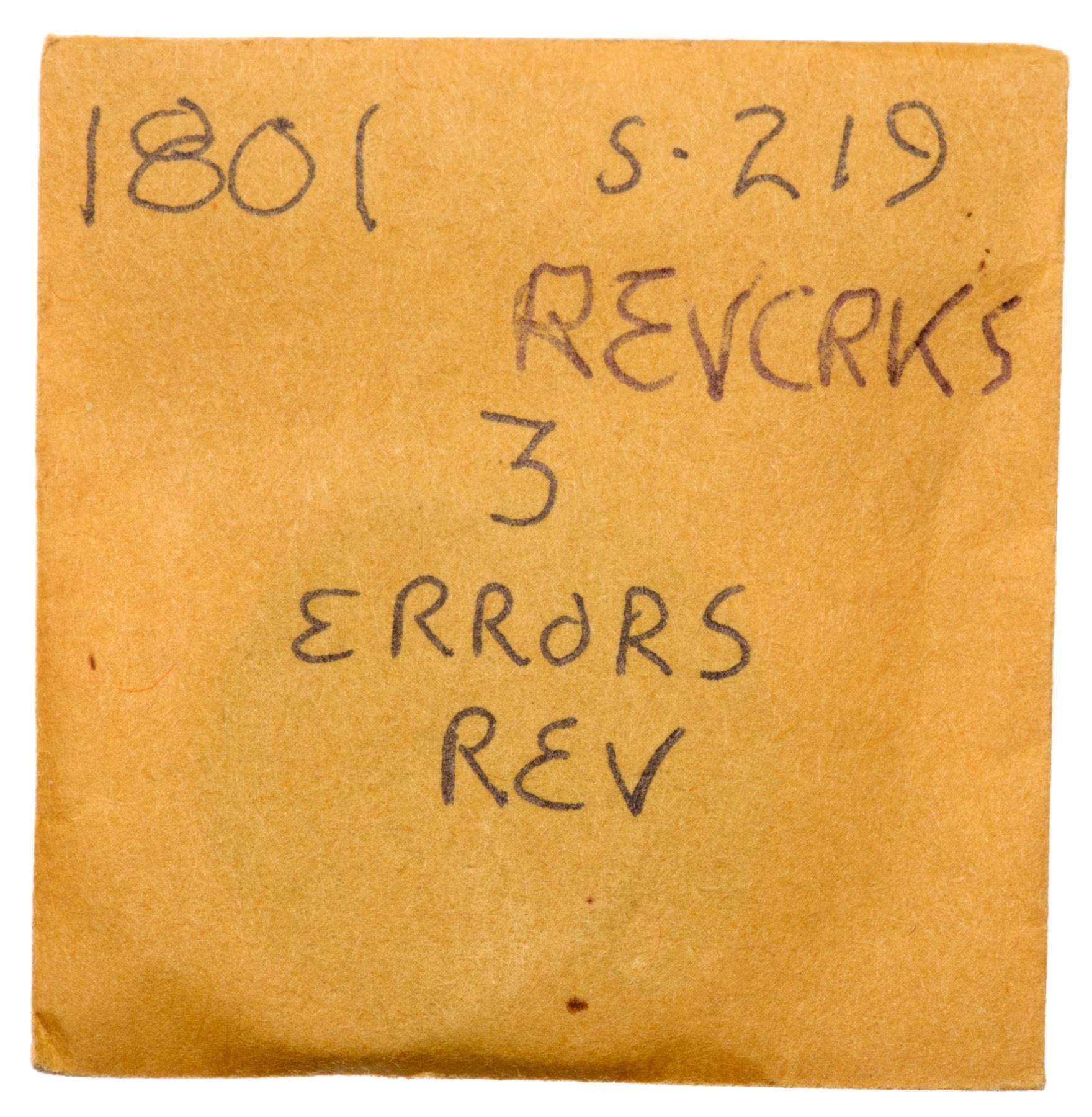 Lot of 4 1801 Draped Bust CentsLot of 4 1801 Draped Bust Cents including; an 1801 S-219 LDS FR2, an 1801 S-220 E-MDS Breen state II AG3+, an 1801 S-223 MDS AG3, and an 1801 S-224 EDS FR2. All lower grades but nice and smooth for the grades. Full dates on all but the S-219.Certificate Number: