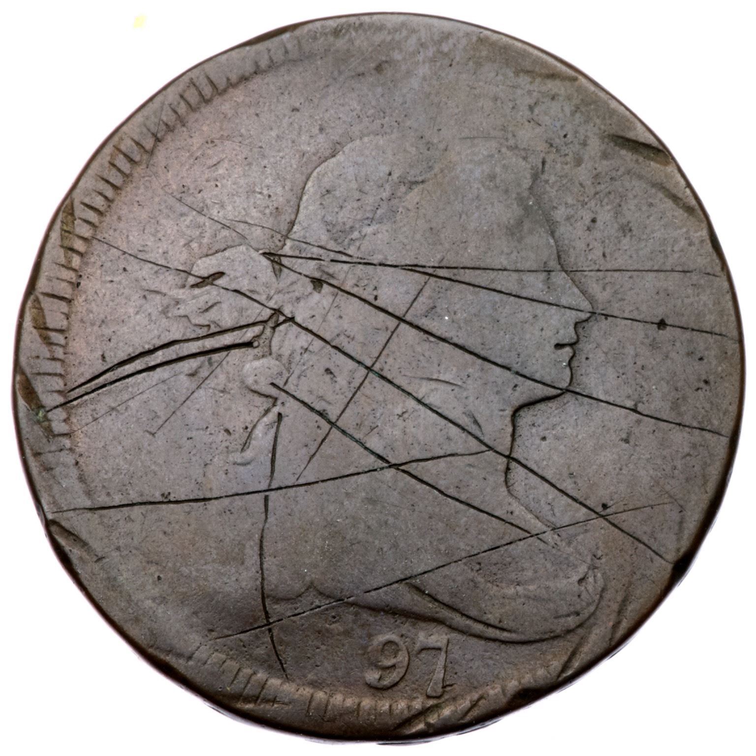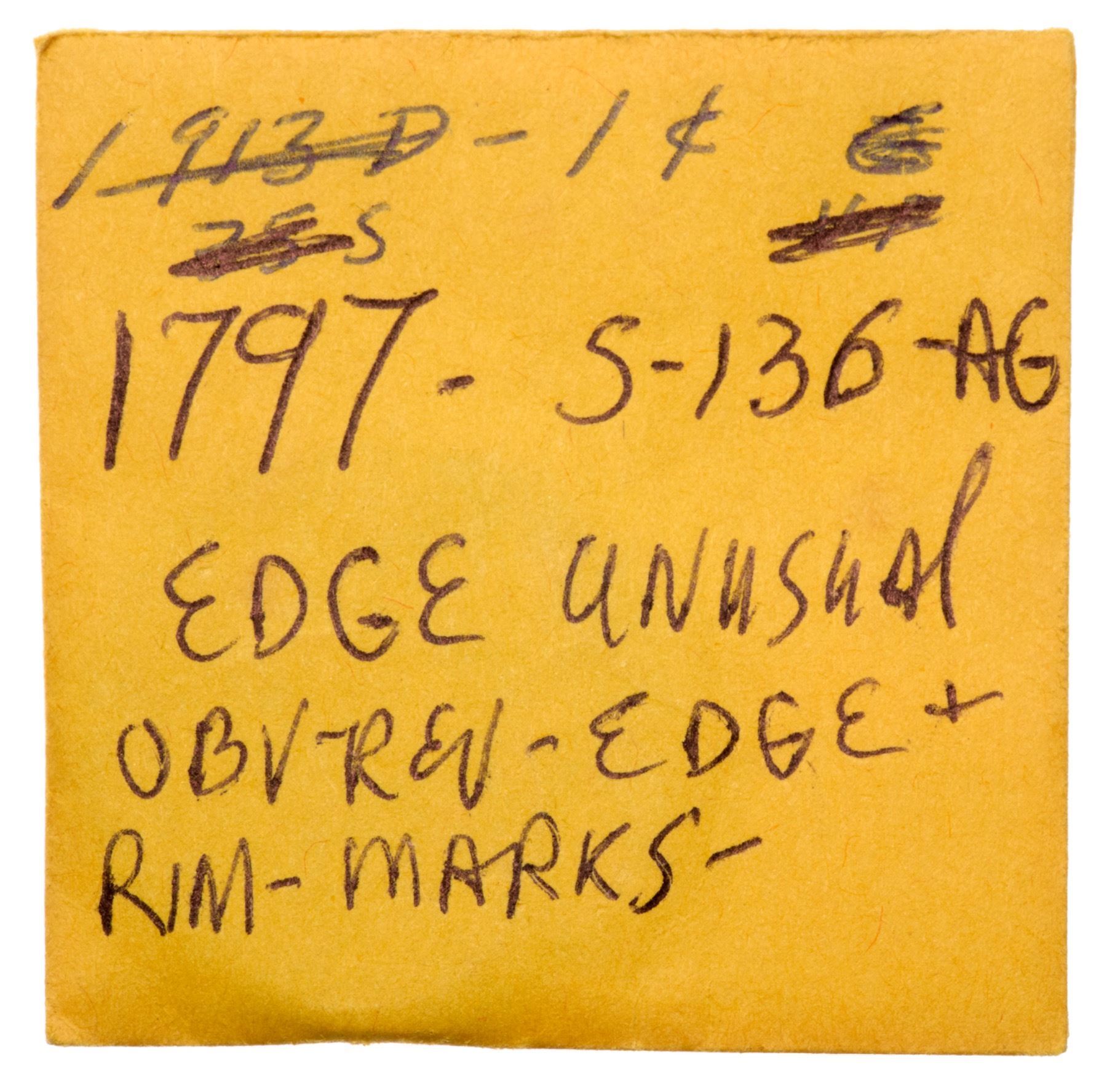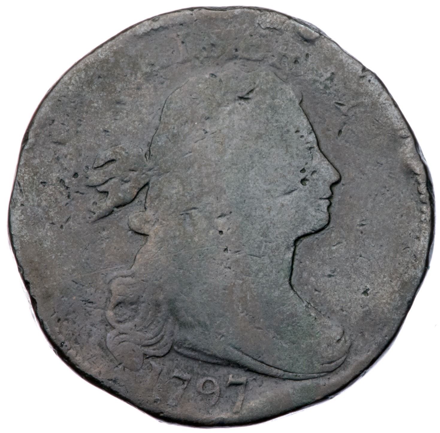 Lot of 5 1797 Draped Bust CentsLot of 5 1797 Draped Bust Cents including a 1797 S-136 AG3 net P1 due to rim cuts and obverse scratches, a 1797 S-137 P1, 1797 S-138 V-LDS G6 net G4 due to reverse rim cuts, 1797 S-140 V-LDS VG7 net AG3 due to scratches and roughness, and a 1797 S-141 G5 net FR 2 due to strong rim dents. All are more common varieties with issues but readable dates and mostly outlined devices.Certificate Number: