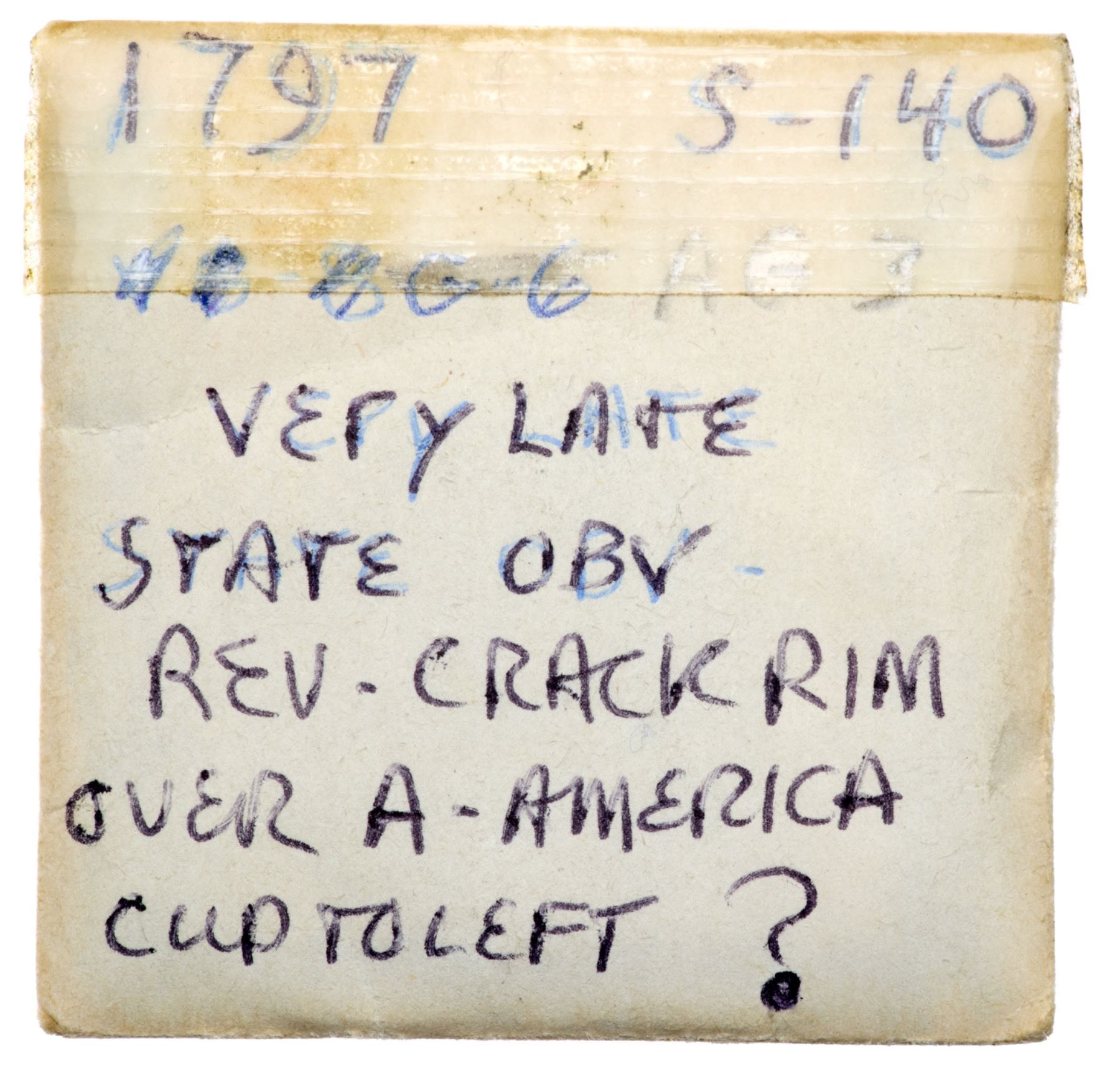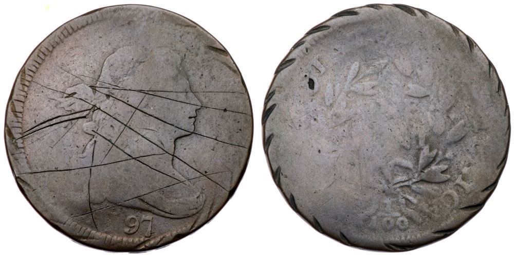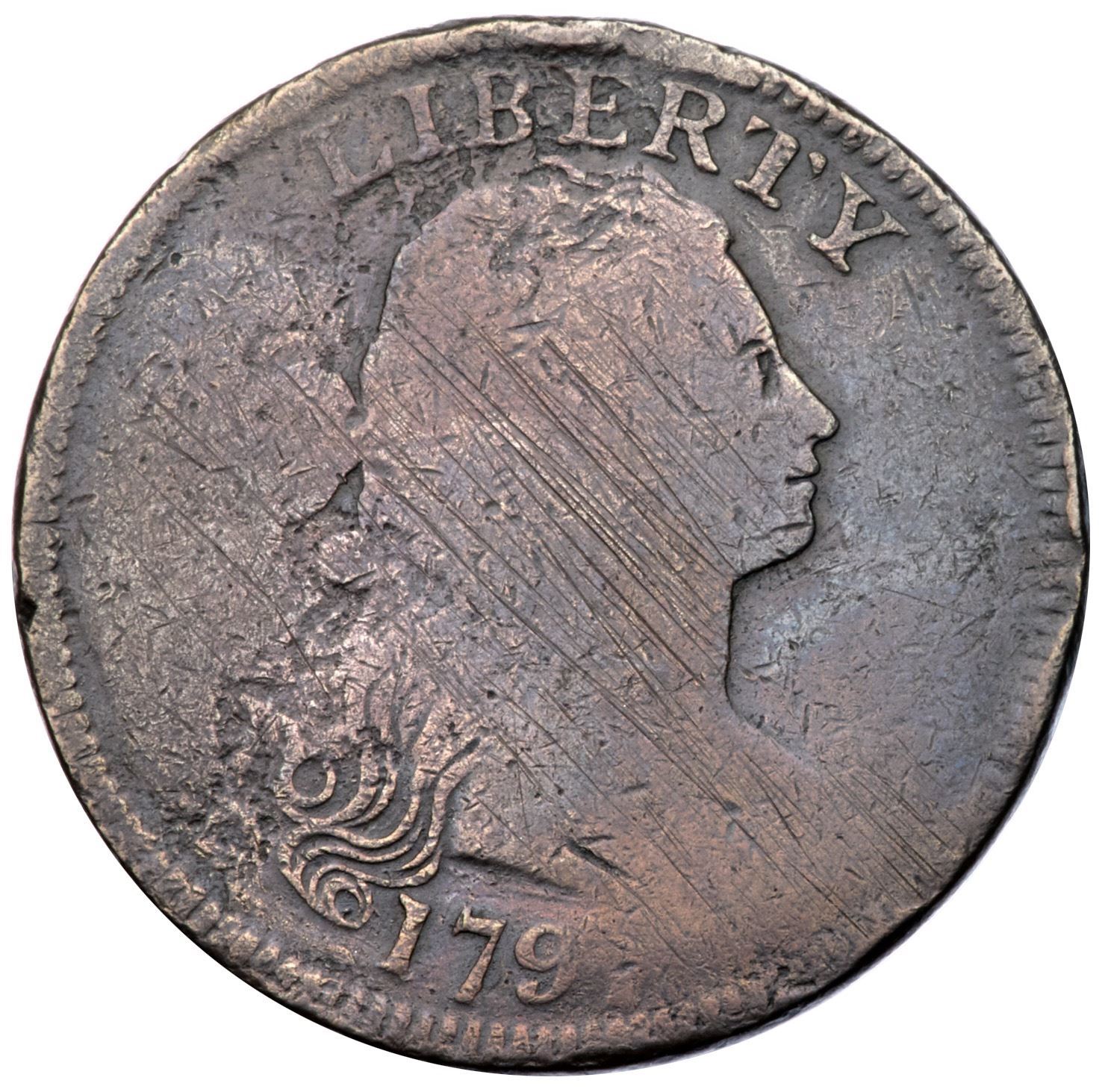 Lot of 5 1797 Draped Bust CentsLot of 5 1797 Draped Bust Cents including a 1797 S-136 AG3 net P1 due to rim cuts and obverse scratches, a 1797 S-137 P1, 1797 S-138 V-LDS G6 net G4 due to reverse rim cuts, 1797 S-140 V-LDS VG7 net AG3 due to scratches and roughness, and a 1797 S-141 G5 net FR 2 due to strong rim dents. All are more common varieties with issues but readable dates and mostly outlined devices.Certificate Number: