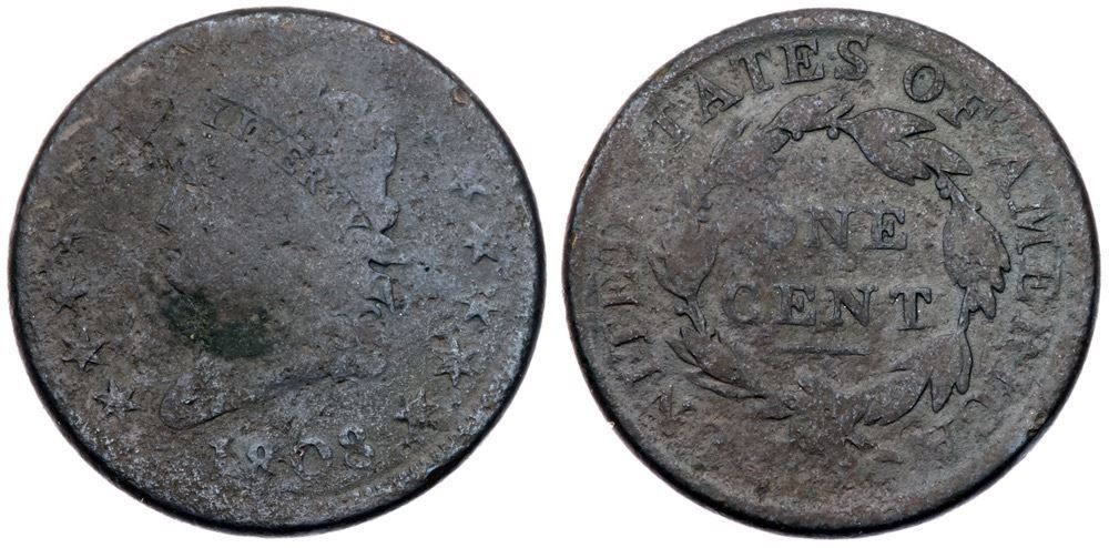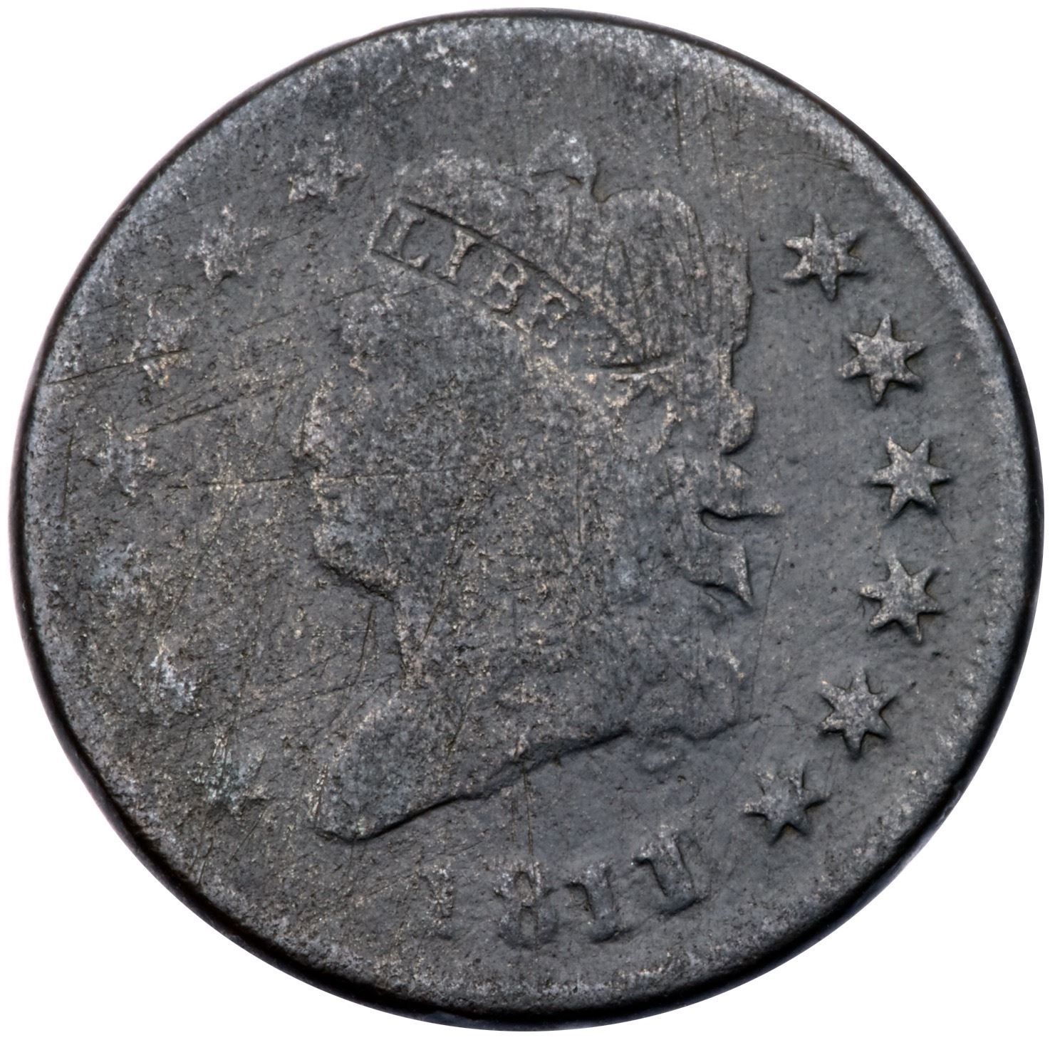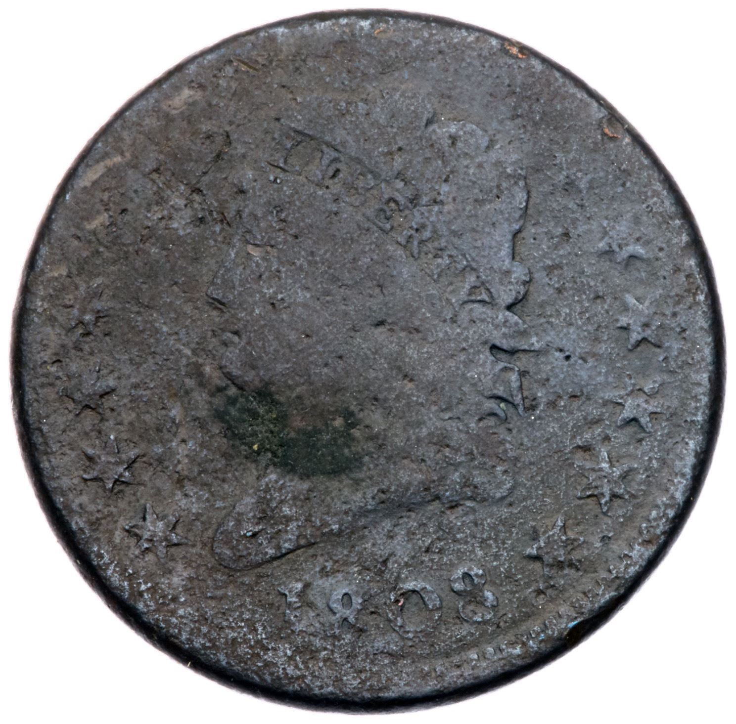 Lot of 7 Classic Head Cents 1808-1814Lot of 7 Classic Head Cents, a date run from 1808 to 1814. This includes: an 1808 S-279 R-1 LDS graded G5 net AG3 corrosion and dents; an 1809 S-280 R-2 graded AG3 net FR2 dents; an 1810/09 S-281 R-1 graded VG7 net FR2 corrosion, bent, dents; an 1811/10 S-286 R-3 graded G6 net AG3 corrosion and scratches; an 1812 S-288 R-2 graded VG8 net AG3 corrosion; an 1813 S-293 R-2 graded G5 net AG3 scratches; an 1814 S-295 R-1 graded VG8 net G4 marks, bent. All have surface issues but strong dates and outlined devices.Certificate Number: