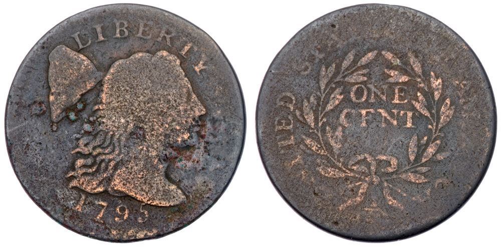 Pair of 1795 S-76b Liberty Cap CentsPair of sharper S-76b large cents with corrosion and roughness on the surfaces. One is G6 net AG3, the other is VG7 net G4. Both with full dates and fully outlined devices.Certificate Number: