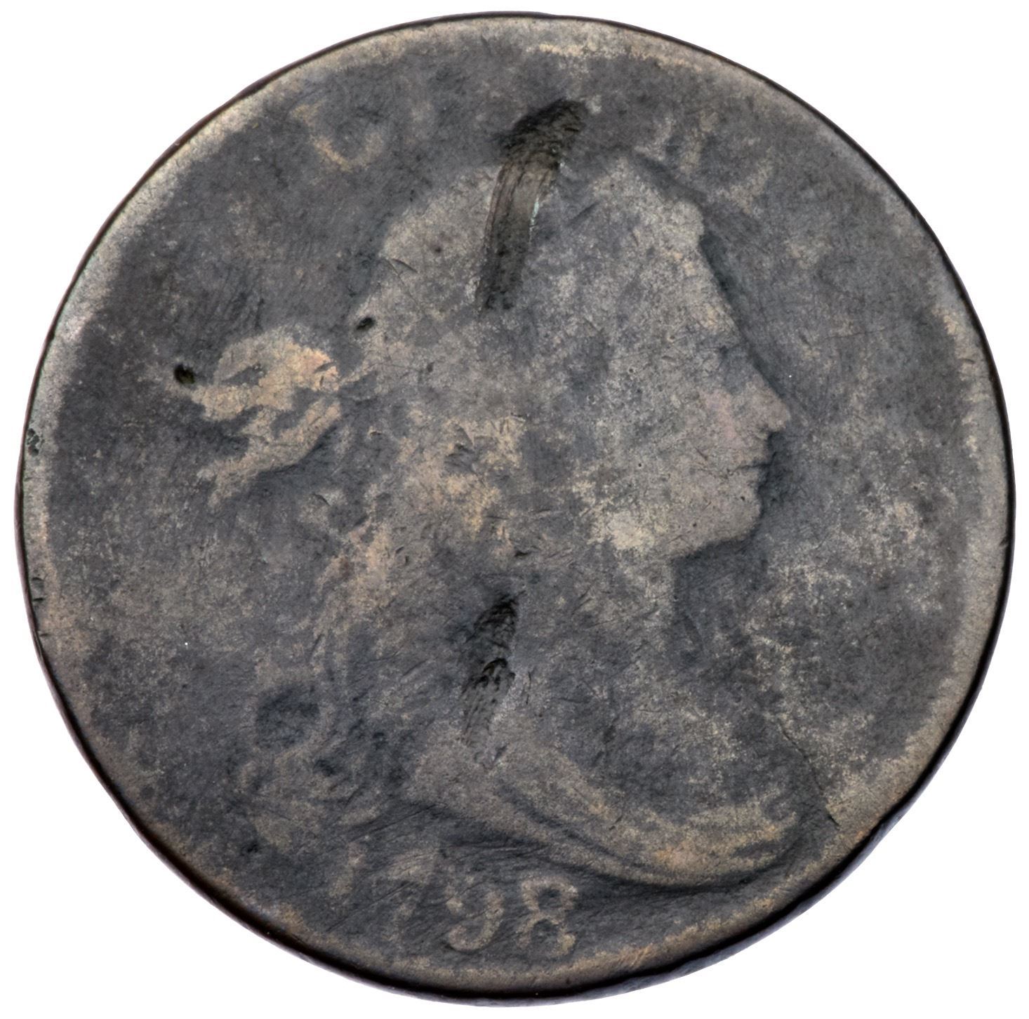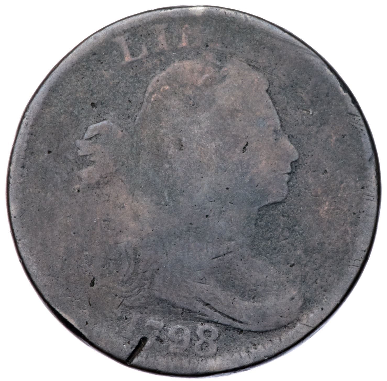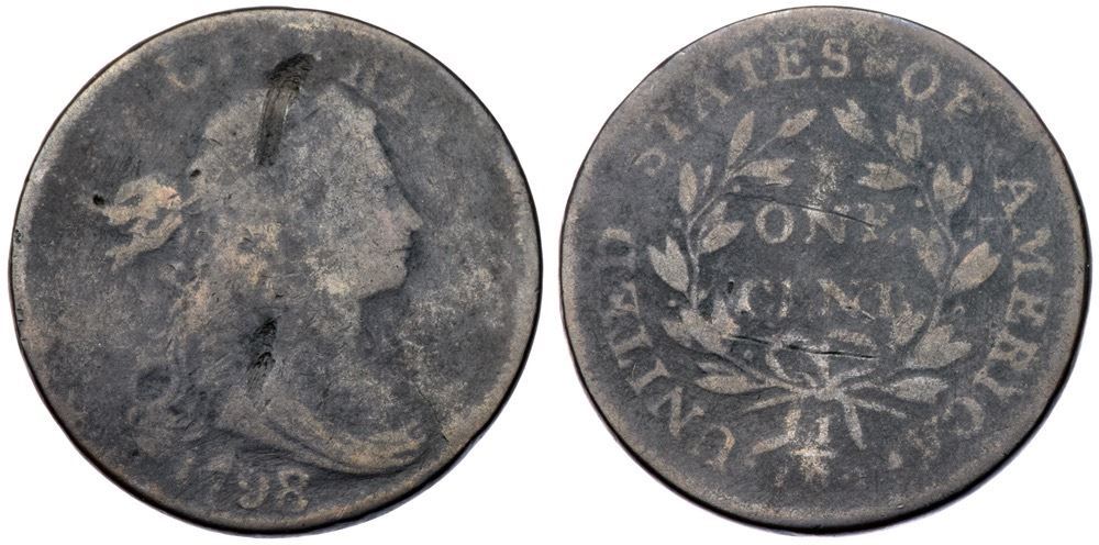 Pair of 1798/7 S-152 Draped Bust CentsPair of 1798/7 S-152 Draped Bust Cents including one FR2 with a couple notable scrapes on the portrait, and an AG3 with a scratch under 7 in the date. Both dark but with smooth surfaces and readable dates.Certificate Number:
