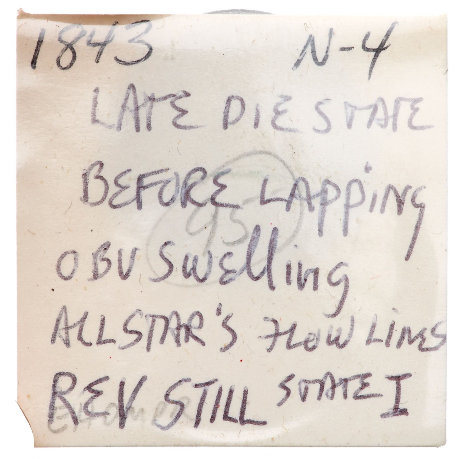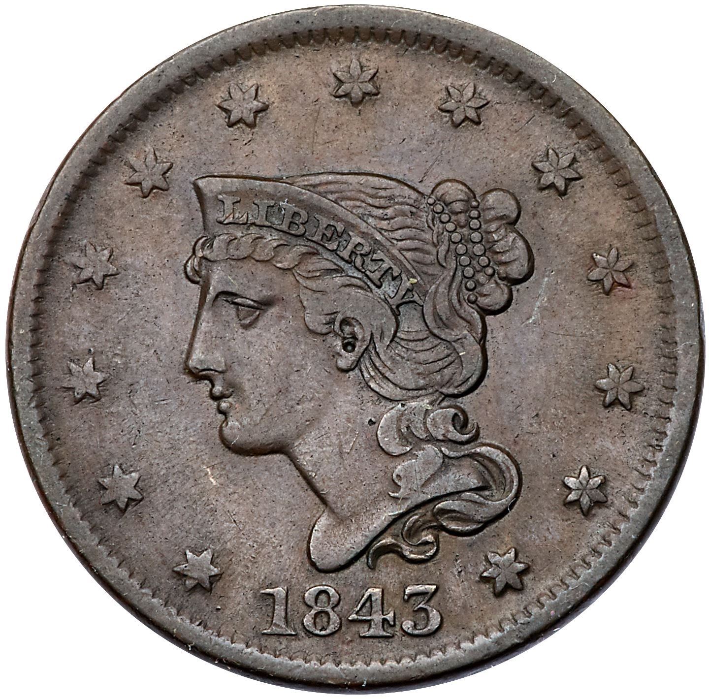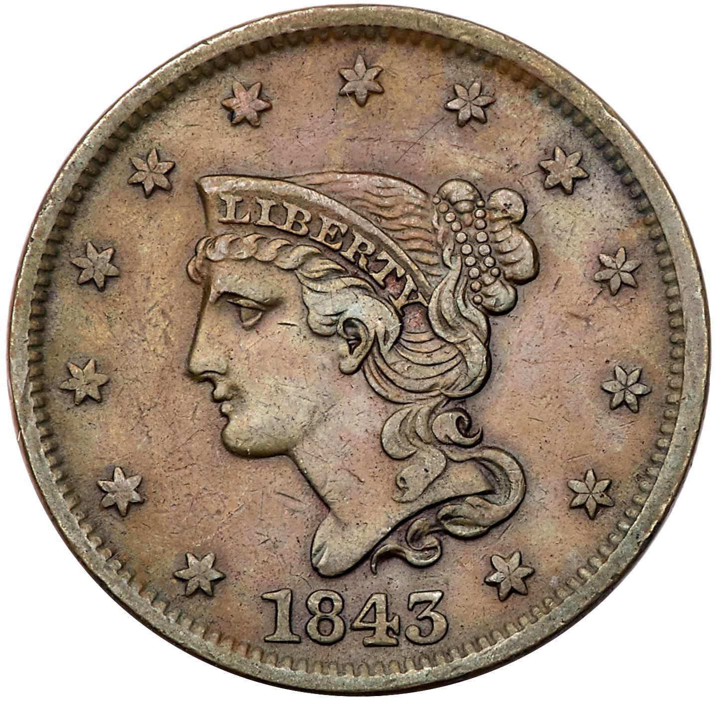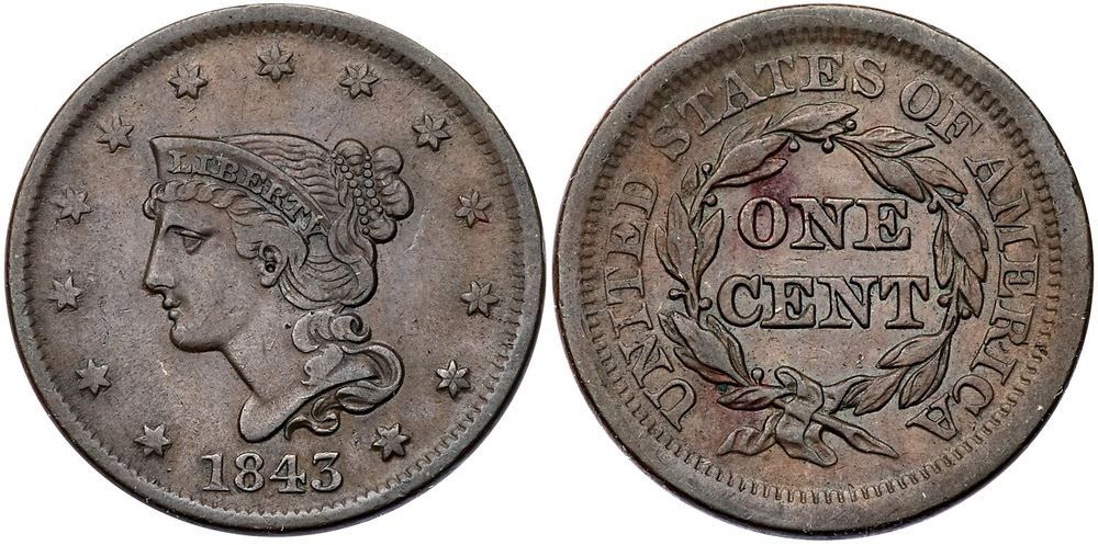 Pair of 1843 Petite Head Cents grading VF25Includes 1843 N-4 R1 Obverse of 1842, Reverse of 1844 M-LDS, and 1843 N-11 R2- E-MDS. An attractive pair, both glossy brown and chocolate. Lot of 2 coins.Pedigree: From the Fred H. Borcherdt Collection