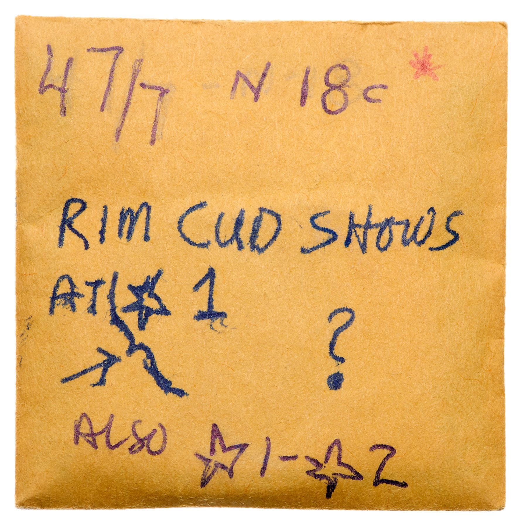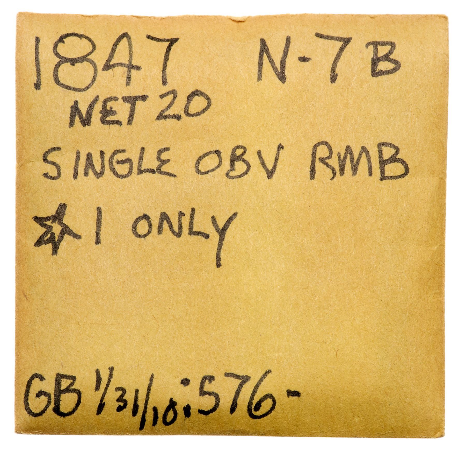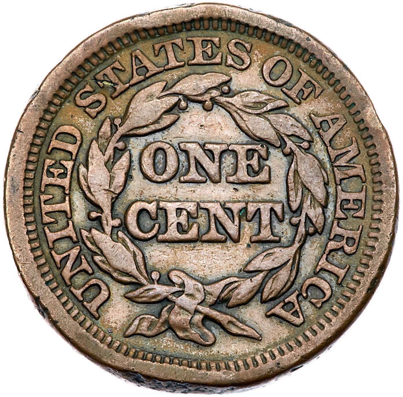 Pair of 1847 Cents with Rim CudsIncludes N-7 R2+ M-LDS (b) with a rim cud at star 1 VF30 net VF20 for nicks, and N-18 R5 Repunched Date (the so-called Large 7 over Medium 7 variety) M-LDS (c) with rim cuds from below the 1 to star 2 VF20+ net VG10 for strong rim dents. The rim cuds are clear on the first, weaker on the second. Both are glossy brown and chocolate. Lot of 2 coins.Pedigree: From the Fred H. Borcherdt Collection