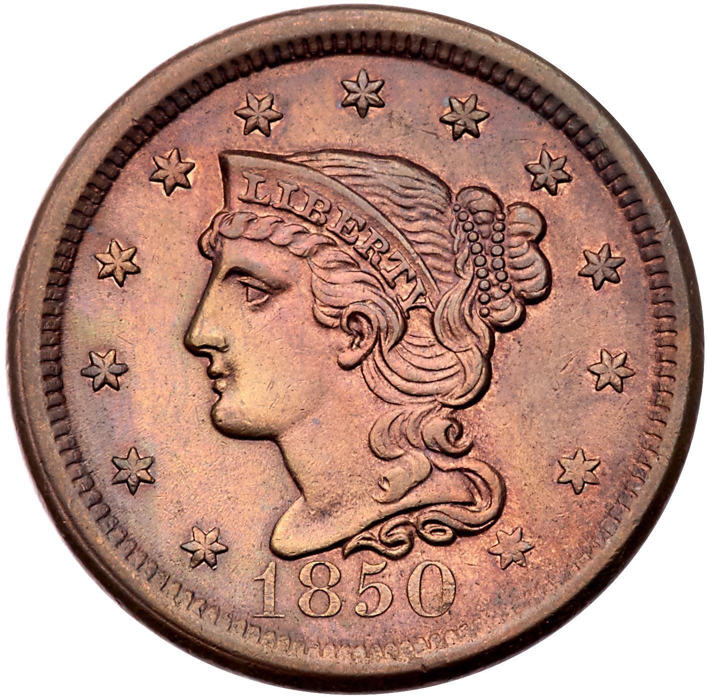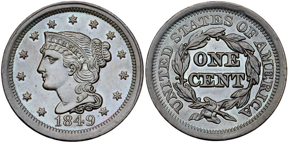 Pair of 1849 & 1850 Cents grading EF40Includes 1849 N-1 R4 Rare LDS (e), and 1850 N-21 R2 LDS (c with weak rim cuds on the reverse, Newcomb's #10). Both are ten points sharper but lightly cleaned and retoned. The retoning on the first looks original; the retoning on the second is incomplete. Lot of 2 coins.Pedigree: From the Fred H. Borcherdt Collection. The second 1849 N-2 is ex Stack's 11/18/1950:807-Willard C. Blaisdell 9/1976-R. E. "Ted" Naftzger, Jr. (includes the Naftzger collection envelope)