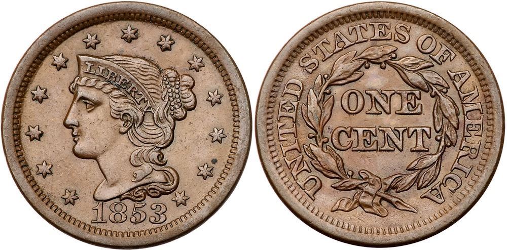 Pair of 1853 Cents grading EF40 to EF45Includes N-26 R2 MDS (b), and N-30 R1 EDS (a). Both are smooth and choice showing attractive light chocolate brown toning with mint frost in protected areas. Lot of 2 coins.Pedigree: From the Fred H. Borcherdt Collection