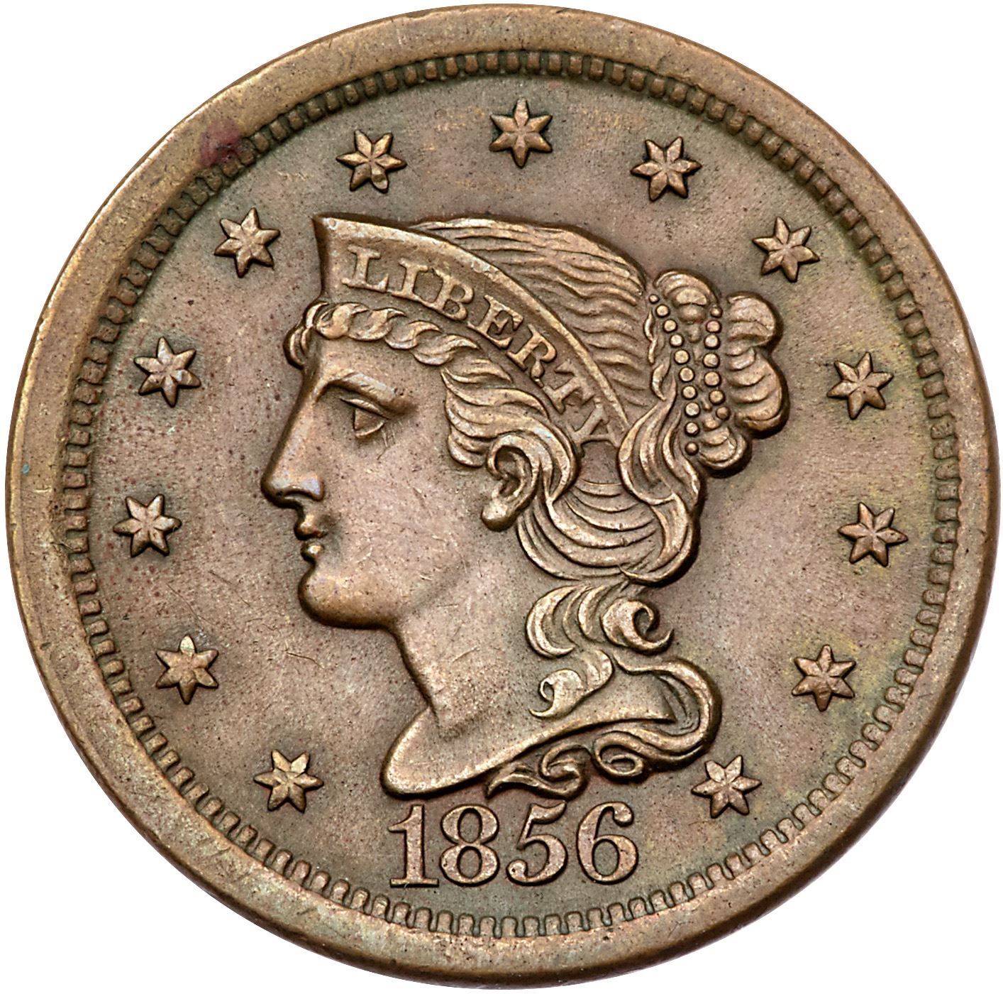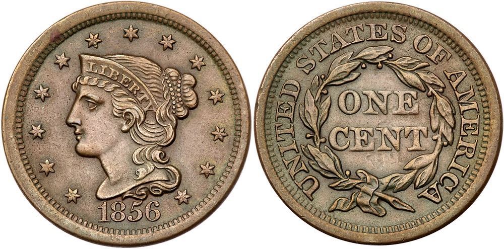 Pair of 1856 Cents grading EF45Includes N-1 R1 Italic 5 E-MDS (a+), and N-11 R1 Upright 5 M-LDS (b). Both are choice glossy brown and chocolate with smooth surfaces. Lot of 2 coins.Pedigree: From the Fred H. Borcherdt Collection