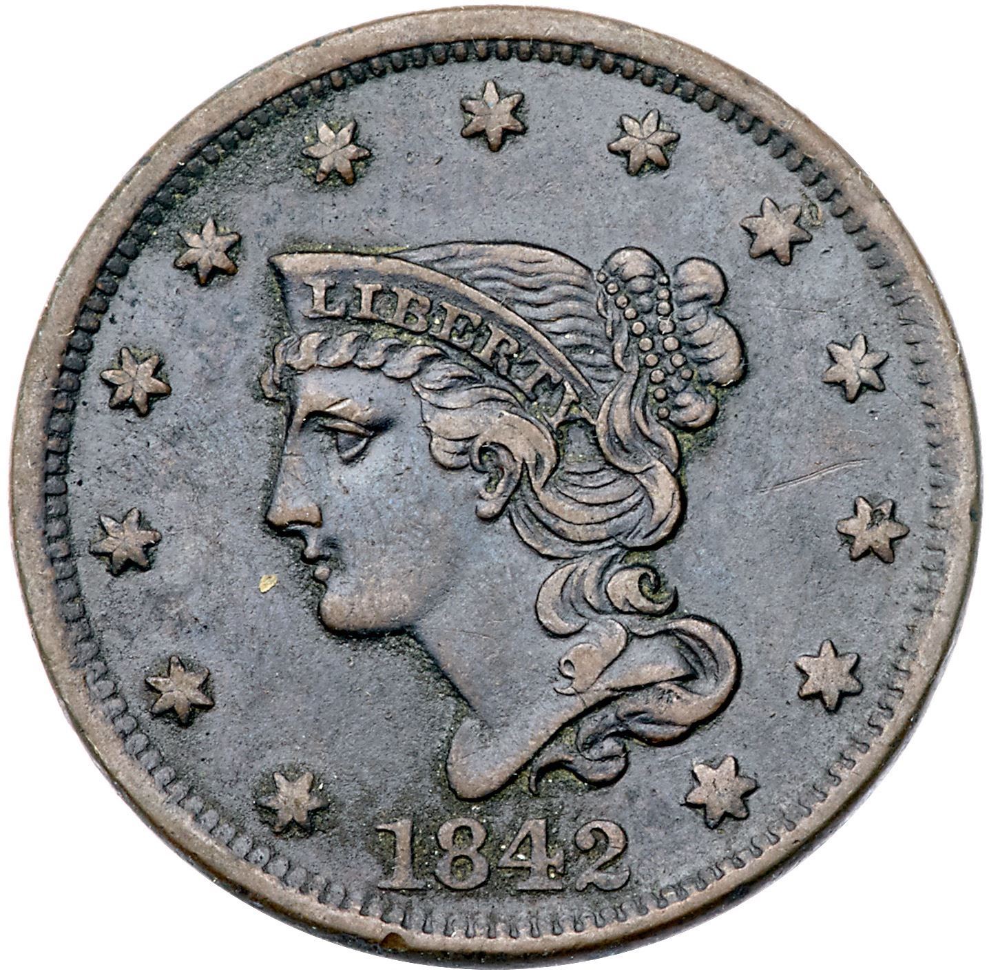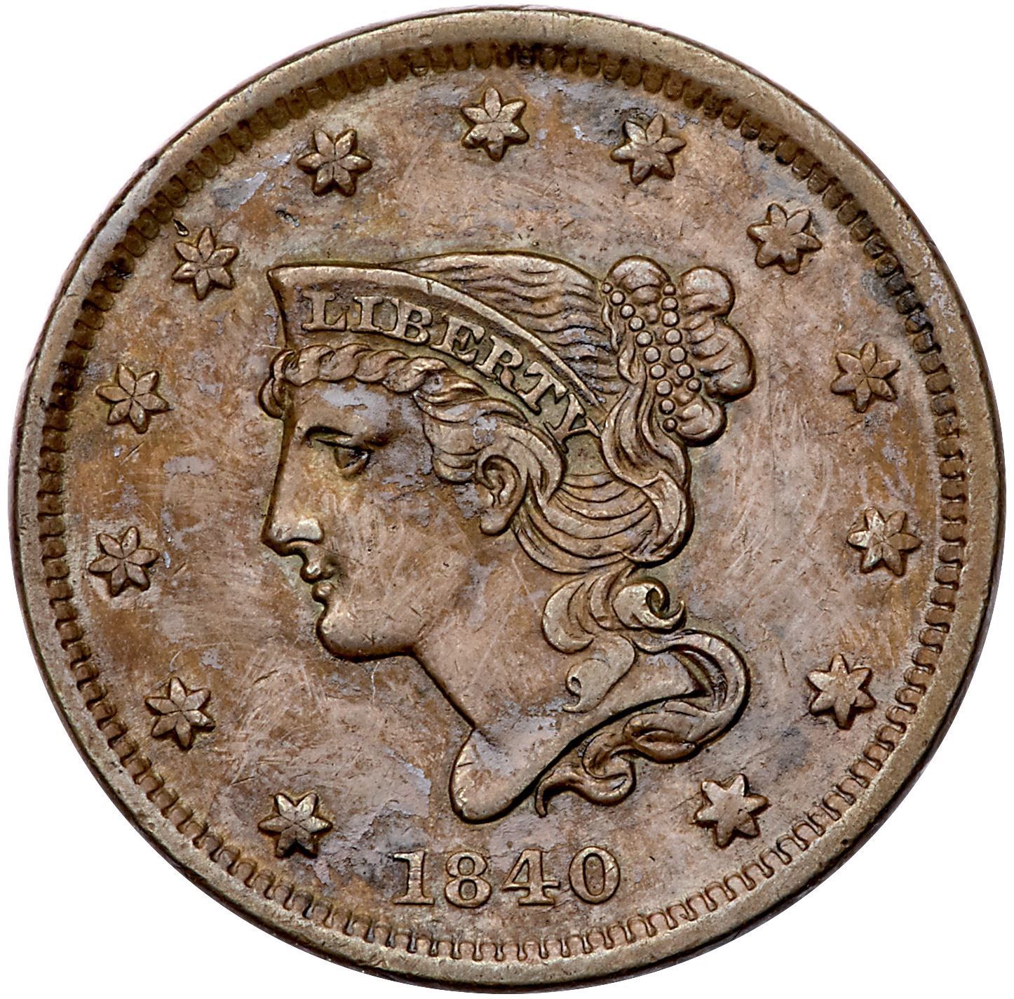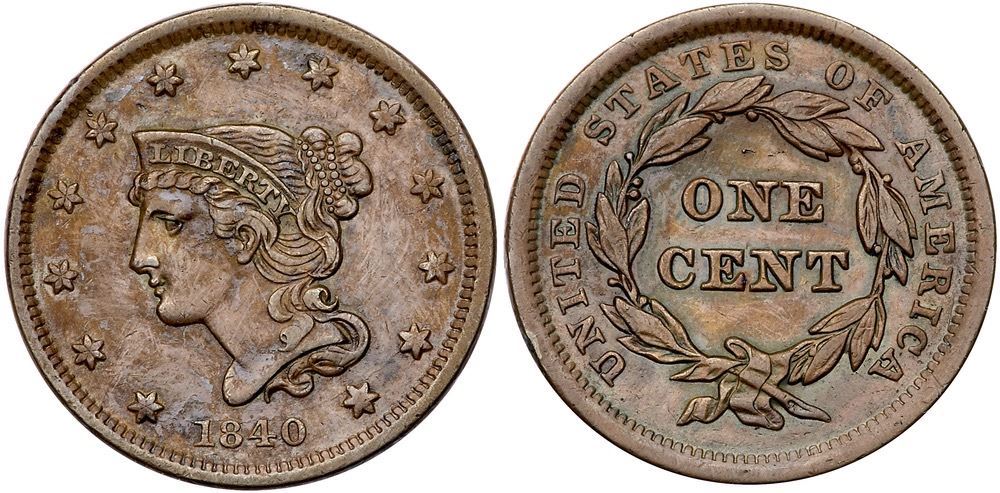 Pair of Petite Head Cents 1840 & 1842 Grading VF25Includes 1840 N-3 R1 Small Date MDS, and 1842 N-6 R1 Large Date E-MDS. Both are slightly sharper with minor defects with glossy olive brown and chocolate toning. Lot of 2 coins.Pedigree: From the Fred H. Borcherdt Collection