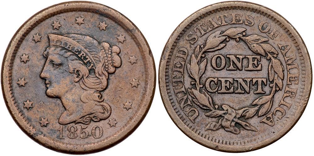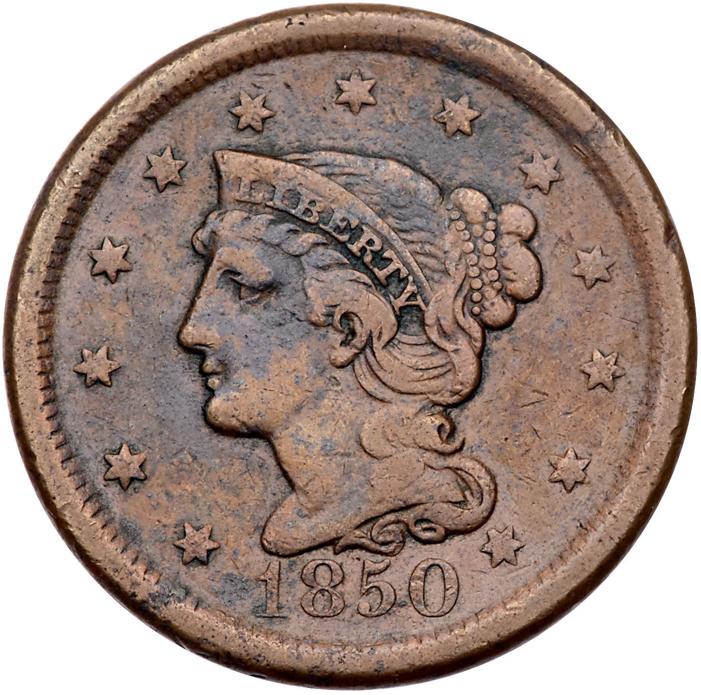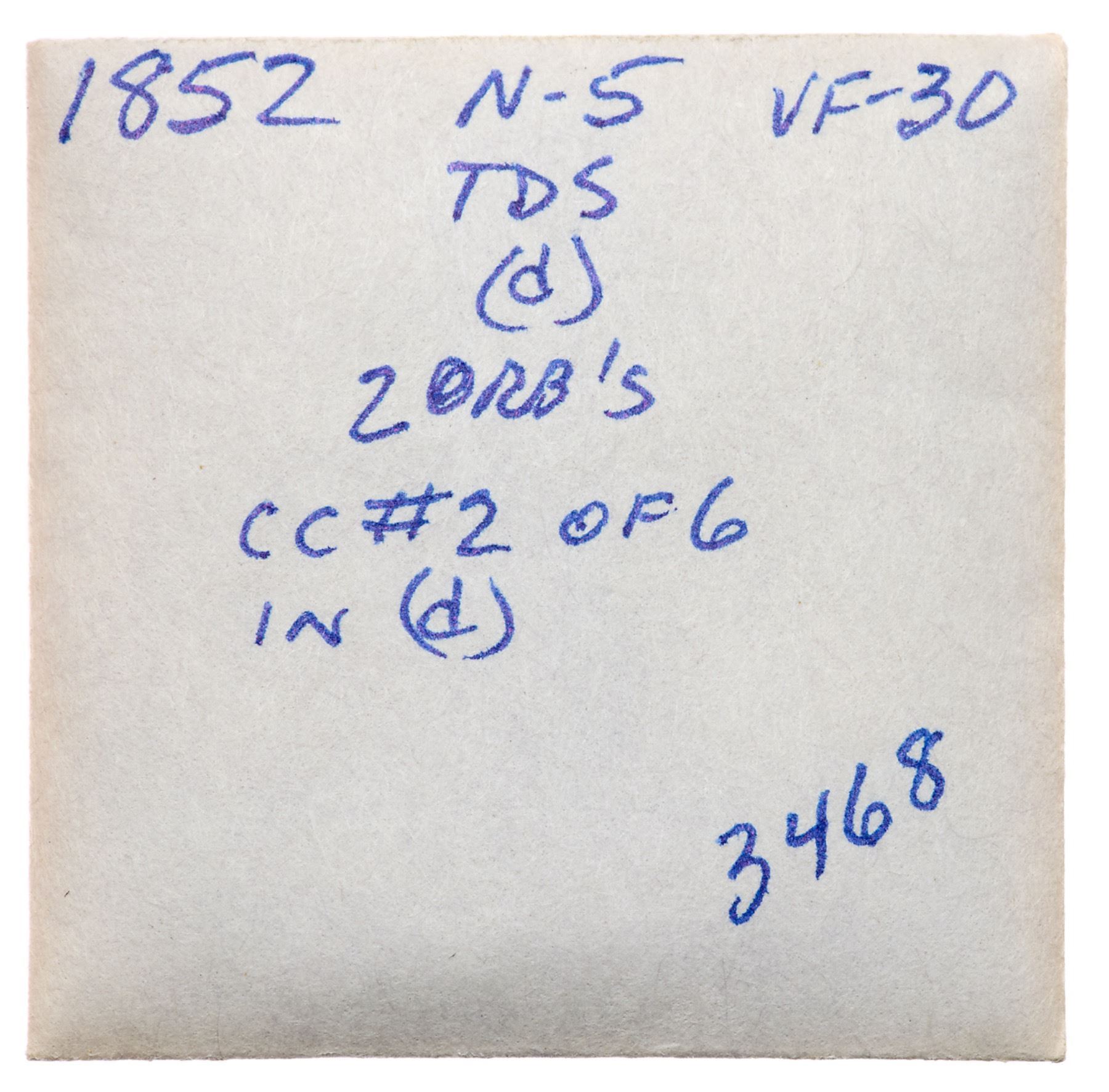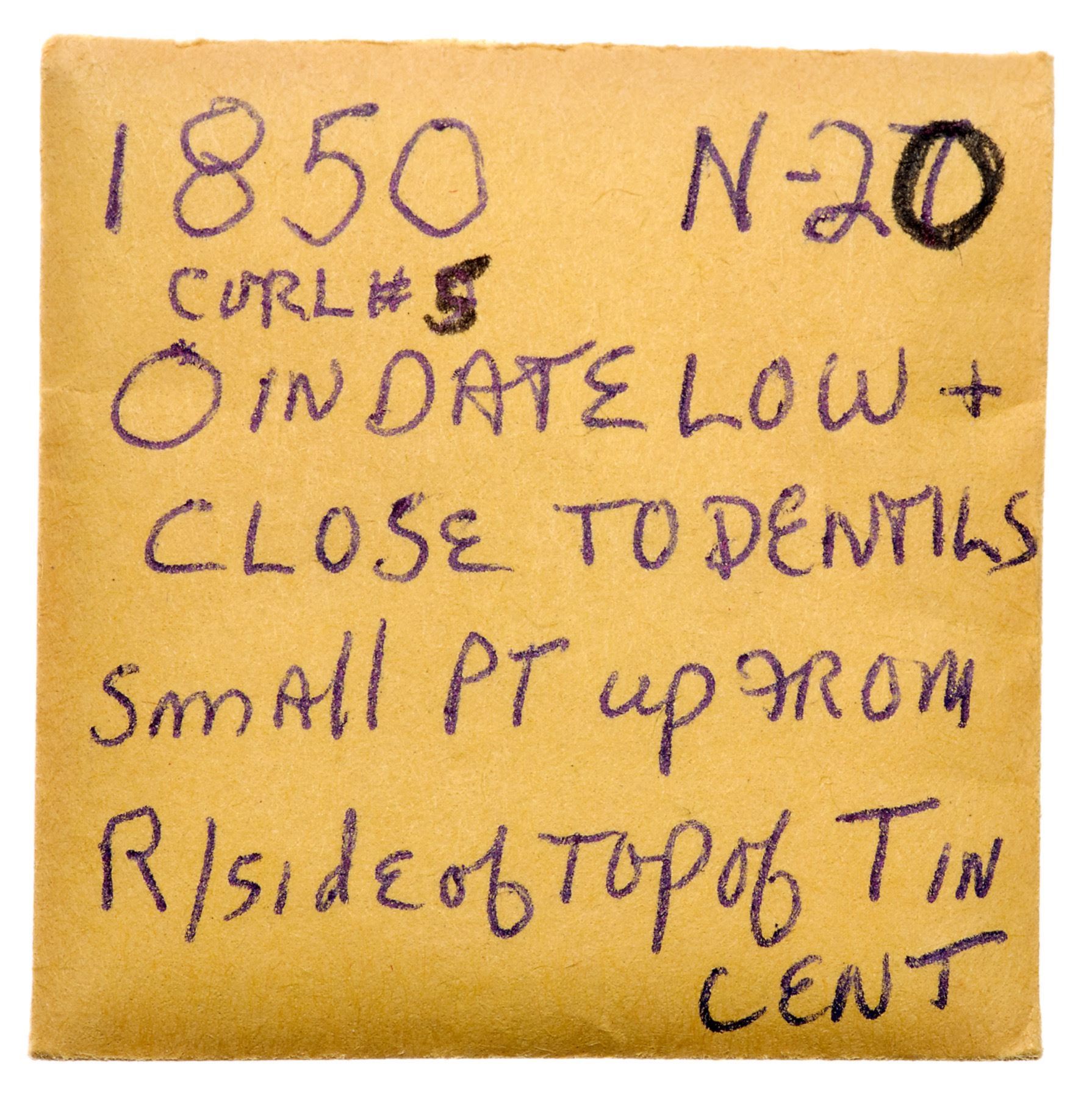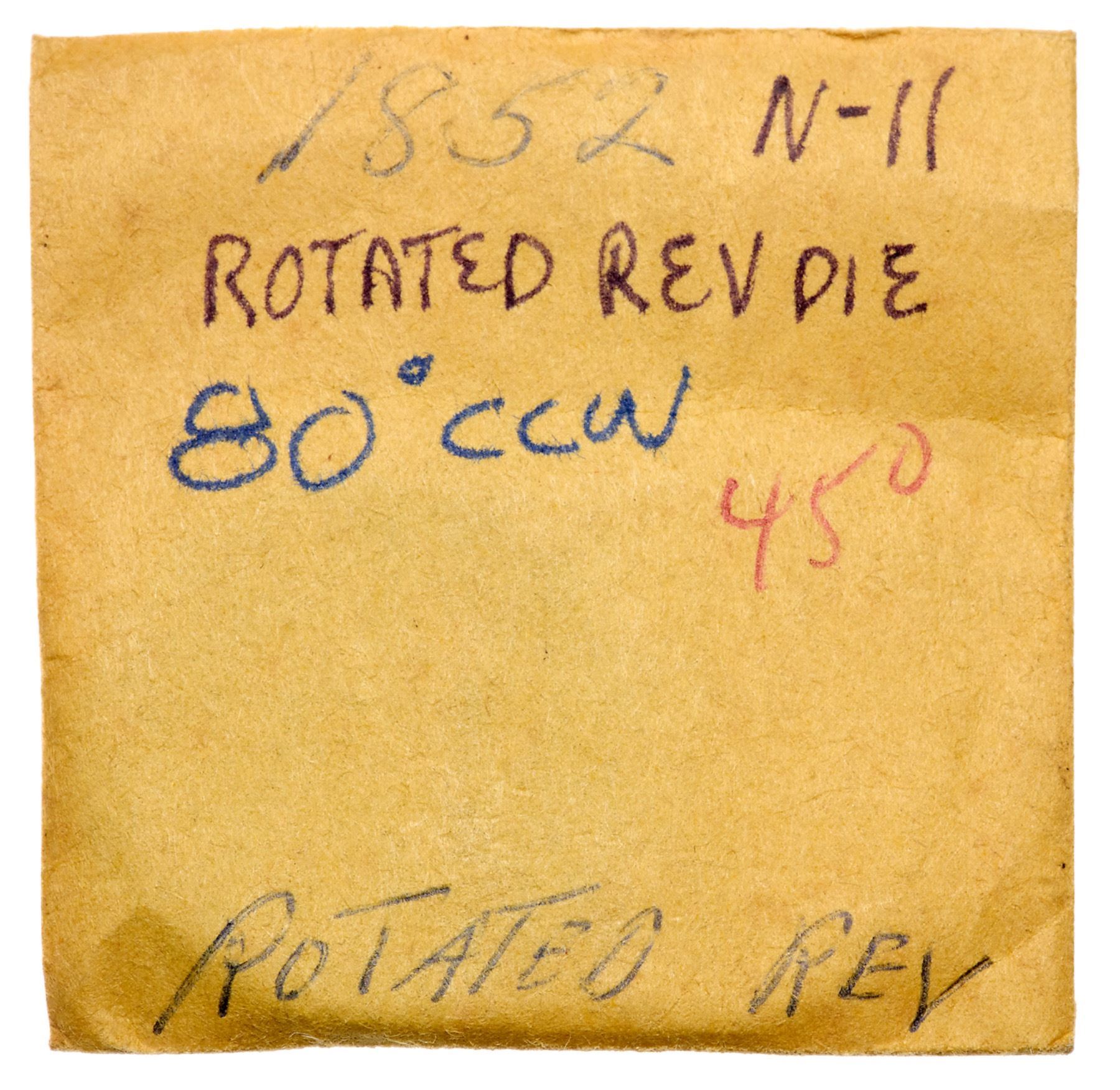 Quartet of 1850-1852 Cents, all Scarce to Rare VarietiesIncludes 1850 N-20 R5+ EDS (a) VF20 net F12 for traces of very fine verdigris, 1850 N-24 R5- MDS VG10+, 1851 N-40 R5+ MDS VG10, and 1852 N-11 R1 EDS (a) with the reverse rotated 85 degrees CCW, a very rare rotation for this variety F15. All are glossy brown and chocolate mixed with some darker olive on the first. Lot of 4 coins.Pedigree: From the Fred H. Borcherdt Collection