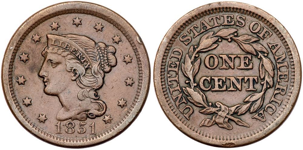 Quartet of 1851 Cents grading VF20Includes N-7 R1, N-16 R3 Repunched 1, N-19 R3 Second 1 Repunched, and N-21 R3+. All are glossy light brown and chocolate. Lot of 4 coins.Pedigree: From the Fred H. Borcherdt Collection