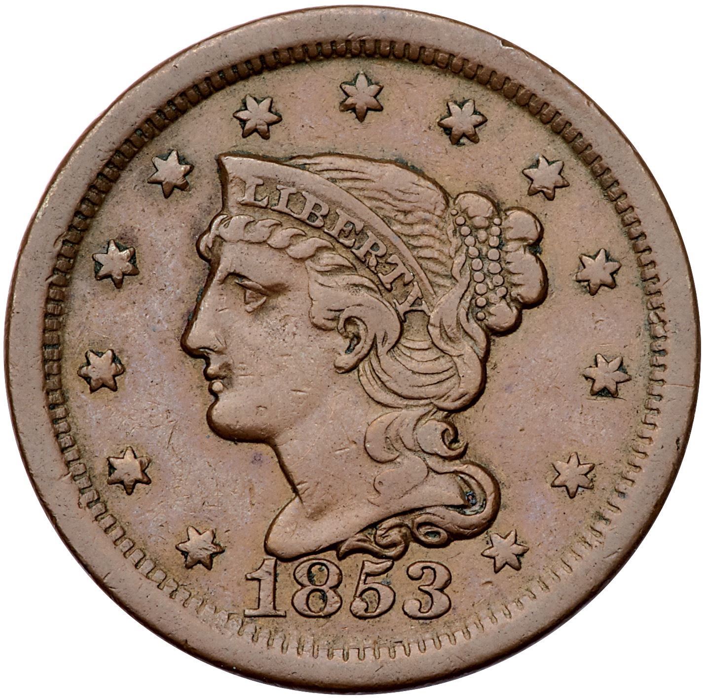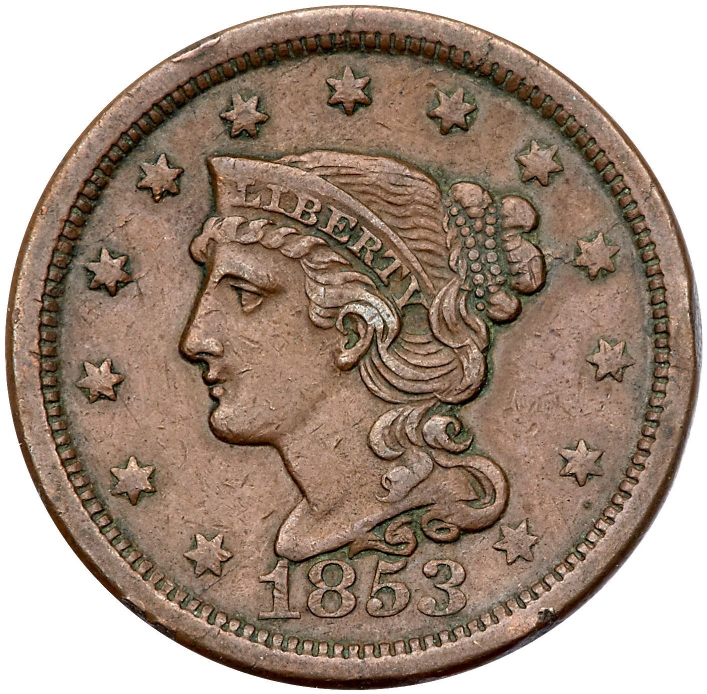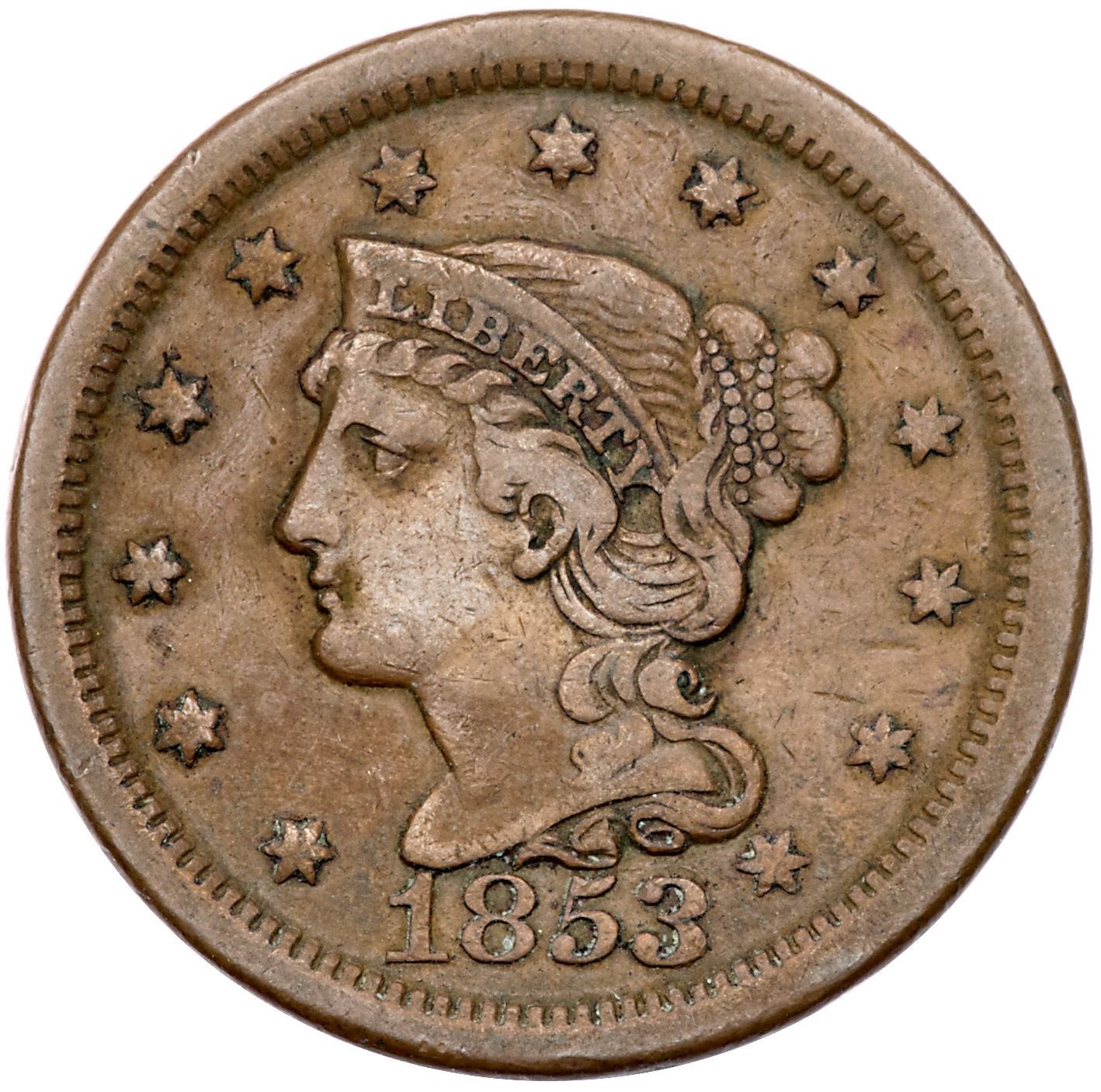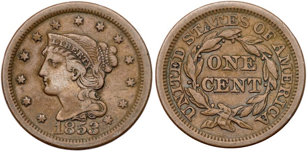Quartet of 1853 Cents grading VF20Includes N-4 R3+ Repunched 3, N-10 R1 Repunched 18, N-12 R1+, and N-17 R2 Repunched 1. All are glossy brown and light chocolate with smooth surfaces. Lot of 4 coins.Pedigree: From the Fred H. Borcherdt Collection