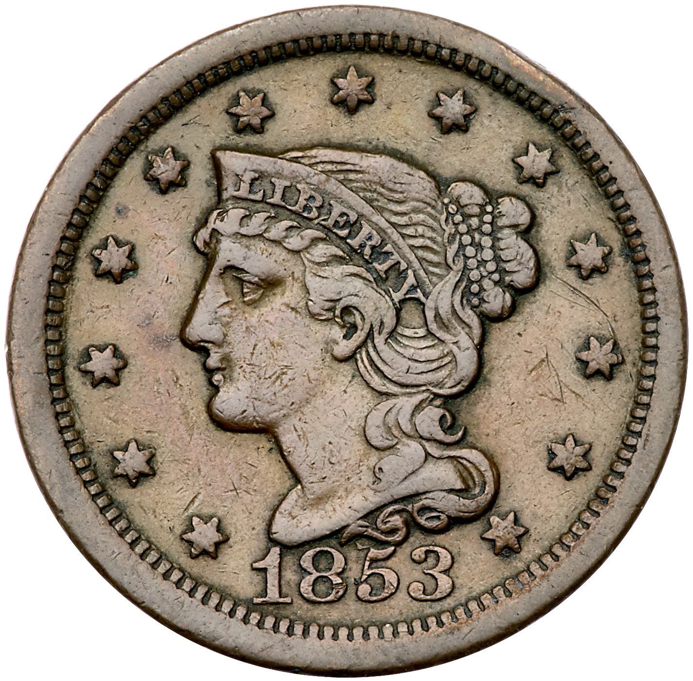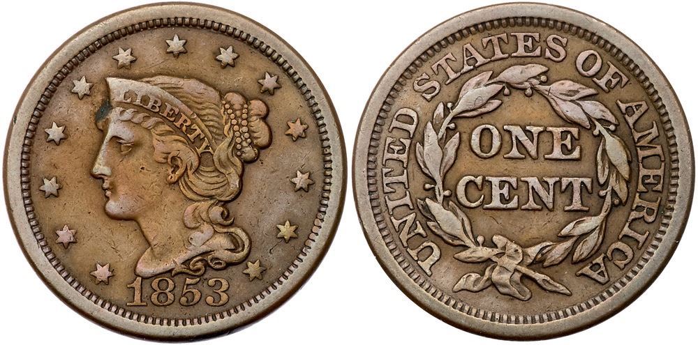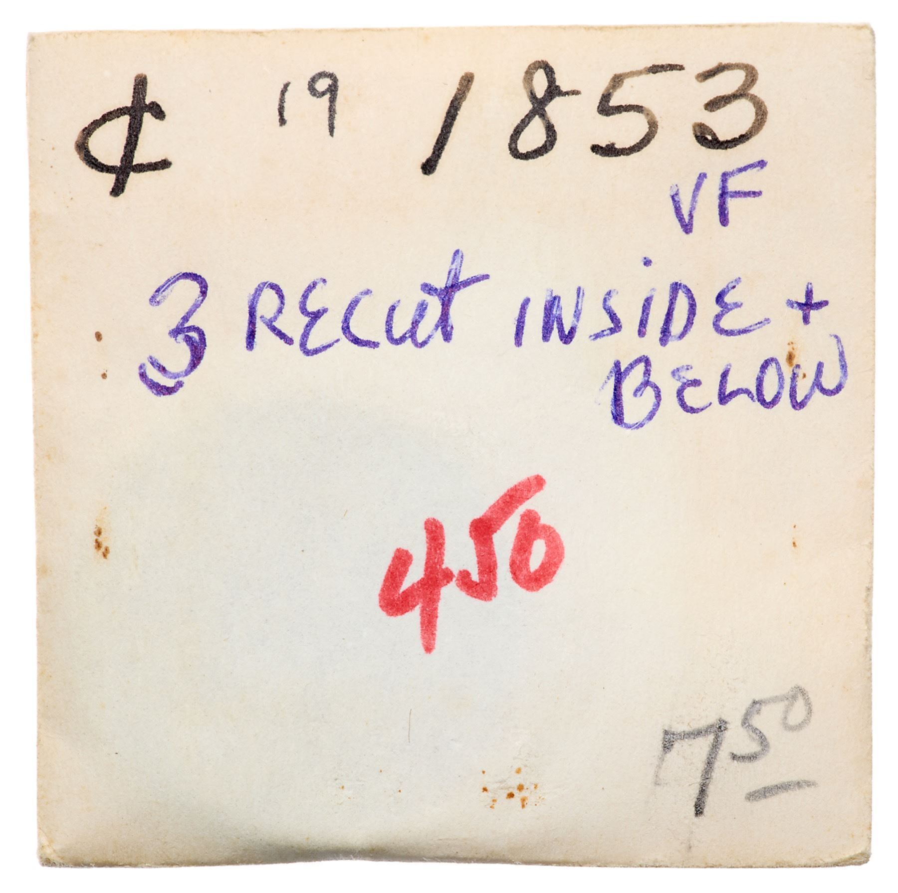 Quartet of 1853 Cents grading VF20Includes N-12 R1+, N-15 R2 Repunched 5, N-17 R2 Repunched 1, and N-19 R1 Repunched 853. All are glossy brown and chocolate with smooth surfaces. Lot of 4 coins.Pedigree: From the Fred H. Borcherdt Collection