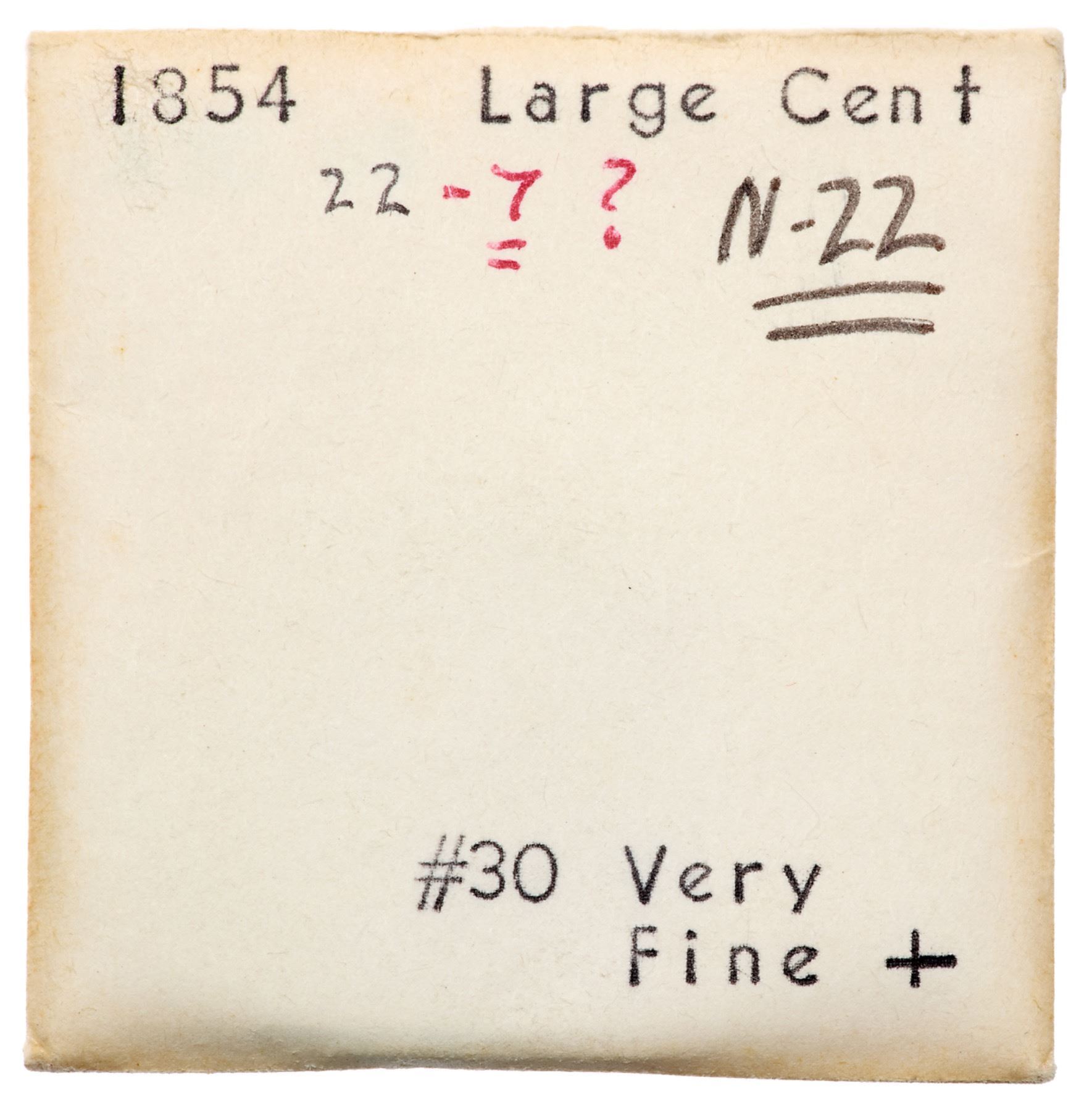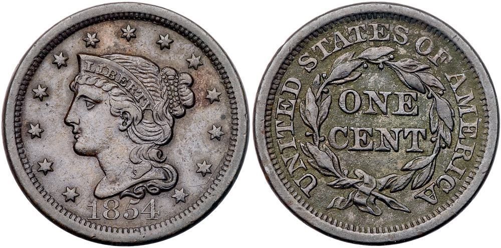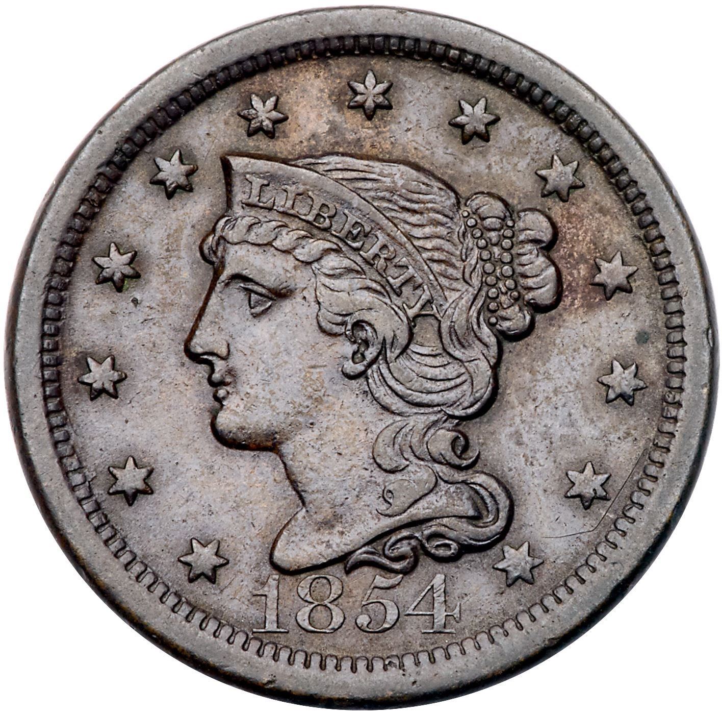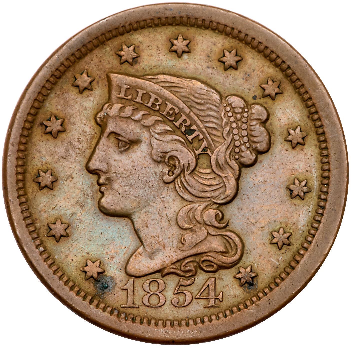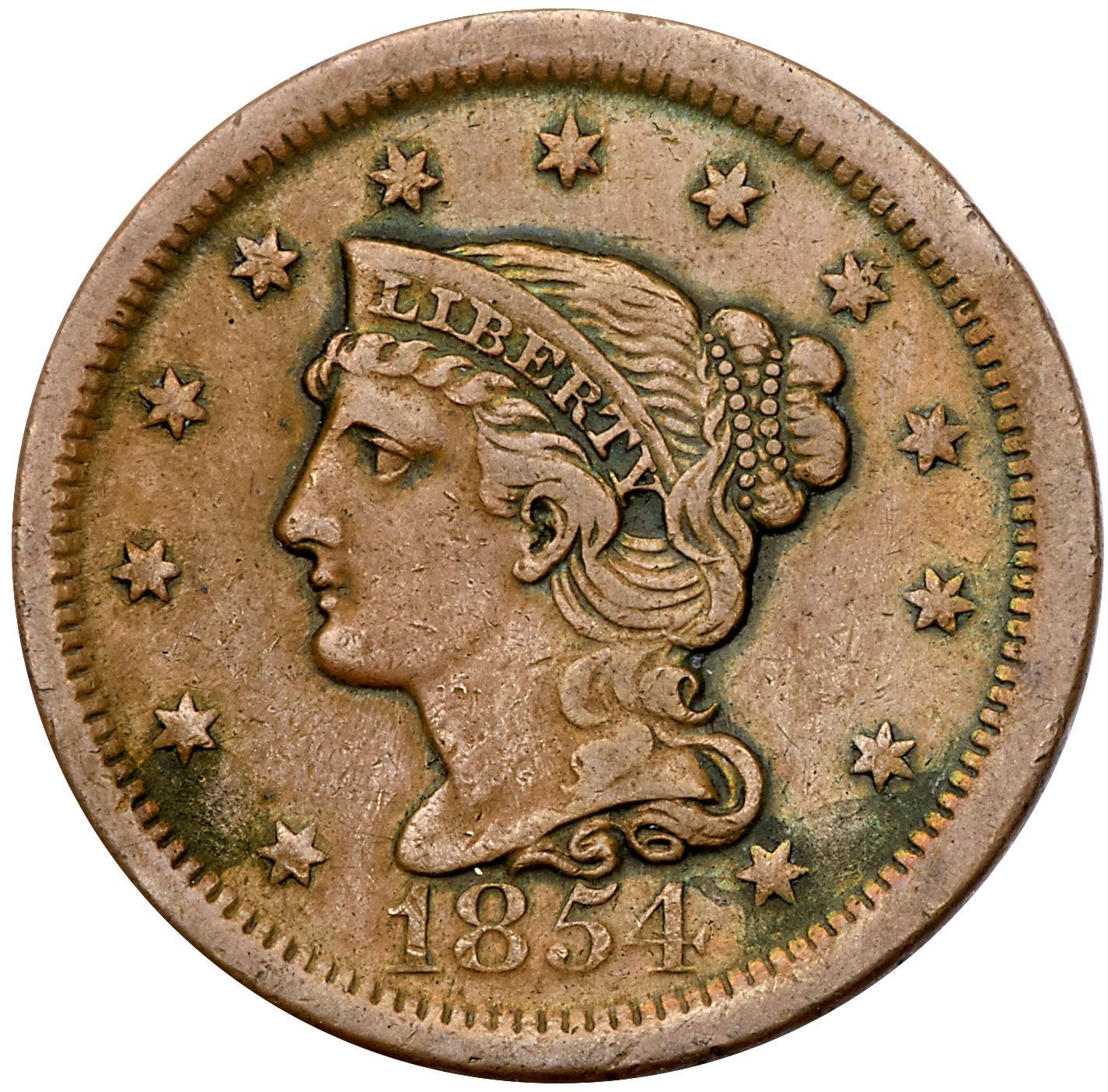 Quartet of 1854 Cents grading VF20Includes N-18 R2+, N-20 R3 Stray 1 in Dentils, N-22 R3+, and N-23 R2. A couple are sharper with defects; all but the first are glossy brown and chocolate with smooth surfaces. Lot of 4 coins.Pedigree: From the Fred H. Borcherdt Collection