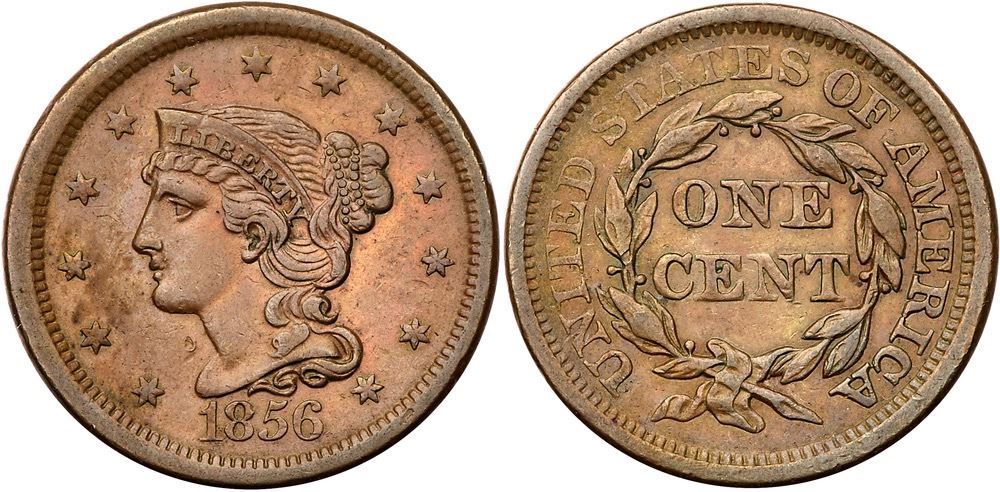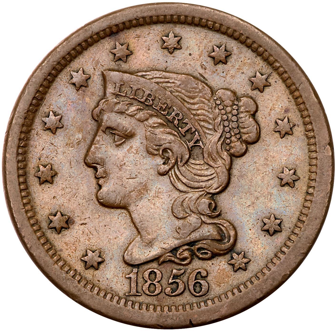 Quartet of 1856 Cents grading VF30Includes N-2 R1 Italic 5 M-LDS (d), N-11 R1 Upright 5 E-MDS (a), N-17 R3 Italic 5 MDS (b), and N-19 R2+ MDS (b). Two are slightly sharper with minor defects but all are smooth with glossy brown and light chocolate toning. Lot of 4 coins.Pedigree: From the Fred H. Borcherdt Collection