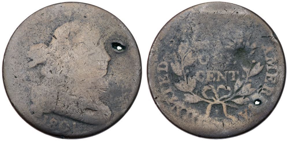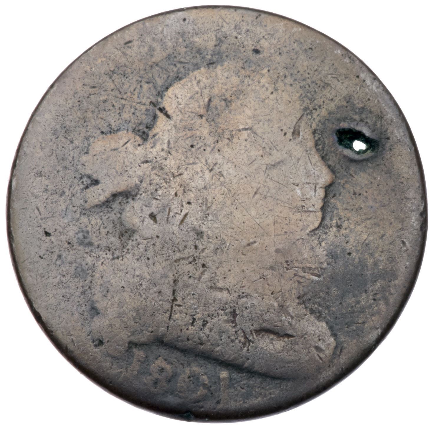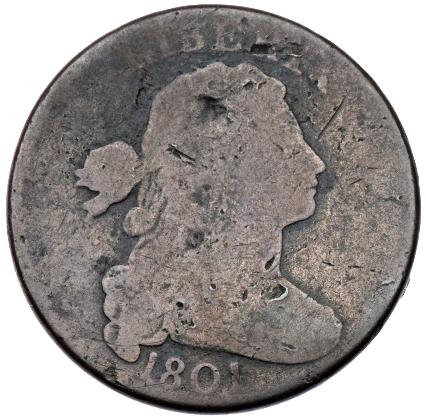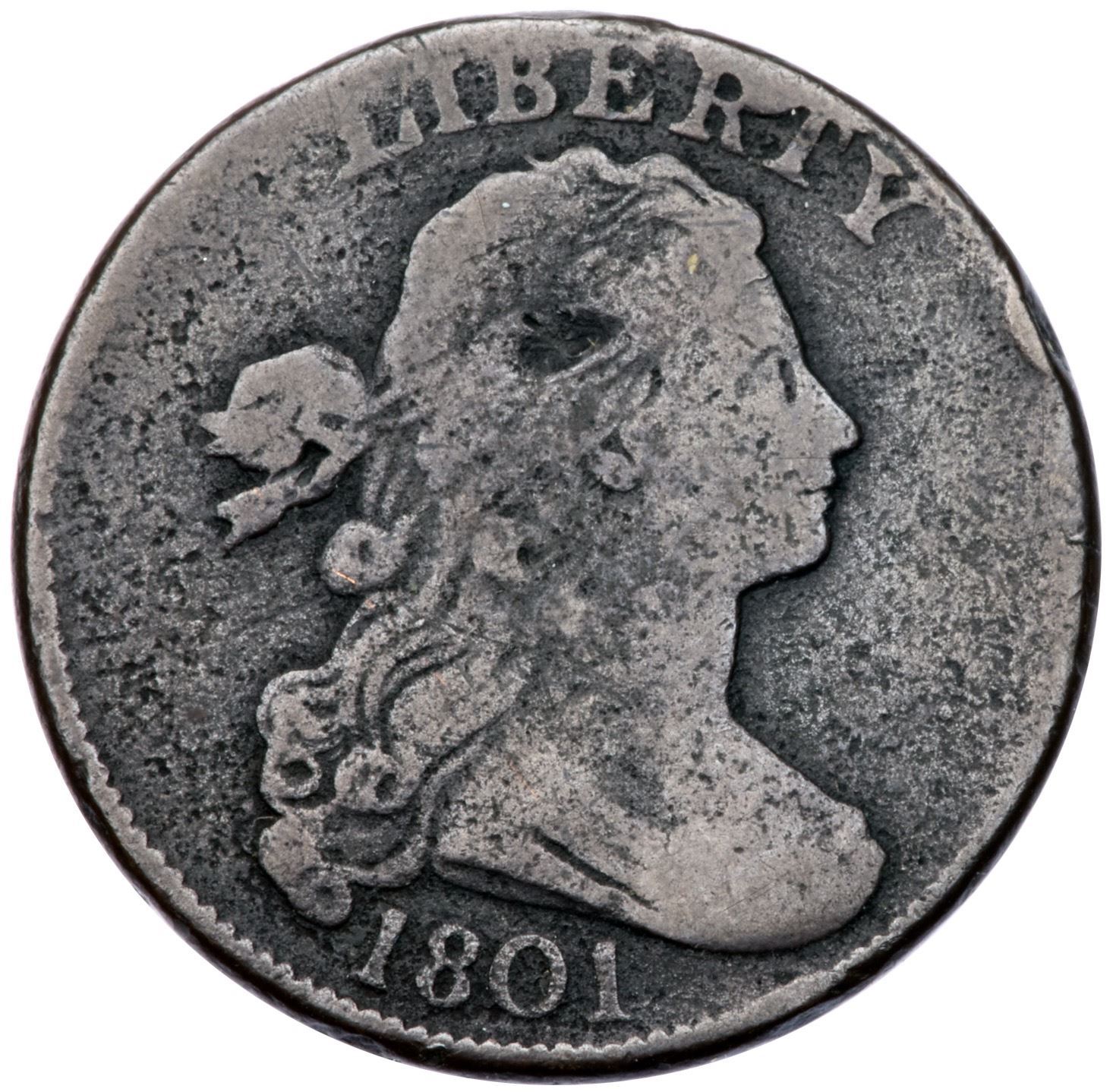 Trio of 1801 Draped Bust CentsTrio of 1801 Draped Bust Cents including; an 1801 S-219 MDS Holed FR2 net P1, an 1801 S-223 MDS Dented VG10 net G5, and an 1801 S-224 EDS Damaged G5 net FR2. All with various issues but sharper with full dates. Inspection recommended.Certificate Number: