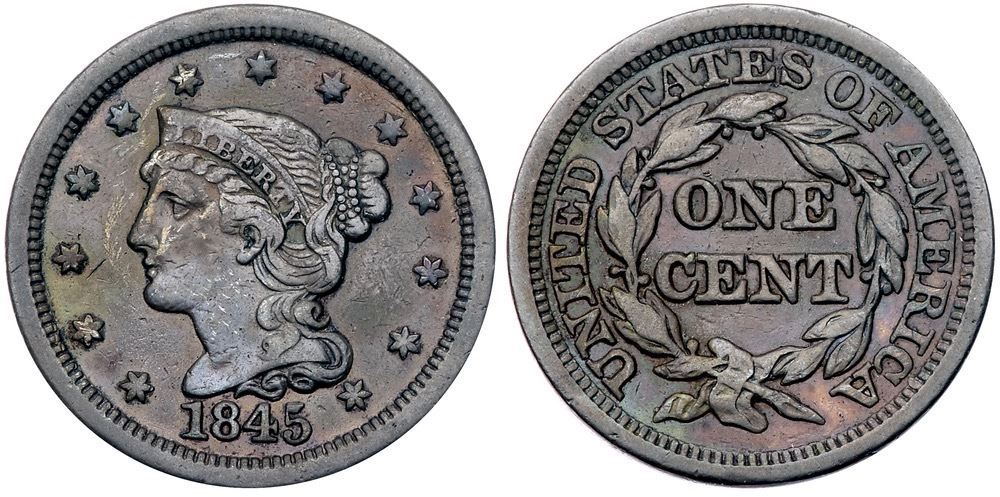 Trio of 1845 & 1846 CentsIncludes 1845 N-4 R1 Repunched 5 MDS VF25, 1845 N-15 R4 MDS VF25, and 1846 N-20 R3+ LDS VF30. The last is sharper but recolored. All are glossy brown and chocolate. Lot of 3 coins.Pedigree: From the Fred H. Borcherdt Collection