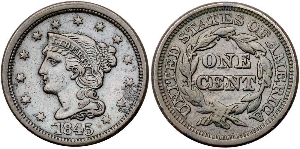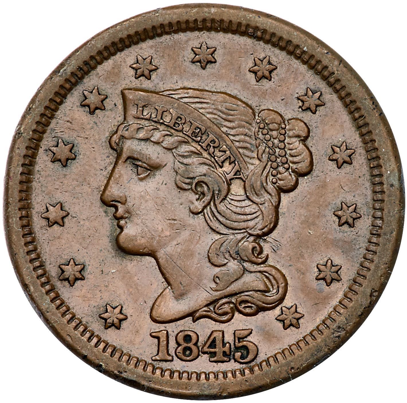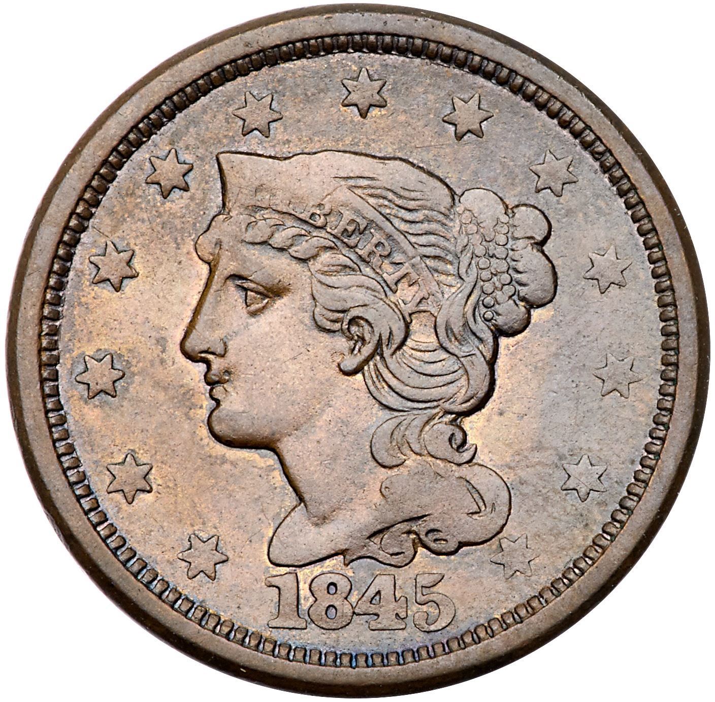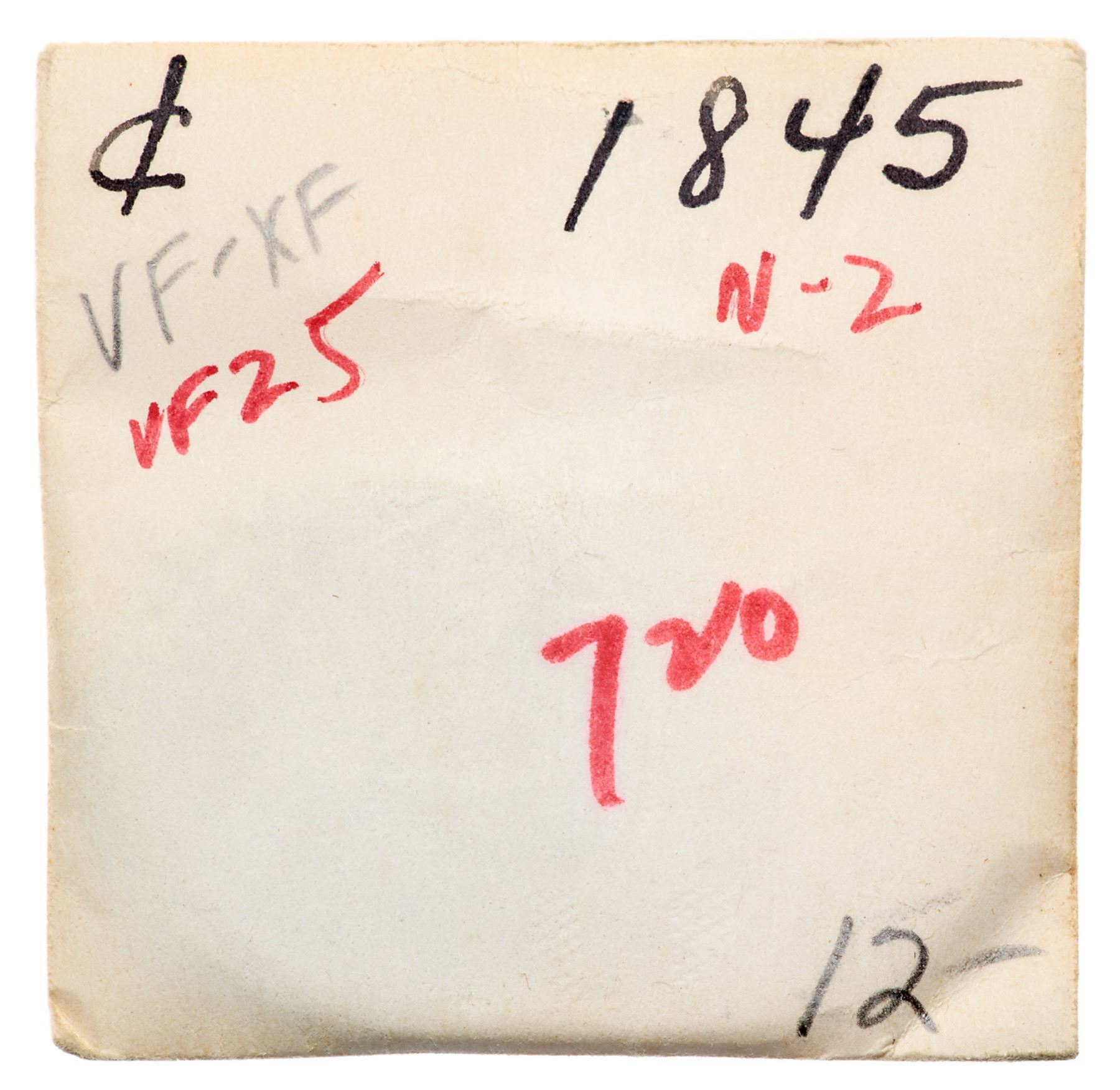 Trio of 1845 Cents grading VF25Includes N-2 R1 E-MDS, N-5 R1 EDS, and N-13 R2+ EDS. All are sharper with defects and have glossy light chocolate or darker olive brown toning. Lot of 3 coins.Pedigree: From the Fred H. Borcherdt Collection