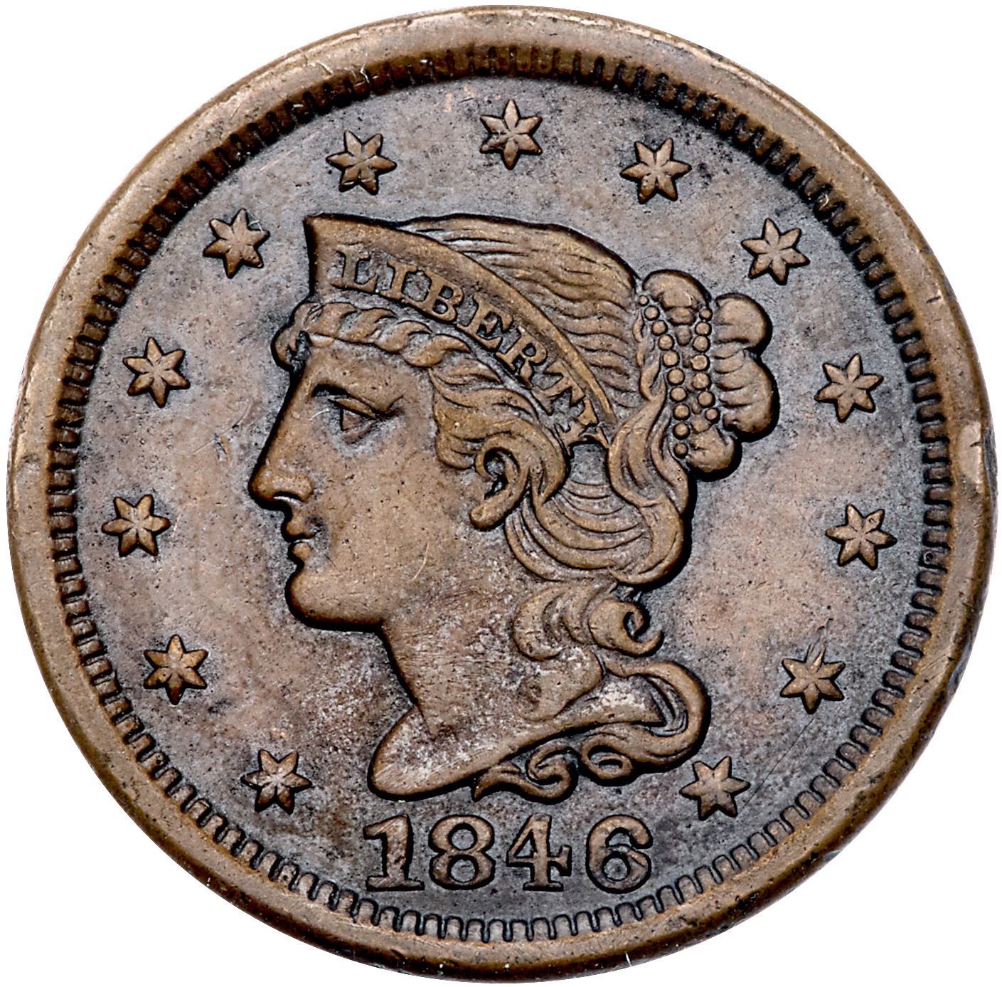 Trio of 1846 & 1847 Cents grading VF25Includes 1846 N-8 R1 LDS, 1846 N-18 R1 EDS, and 1847 N-1 R2 Repunched Date MDS. All are slightly sharper with defects and have glossy chocolate and olive brown toning. Lot of 3 coins.Pedigree: From the Fred H. Borcherdt Collection