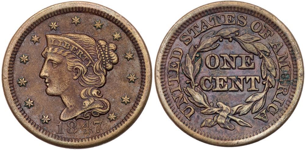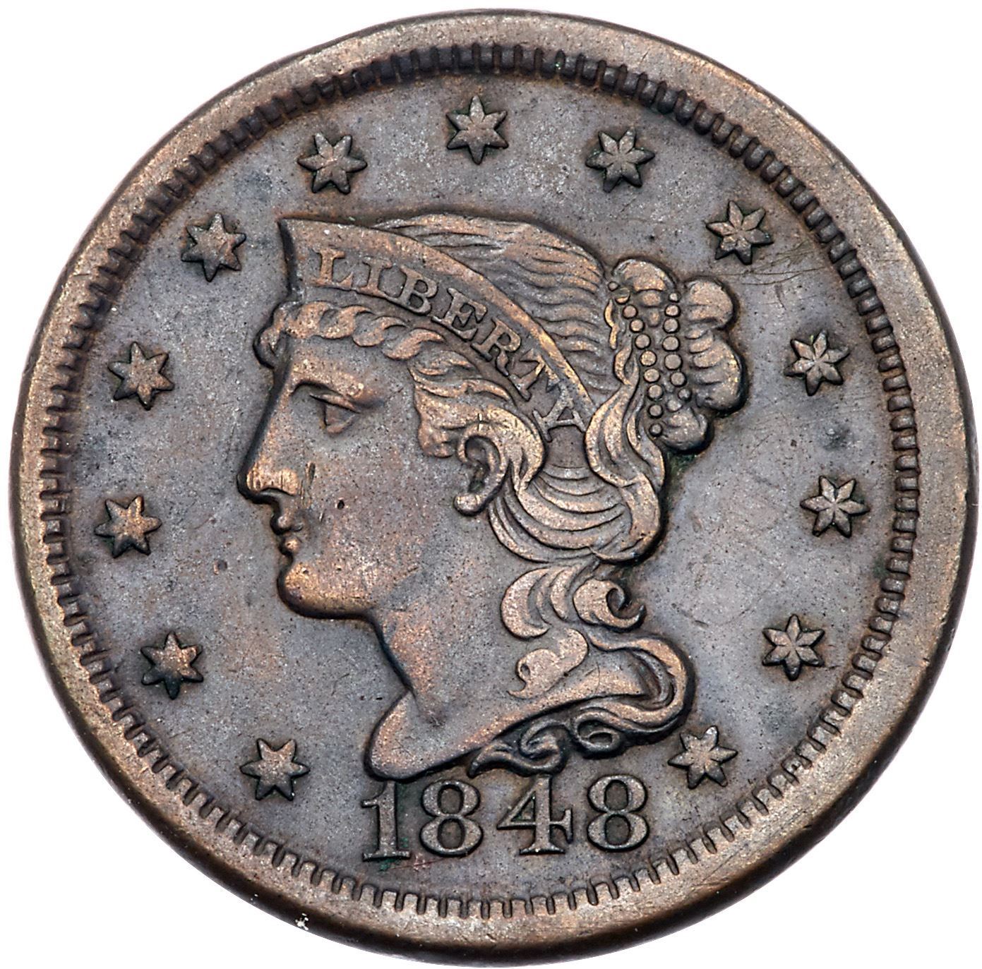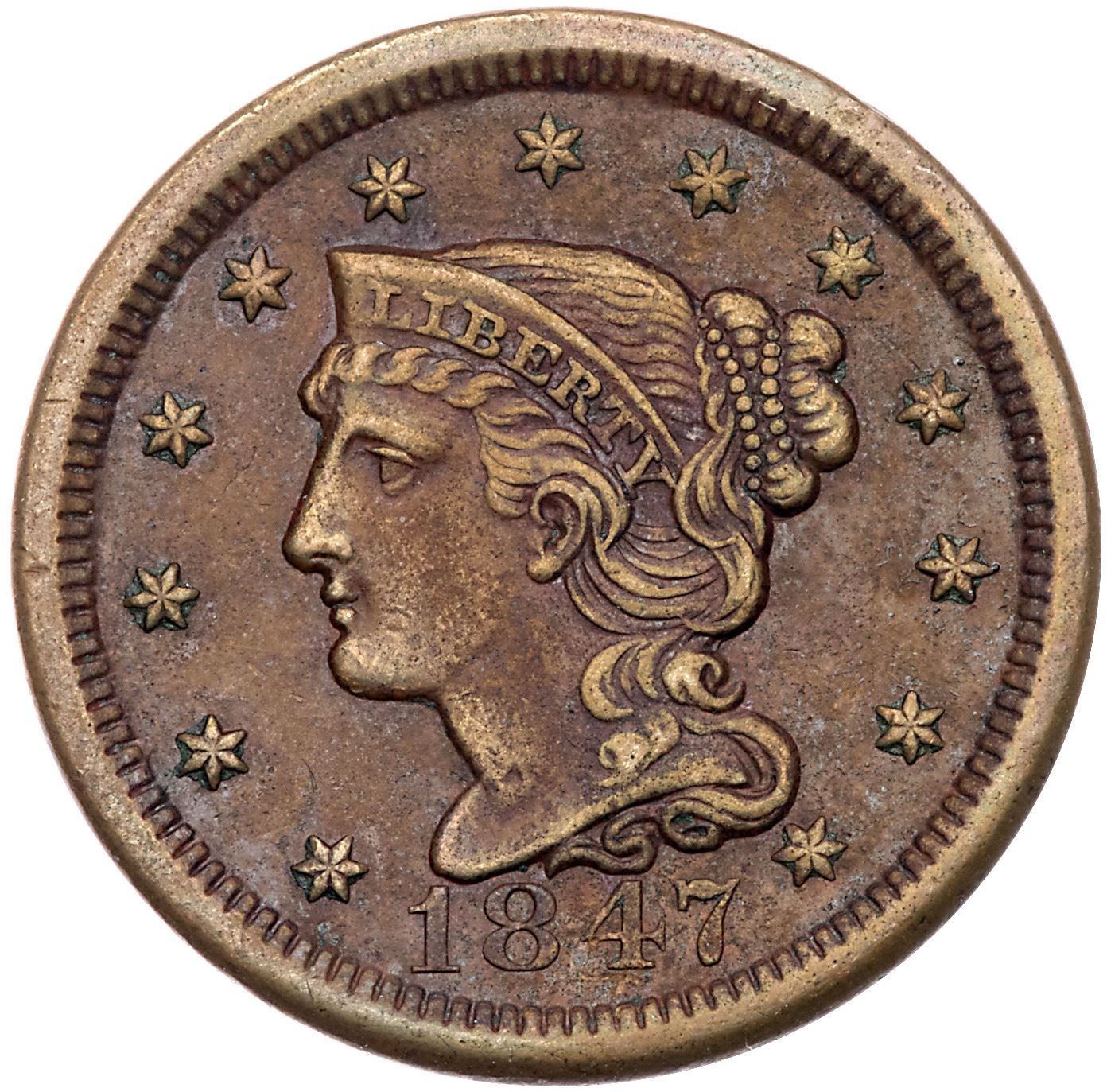 Trio of 1847 & 1848 Cents grading VF25Includes 1847 N-38 R1 M-LDS, 1847 N-41 R4- MDS, and 1848 N-7 R2 E-MDS. All are slightly sharper with defects and have mostly glossy chocolate and olive brown toning. Lot of 3 coins.Pedigree: From the Fred H. Borcherdt Collection
