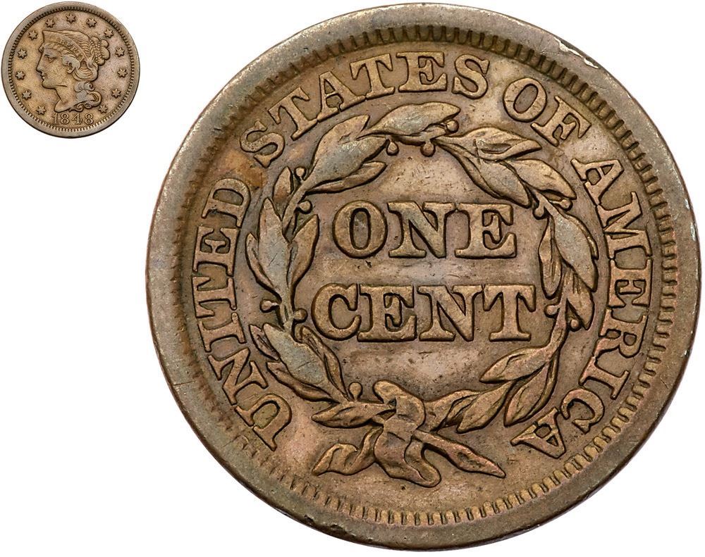 Trio of 1848 Cents, all Scarce to Rare Varieties