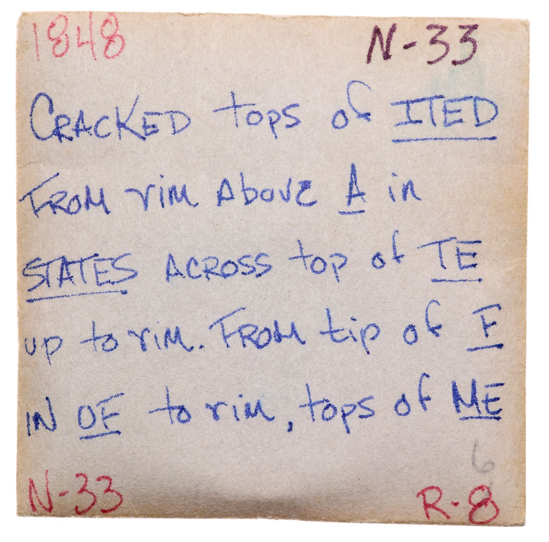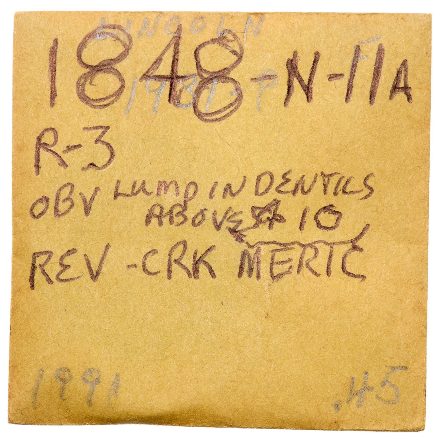 Trio of 1848 Cents, all Scarce to Rare VarietiesIncludes N-11 R5 MDS (b) VF20 net F15 for small nicks, N-26 R5 F12, and N-33 R5 MDS F12 net VG8 for rim bumps. All are glossy brown and chocolate with smooth surfaces. Lot of 3 coins.Pedigree: From the Fred H. Borcherdt Collection