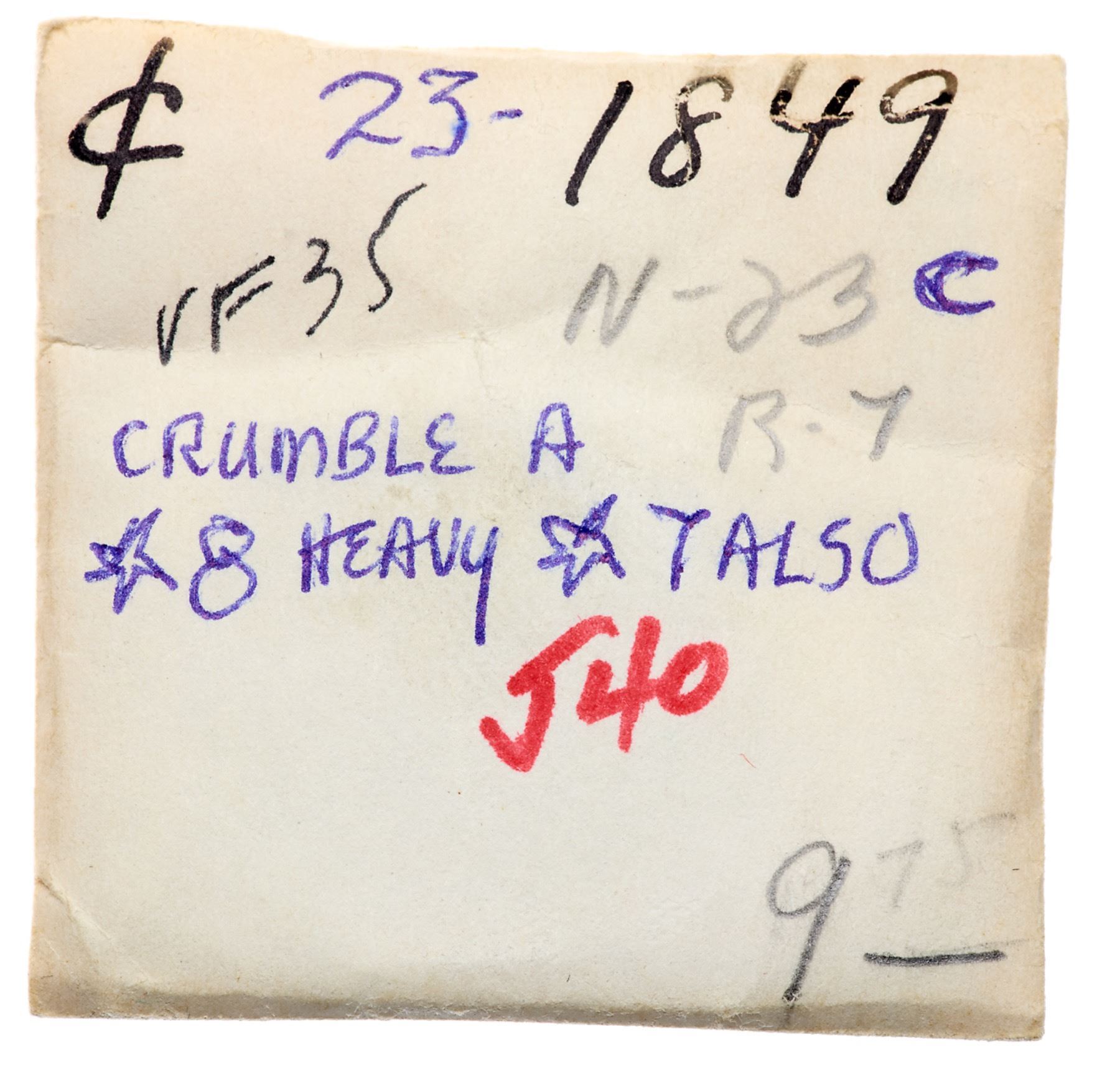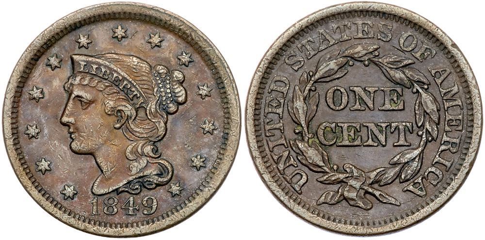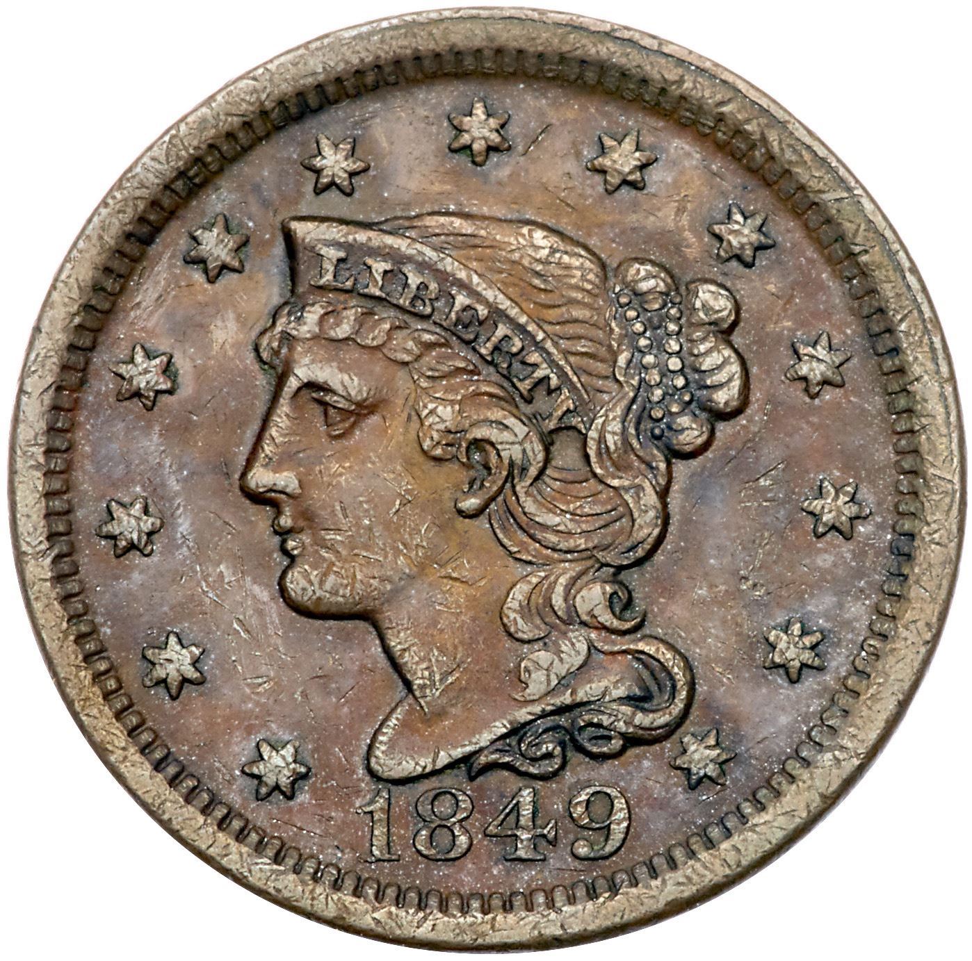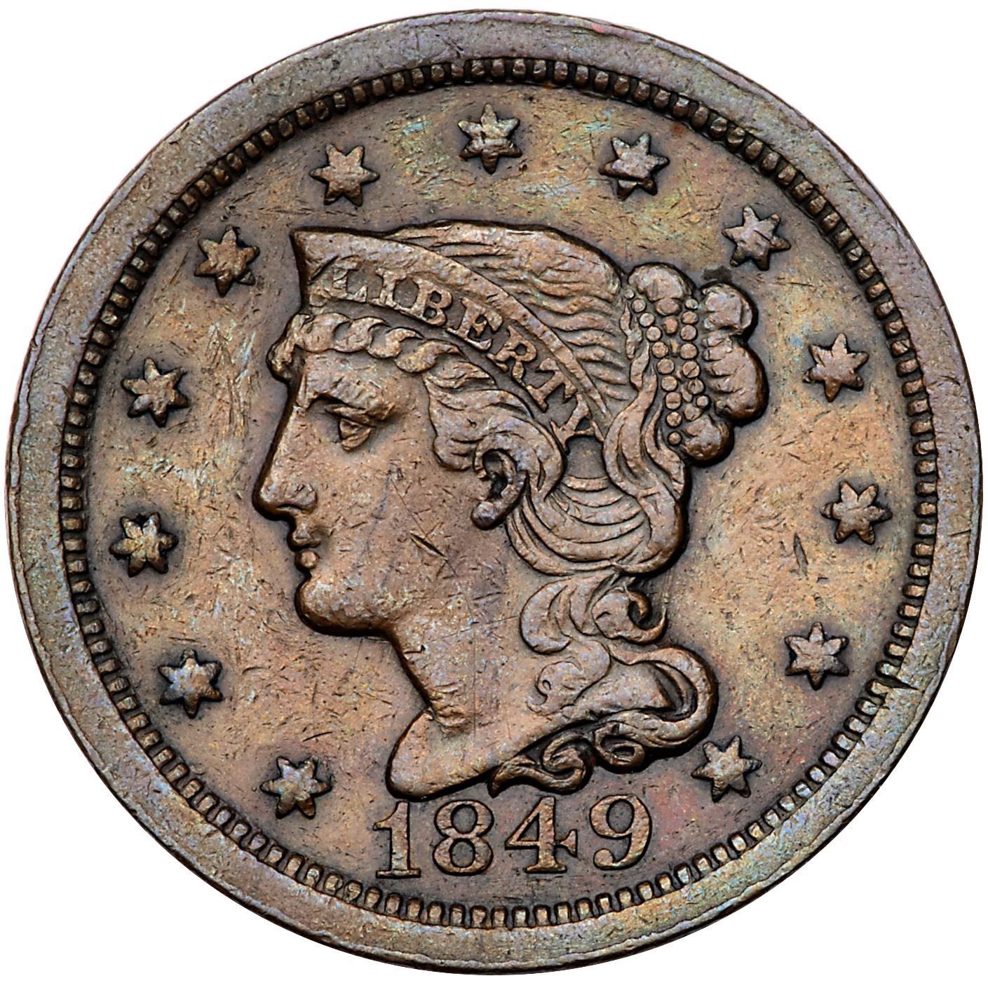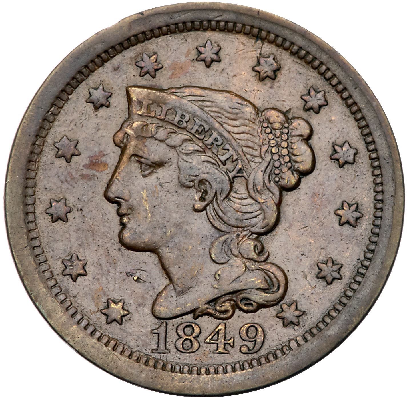 Trio of 1849 Cents grading VF25Includes N-8 R2 Overdate 9 over 8 (or Repunched 9) M-LDS, N-23 R3 M-LDS, and N-29 R2 E-MDS. All are slightly sharper with defects and have mostly glossy chocolate and olive brown toning. Lot of 3 coins.Pedigree: From the Fred H. Borcherdt Collection. The second 1849 N-2 is ex Stack's 11/18/1950:807-Willard C. Blaisdell 9/1976-R. E. "Ted" Naftzger, Jr. (includes the Naftzger collection envelope)