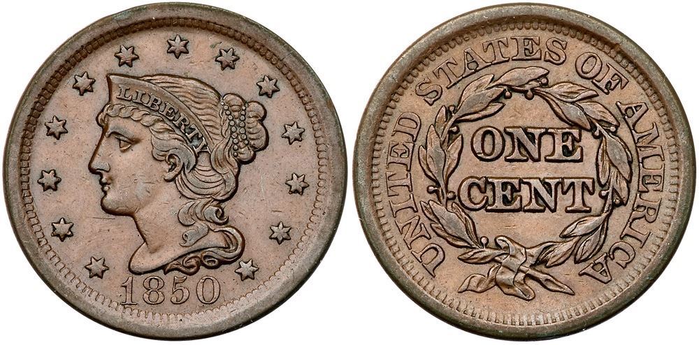 Trio of 1850 & 1851 Cents grading VF30 to VF35Includes 1850 N-15 R2 EDS (a), 1851 N-7 R1 MDS (a), and 1851 N-12 R1 EDS (a). All are slightly sharper with minor defects but all have smooth surfaces with glossy light olive and brown toning. Lot of 3 coins.Pedigree: From the Fred H. Borcherdt Collection