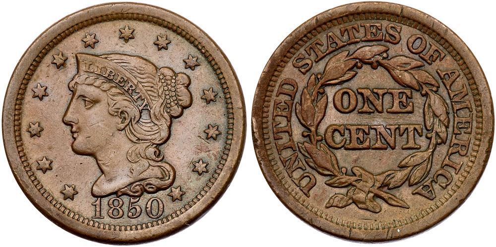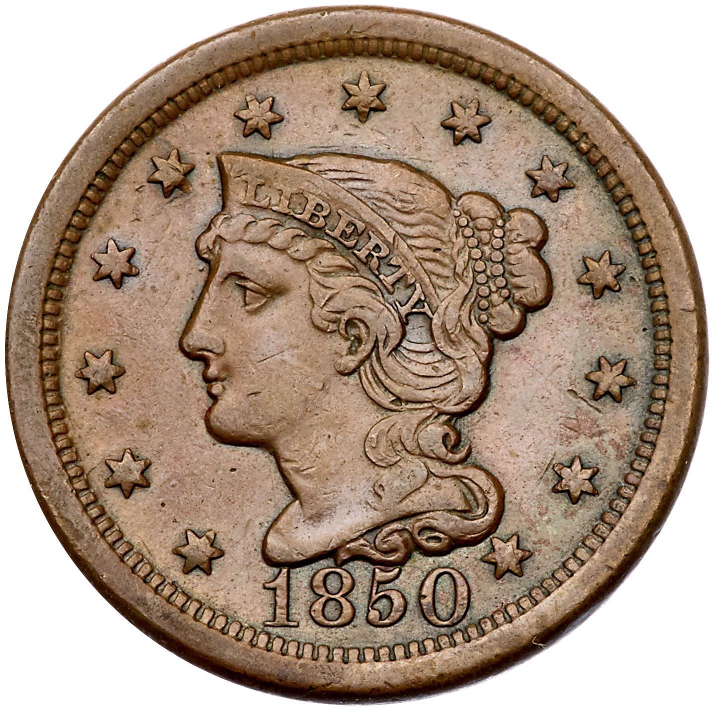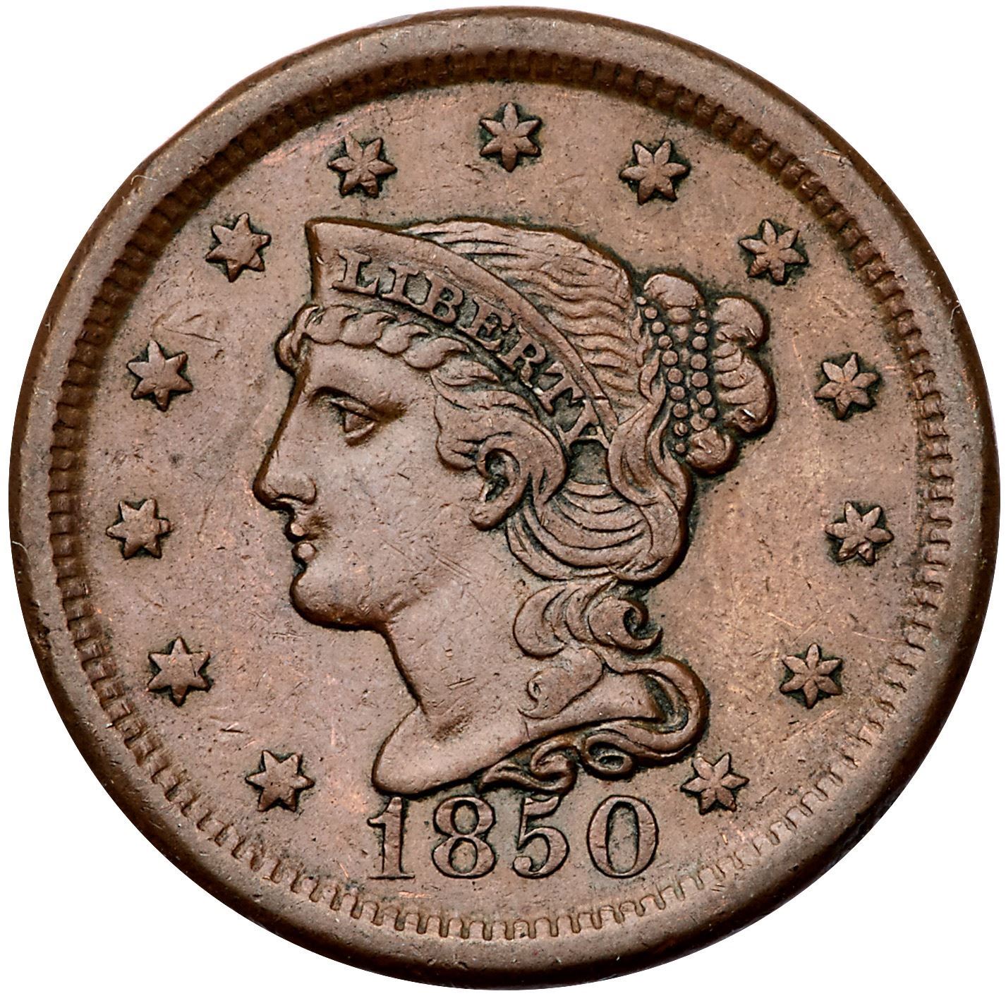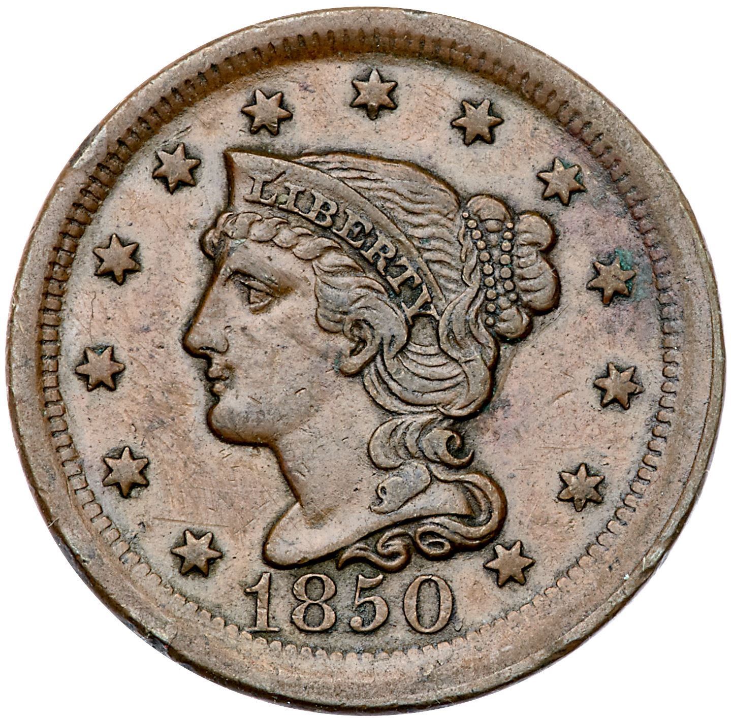 Trio of 1850 Cents grading VF25Includes N-2 R1 Repunched 1 M-LDS, N-3 R1 MDS, and N-15 R2 E-MDS. All are slightly sharper with minor defects and have attractive glossy brown and chocolate toning. Lot of 3 coins.Pedigree: From the Fred H. Borcherdt Collection