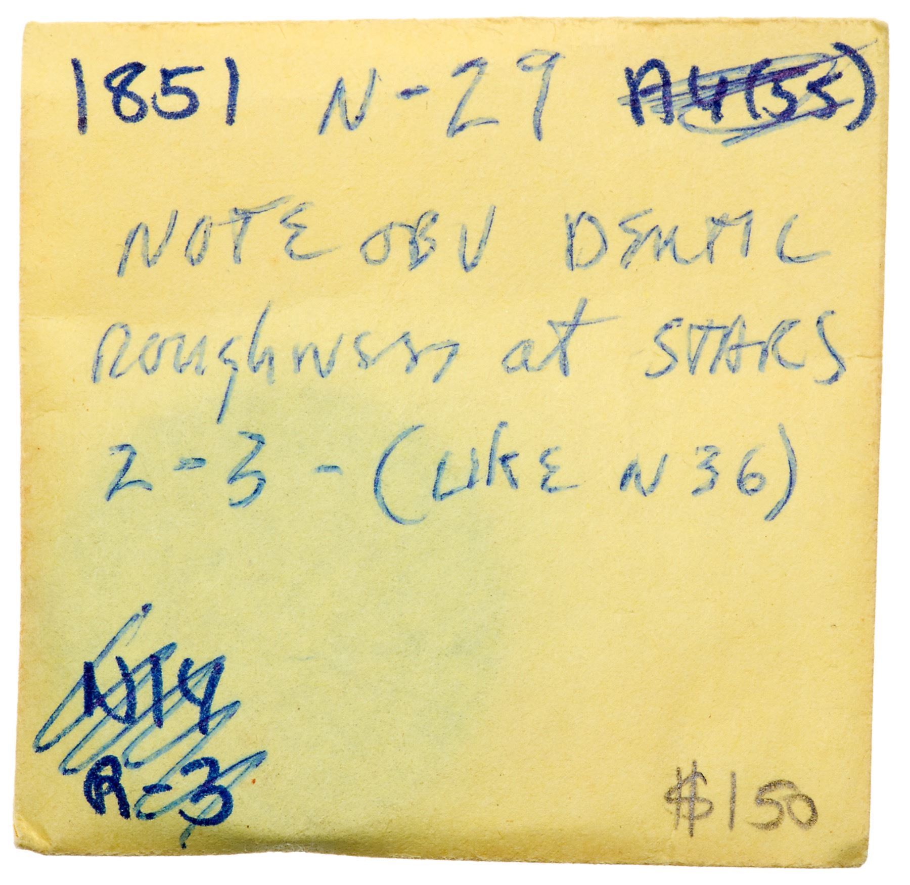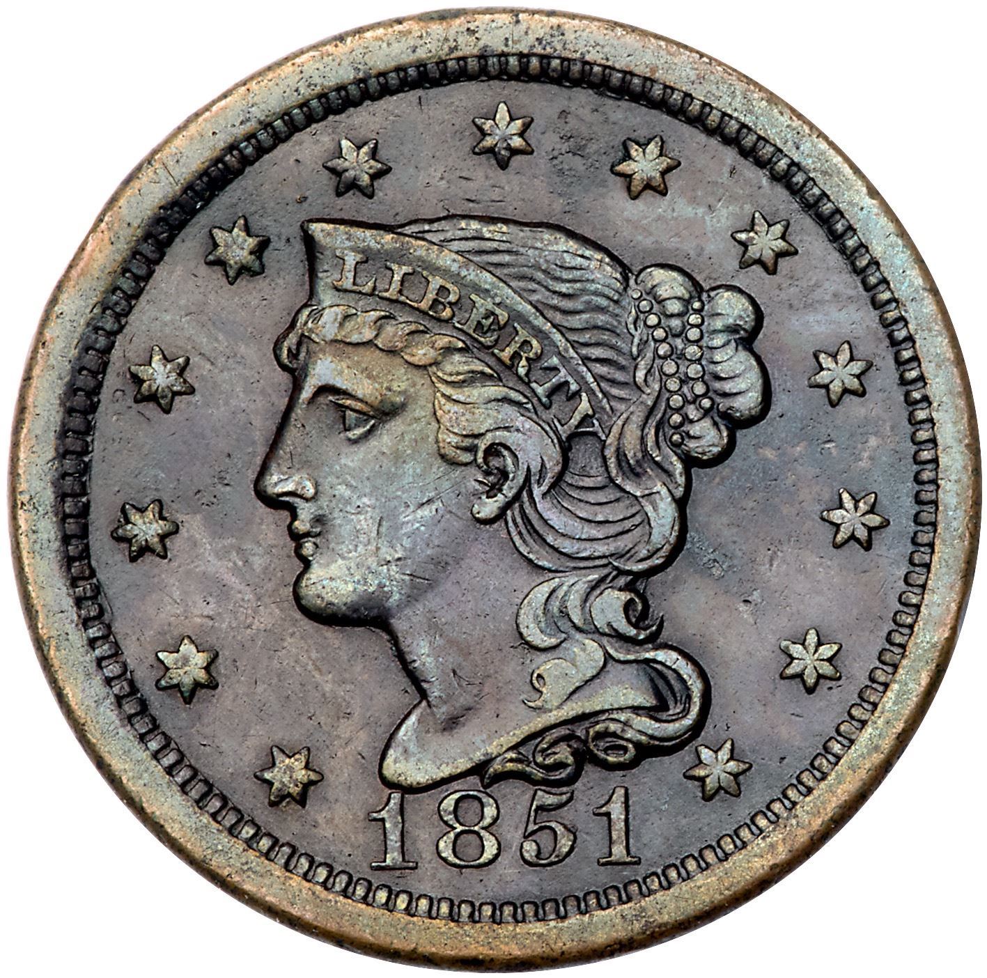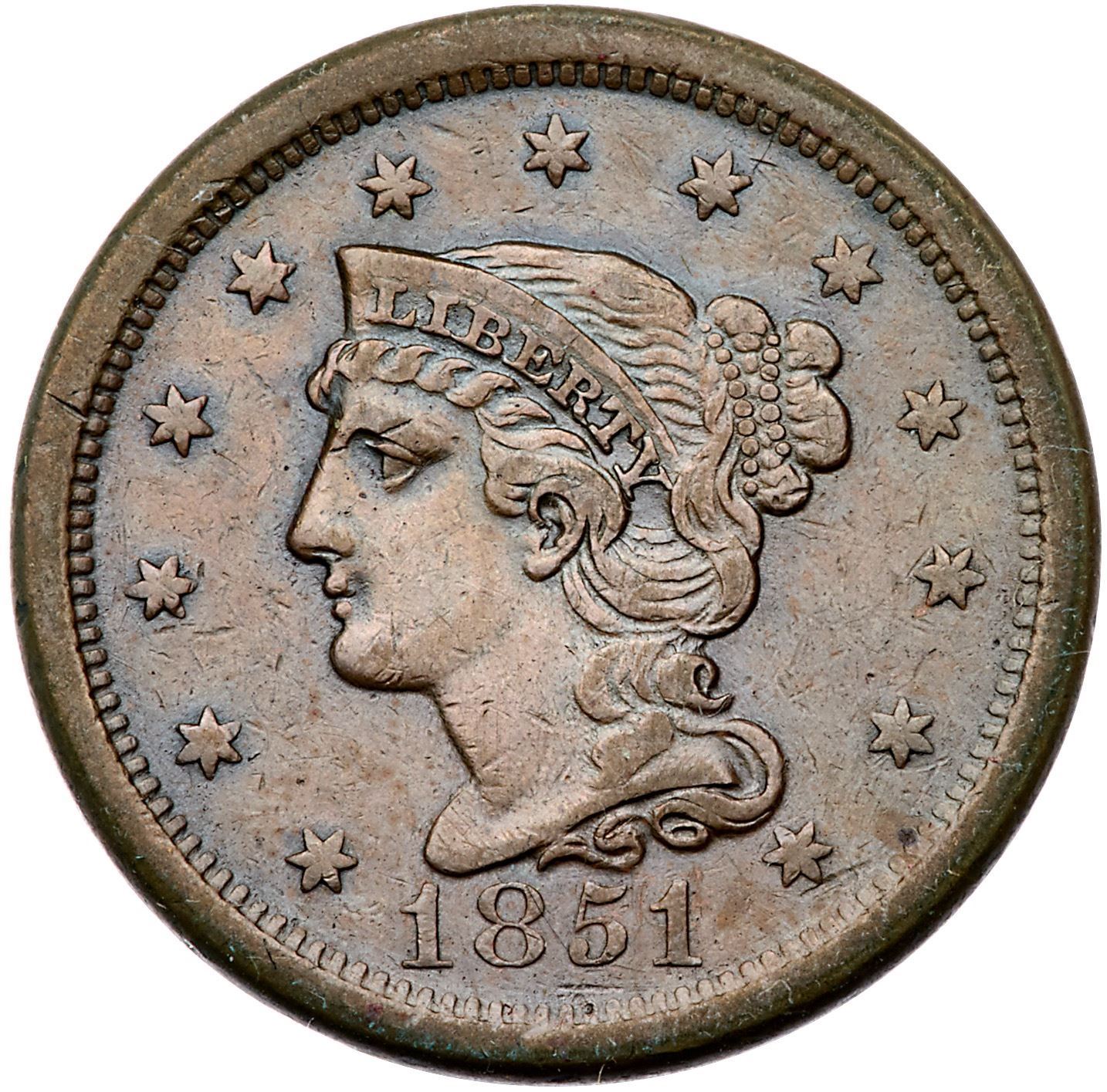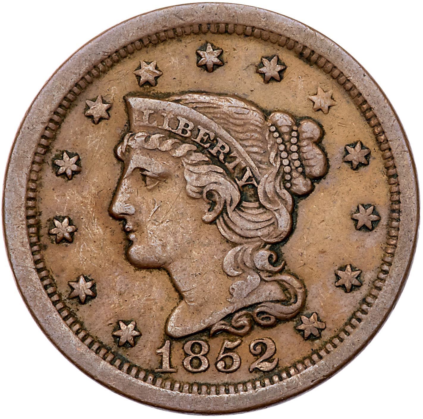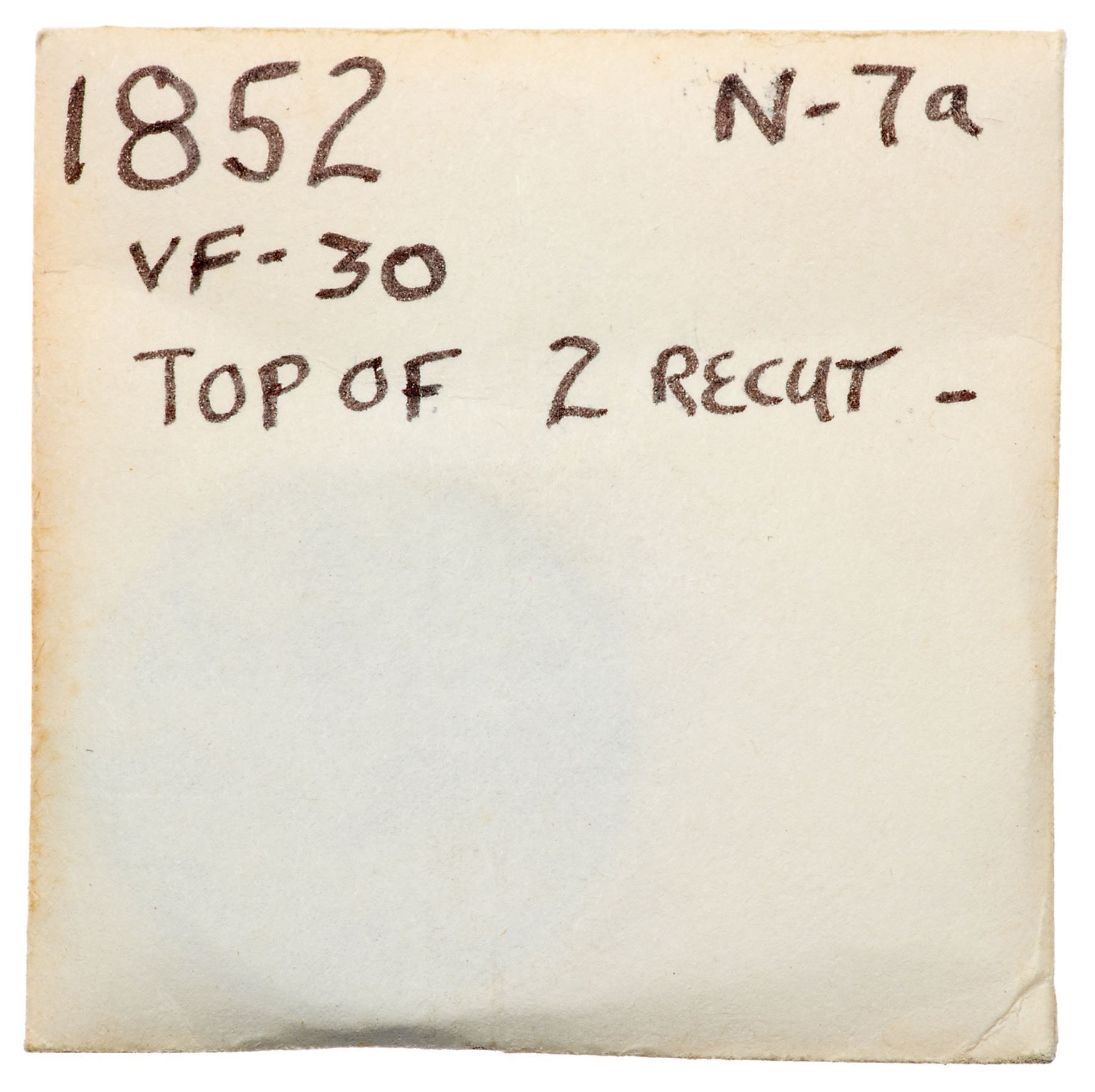 Trio of 1851 & 1852 Cents grading VF25Includes 1851 N-29 R2 EDS, 1851 N-38 R1 LDS, and 1852 N-7 R1 Repunched Date E-MDS. A couple are slightly sharper with minor defects but all have glossy chocolate or olive brown toning. Lot of 3 coins.Pedigree: From the Fred H. Borcherdt Collection