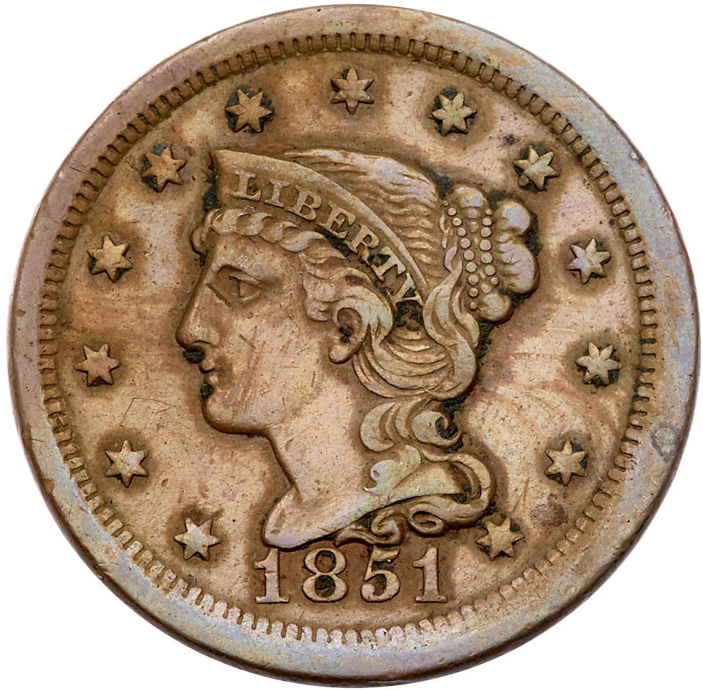 Trio of 1851 Cents grading VF25Includes N-6 R1 Both 1's Repunched MDS, N-10 R1 EDS, and N-12 R1 E-MDS. All are attractive glossy brown and chocolate. Lot of 3 coins.Pedigree: From the Fred H. Borcherdt Collection