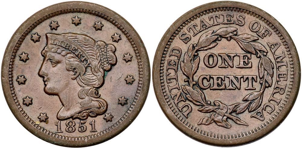 Trio of 1851 Cents grading VF25Includes N-6 R1 Both 1's Repunched MDS, N-12 R1 LDS (old N-11), and N-16 R3 First 1 Repunched EDS+. All are attractive glossy brown and chocolate. Lot of 3 coins.Pedigree: From the Fred H. Borcherdt Collection