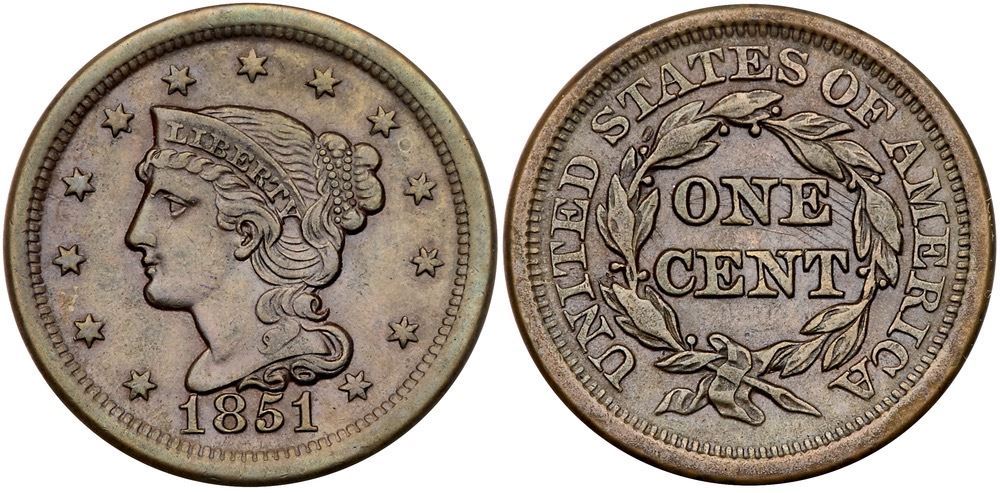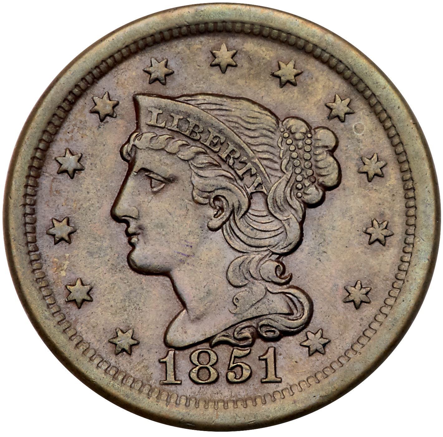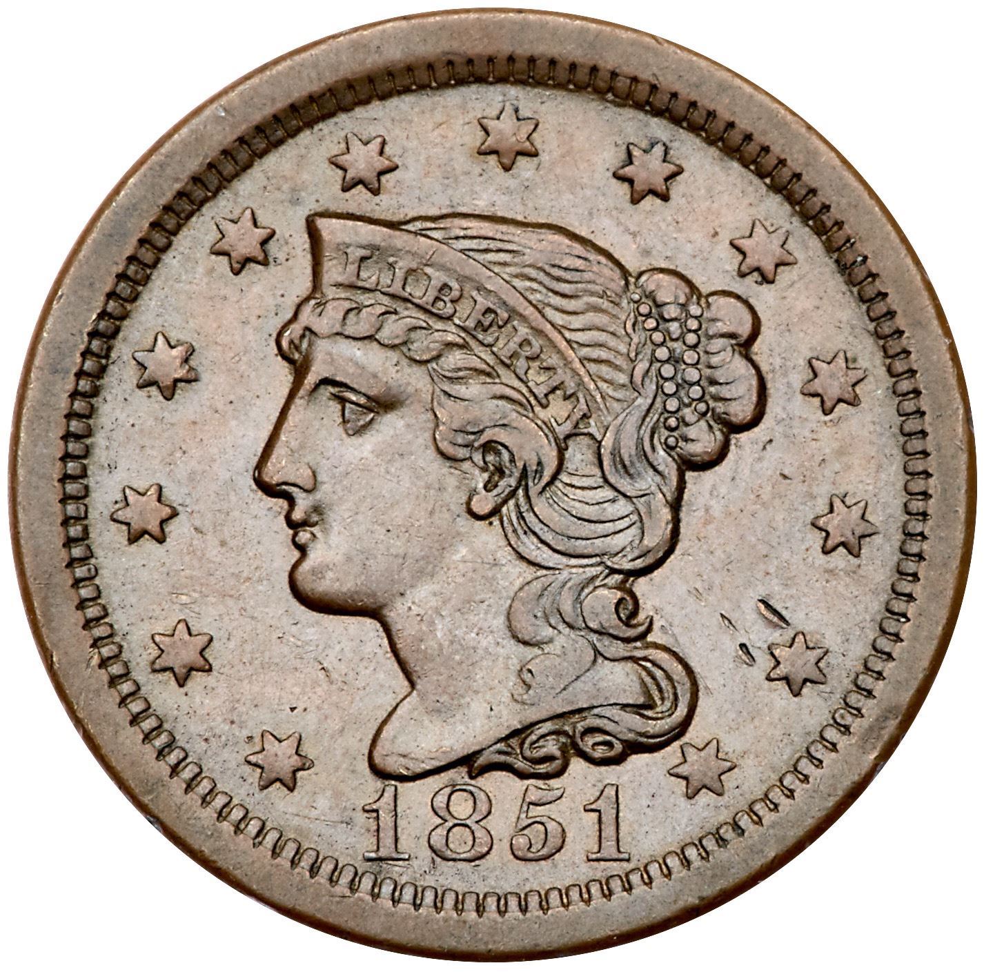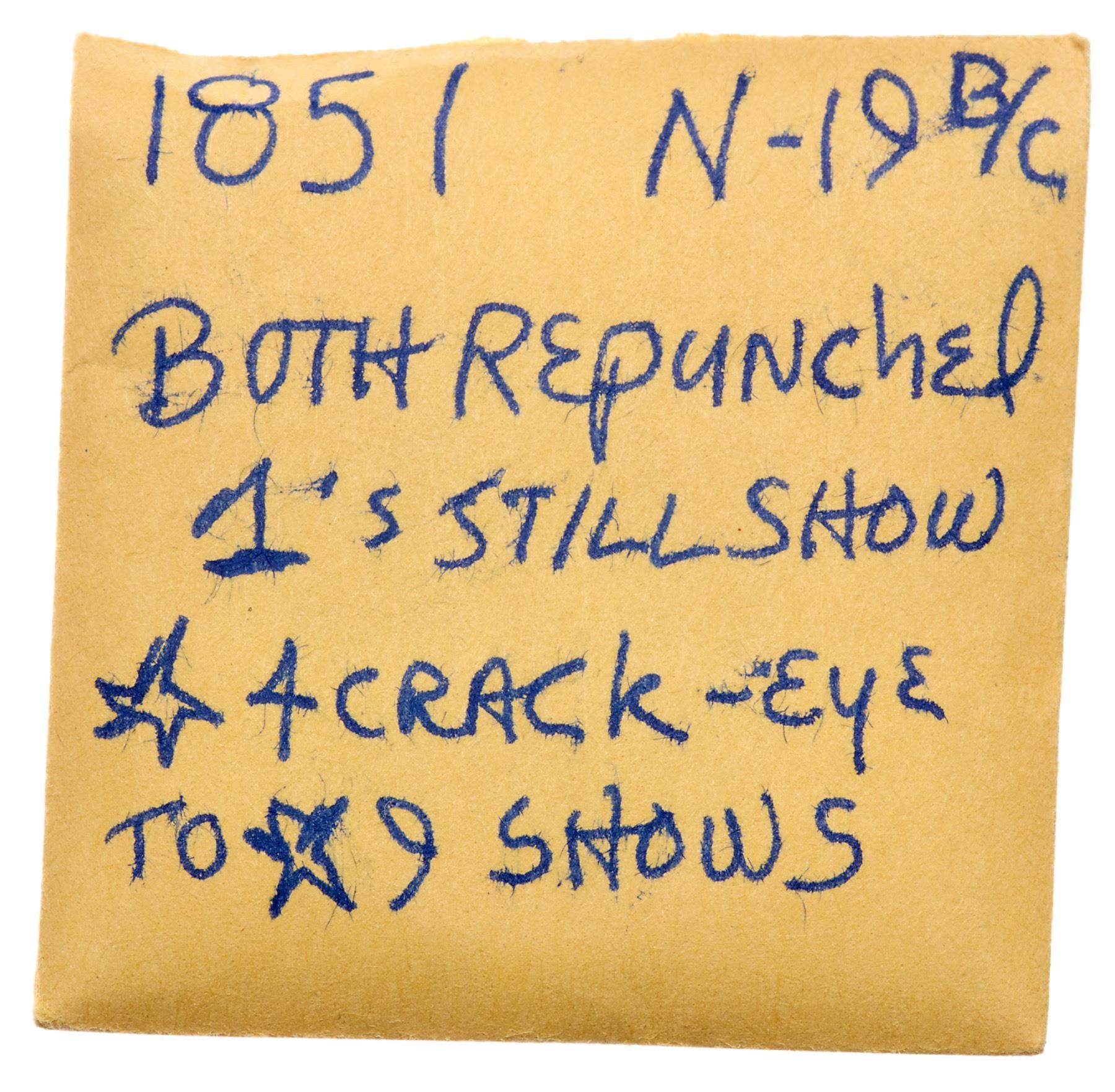 Trio of 1851 Cents grading VF30 to VF35Includes N-19 R3 Second 1 Repunched MDS (c), N-31 R3+ LDS (c), and N-41 R4 EDS+ (a). All are smooth with minor marks and attractive glossy brown and chocolate toning. Lot of 3 coinsPedigree: From the Fred H. Borcherdt Collection