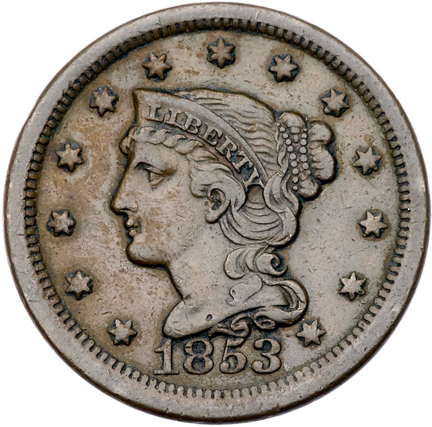 Trio of 1853 & 1854 Cents grading VF25Includes 1853 N-25 R1 Repunched 1 E-MDS, 1854 N-4 R3 Repunched 4 E-MDS, and N-6 R1 M-LDS. A couple are slightly sharper with minor marks but all are glossy brown and chocolate. Lot of 3 coins.Pedigree: From the Fred H. Borcherdt Collection