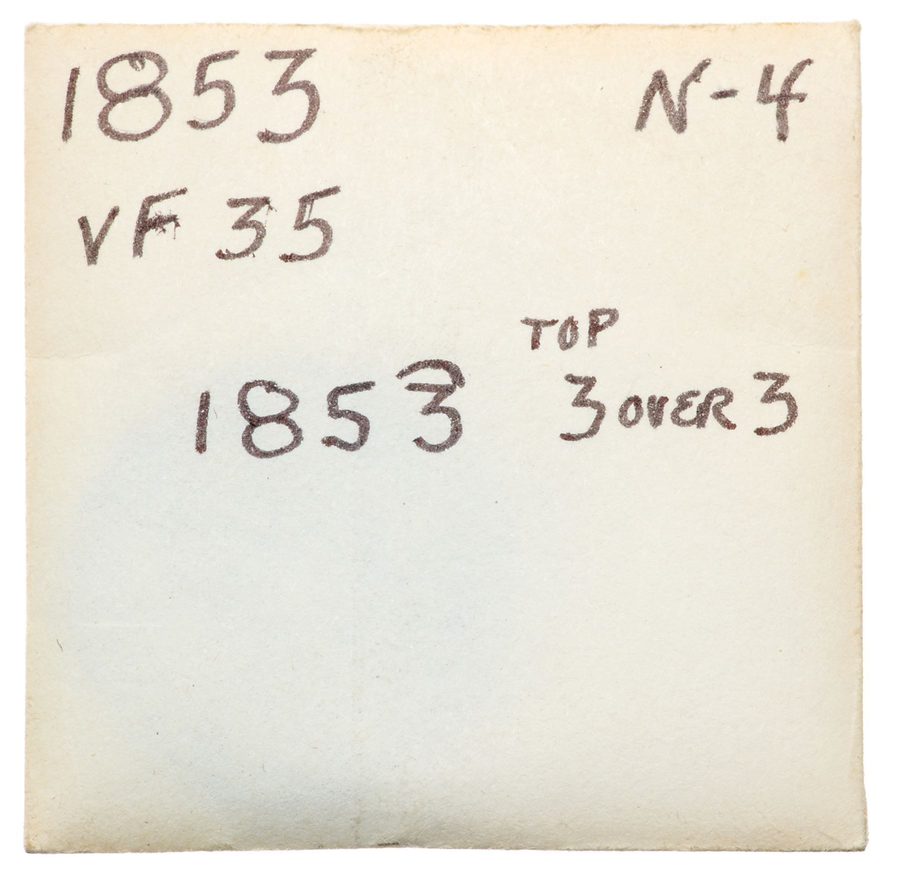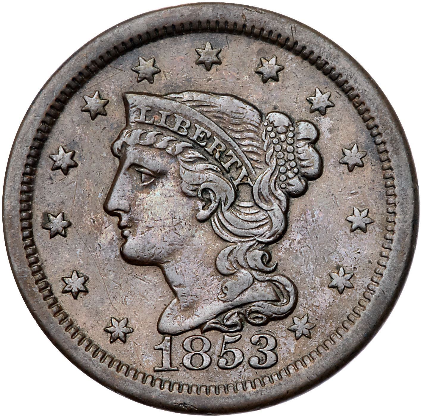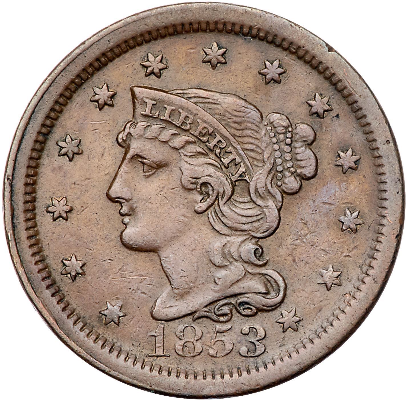 Trio of 1853 Cents grading VF25Includes N-4 R3+ Repunched 3 MDS, N-5 R2- LDS, and N-10 R1 Repunched 18 LDS. All are slightly sharper with minor defects and attractive glossy brown and chocolate toning. Lot of 3 coins.Pedigree: From the Fred H. Borcherdt Collection