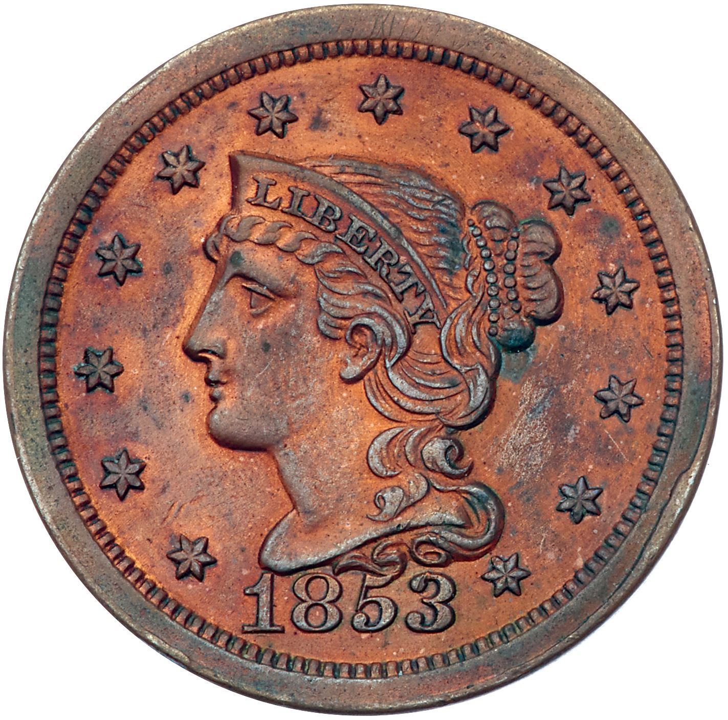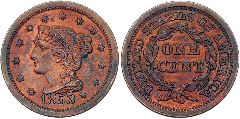 Trio of 1853 Cents grading VF25Includes N-14 R2+ Repunched 1 MDS, N-16 R1+ EDS, and N-17 R2 Repunched 1 EDS. The first is much sharper but whizzed; the other two are glossy brown and olive. Lot of 3 coins.Pedigree: From the Fred H. Borcherdt Collection