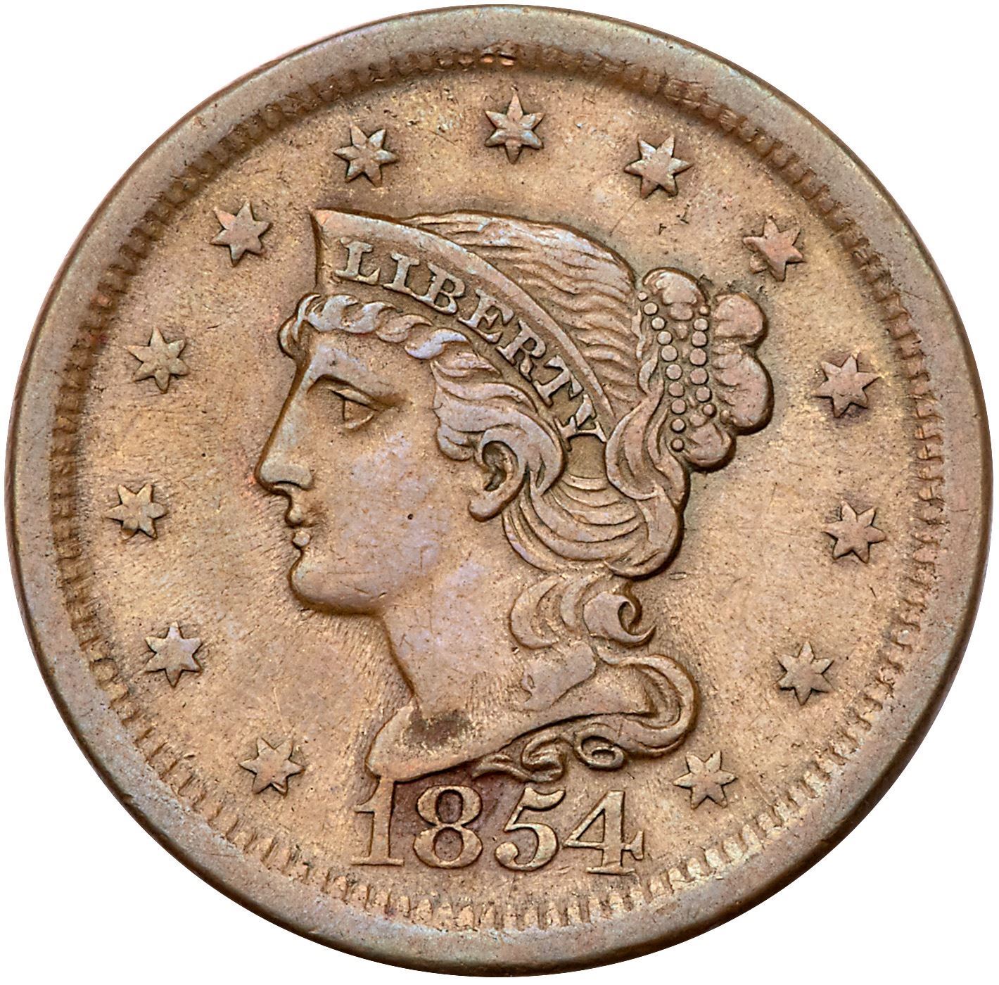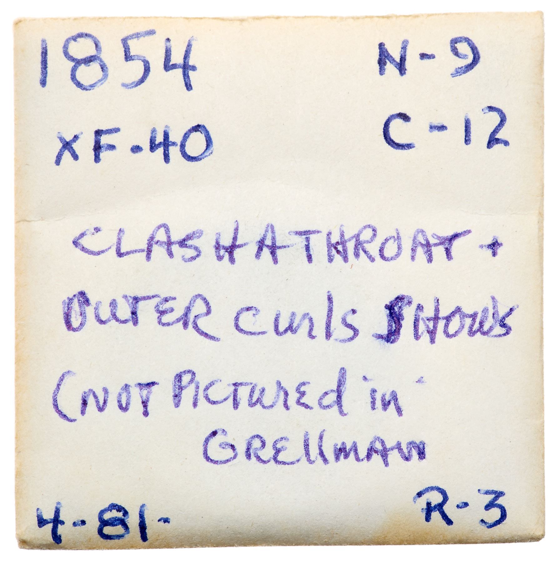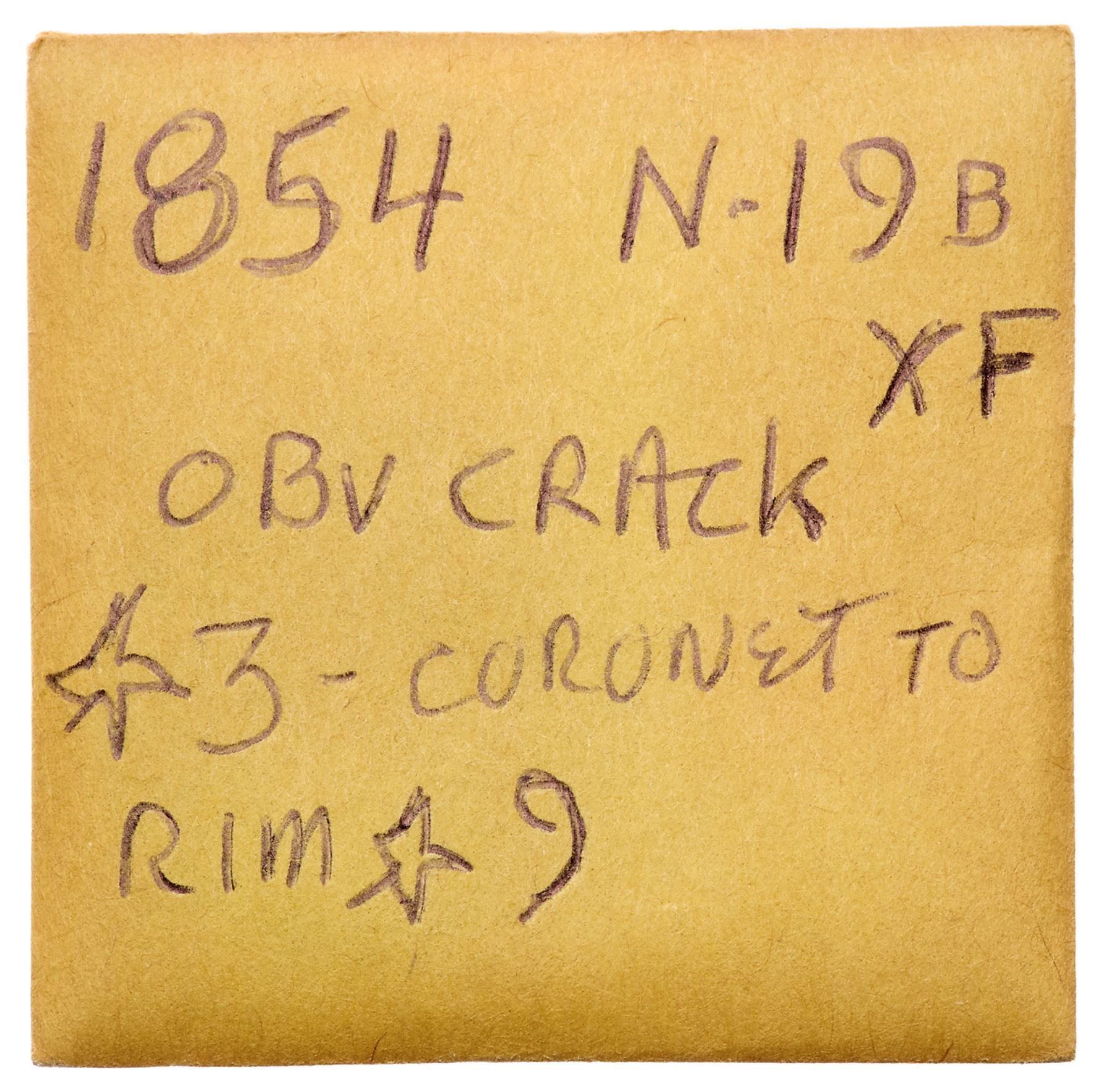 Trio of 1854 Cents grading VF30 to VF35Includes N-7 R2+ Repunched 1 & 4 LDS (b), N-9 R2 "Dartboard Obverse" MDS (b), and N-19 R3 MDS (b). A couple have trivial marks but all are attractive glossy medium brown and light chocolate. Lot of 3 coins.Pedigree: From the Fred H. Borcherdt Collection