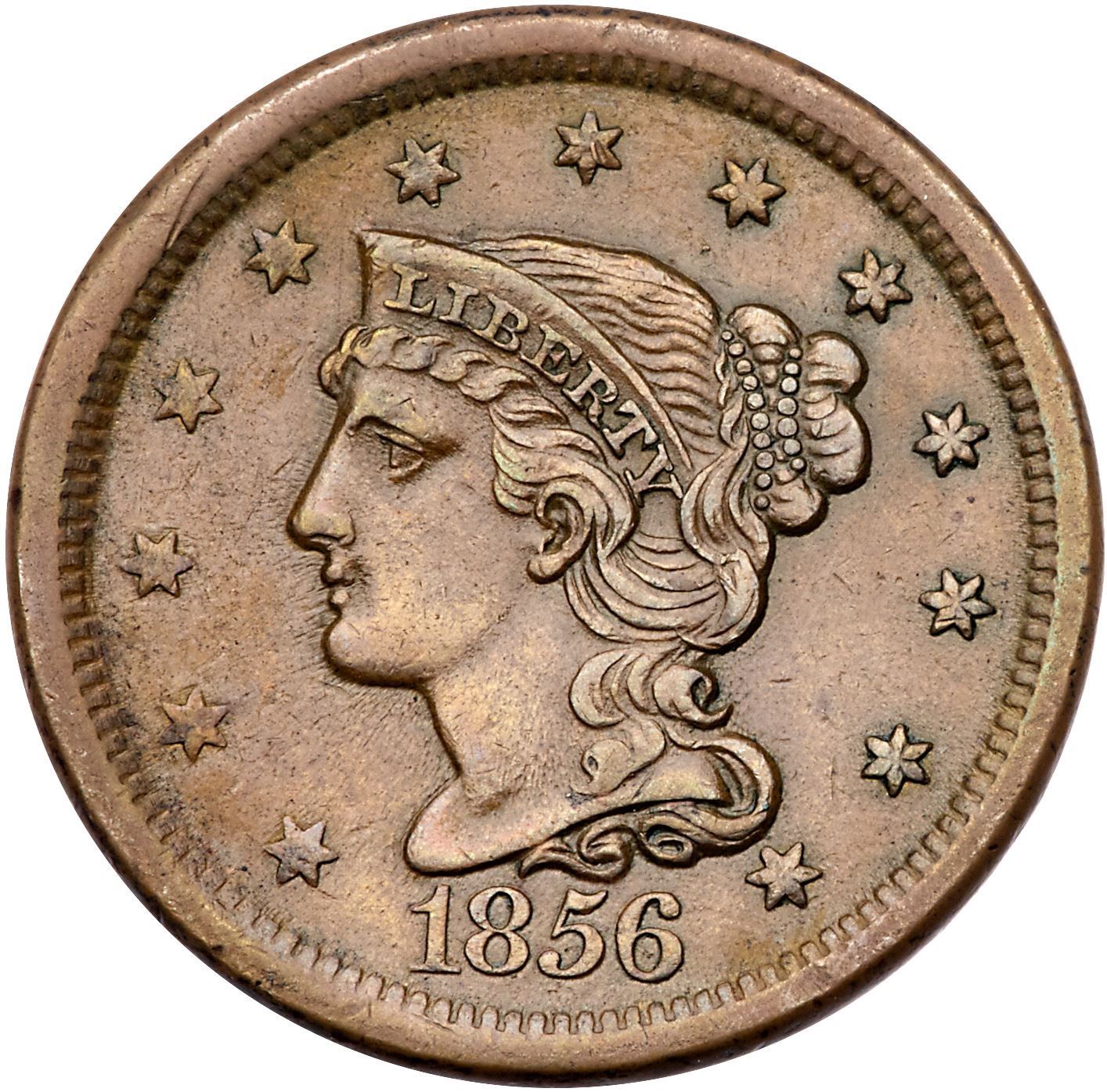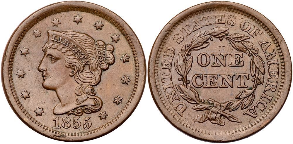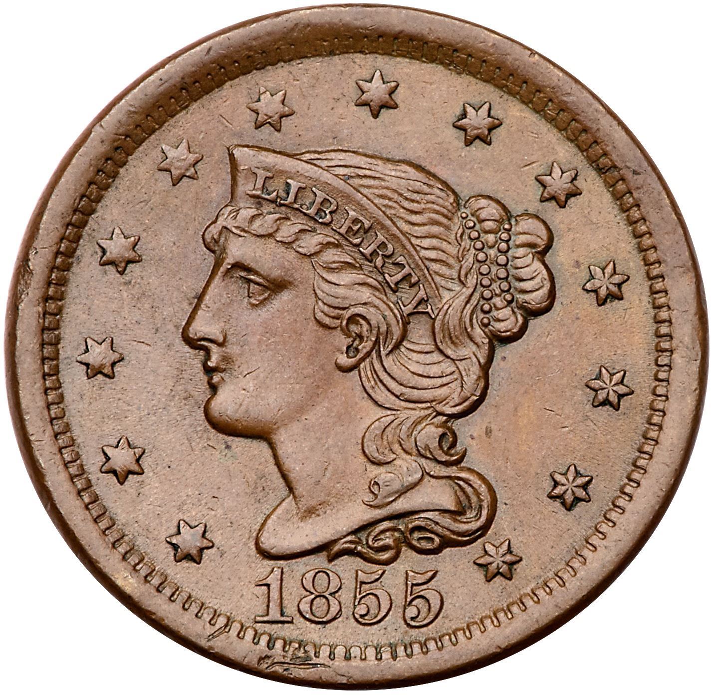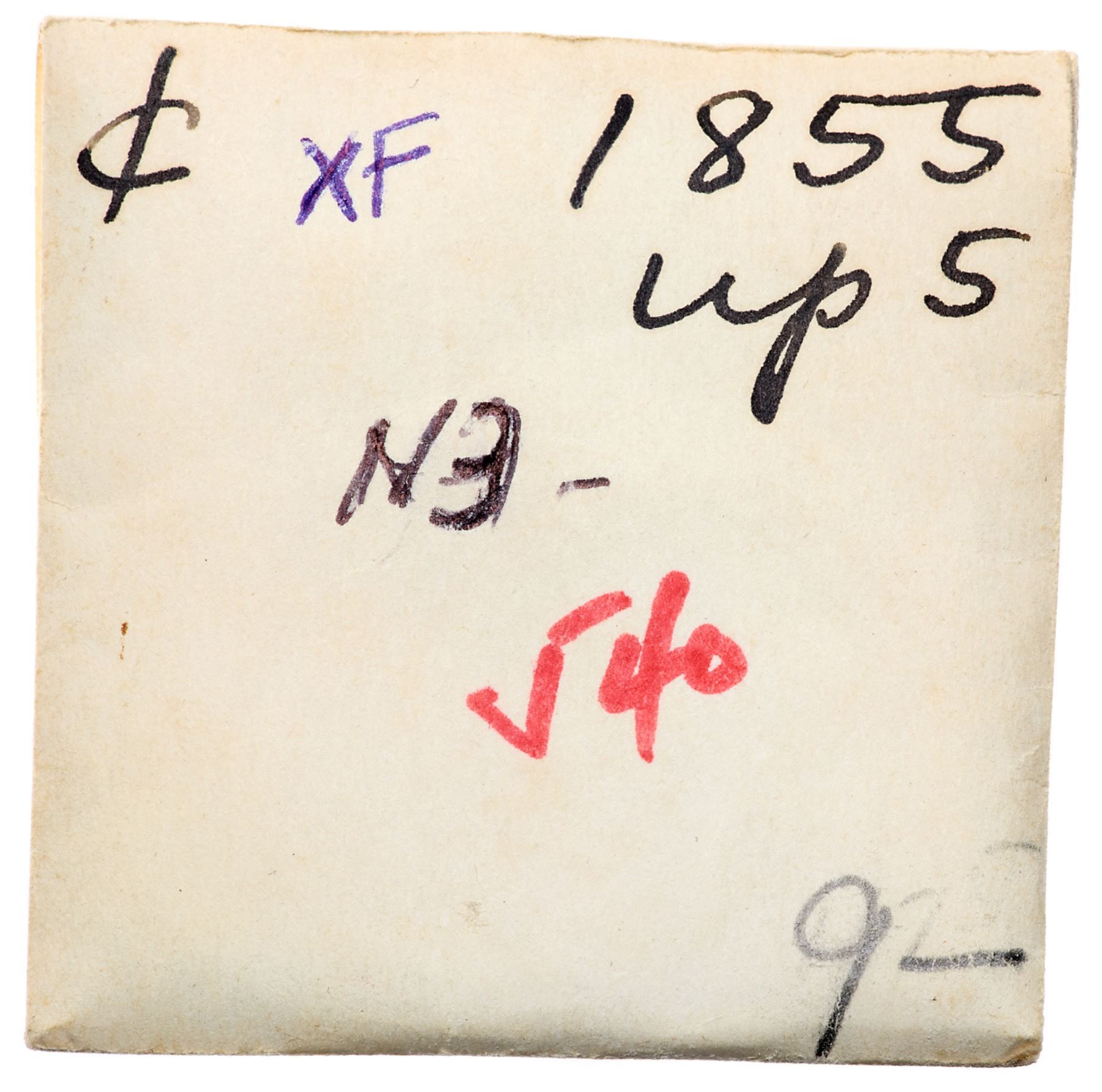 Trio of 1855 & 1856 Cents grading EF40Includes 1855 N-3 R1 Upright 55 MDS (b), 1856 N-2 R1 Italic 5 MDS (c), and 1856 N-21 R1+ Italic 5 M-LDS (b-). A couple are slightly sharper with minor marks but all are attractive glossy brown and light chocolate. Lot of 3 coins.Pedigree: From the Fred H. Borcherdt Collection