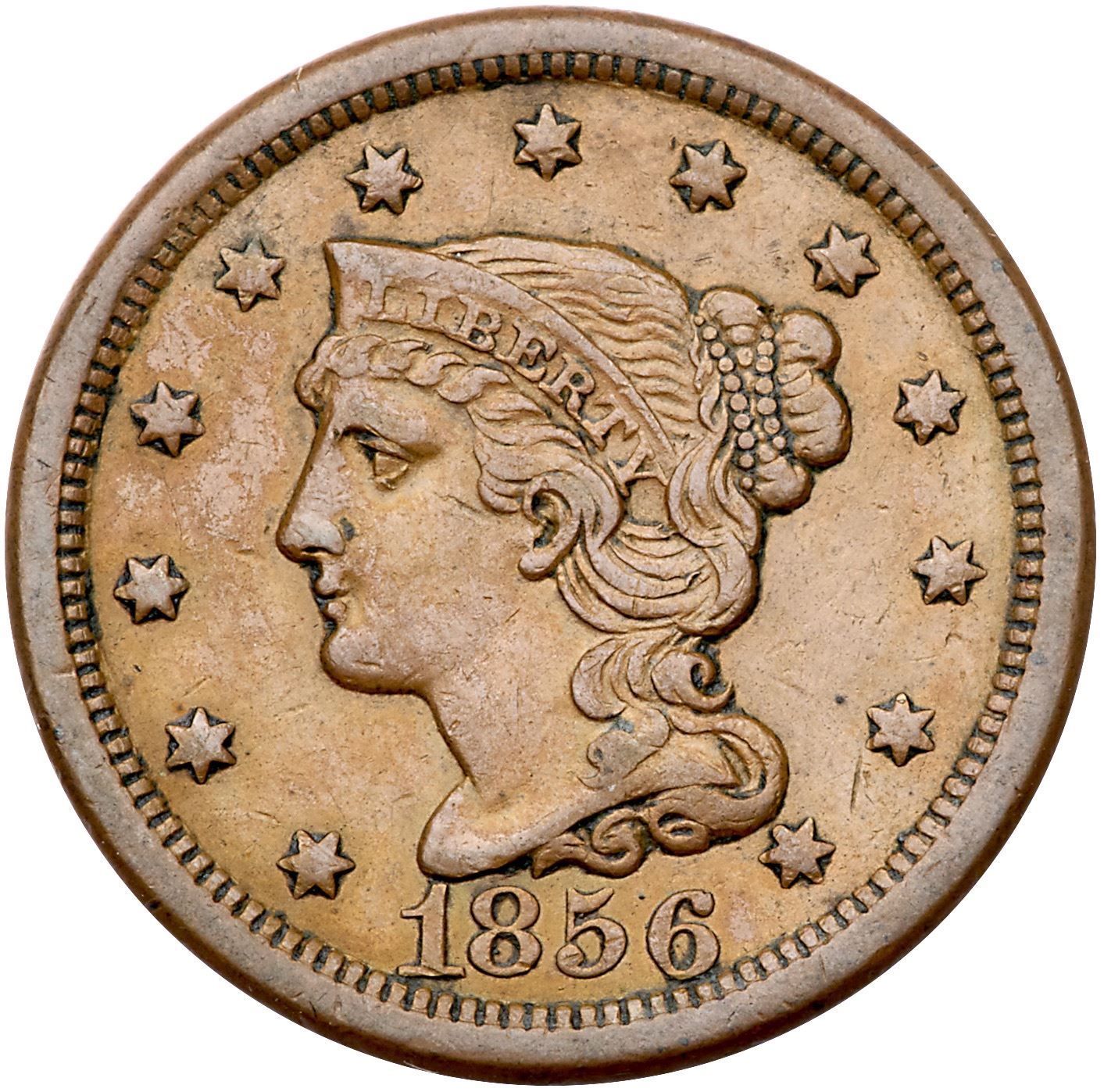 Trio of 1856 Cents grading VF30 to VF35Includes N-2 R1 Italic 5 E-MDS (b), N-4 R3 Italic 5 E-MDS (b), and N-8 R3+ Upright 5 MDS (b). The second is slightly sharper with minor defects; the other two are choice. All have attractive glossy brown and light chocolate toning. Lot of 3 coins.Pedigree: From the Fred H. Borcherdt Collection