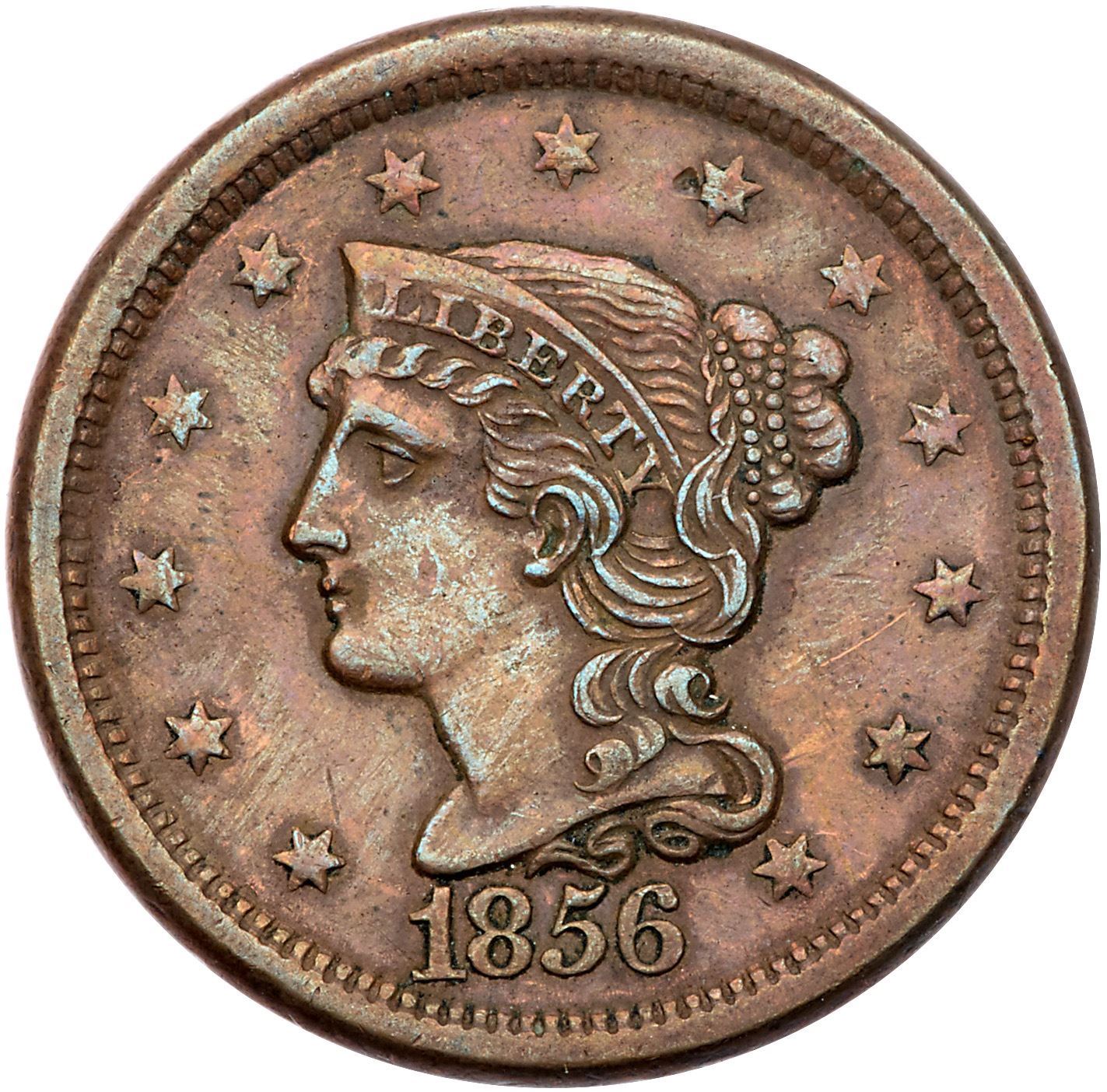 Trio of 1856 Cents grading VF30 to VF35Includes N-2 R1 Italic 5 MDS (c), N-4 R3 Italic 5 EDS (a), and N-10 R1 Upright 5 EDS (a). The first two are slightly sharper with minor defects; the other one is choice. All have attractive glossy brown and light chocolate toning. Lot of 3 coins.Pedigree: From the Fred H. Borcherdt Collection