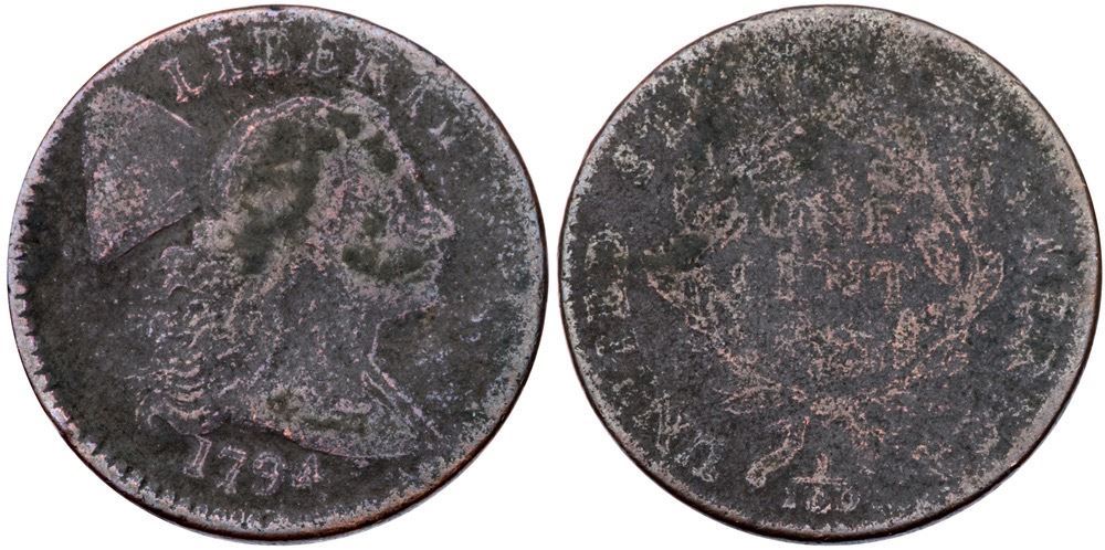 Trio of Liberty Cap Cents 1794, 1795Trio of Liberty Cap large cents including a 1794 S-65 G5 net FR2, a 1795 S-76b F12 net AG3 slightly bent, and a 1795 S-78 LDS G5 net AG3. All slightly corroded with surface roughness but sharper and all have full, clear dates.Certificate Number: